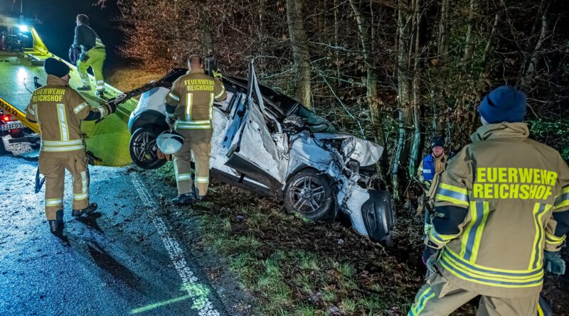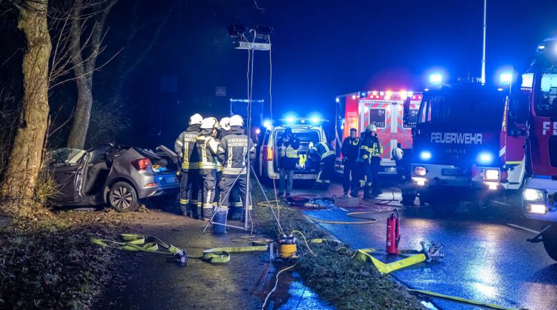 Zum ArtikelDas Auto prallte gegen mehrere Bäume und wurde dabei völlig zerstört.