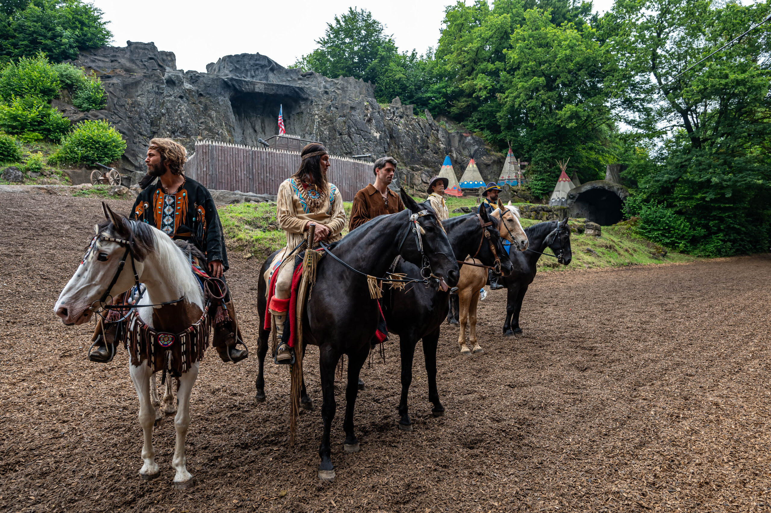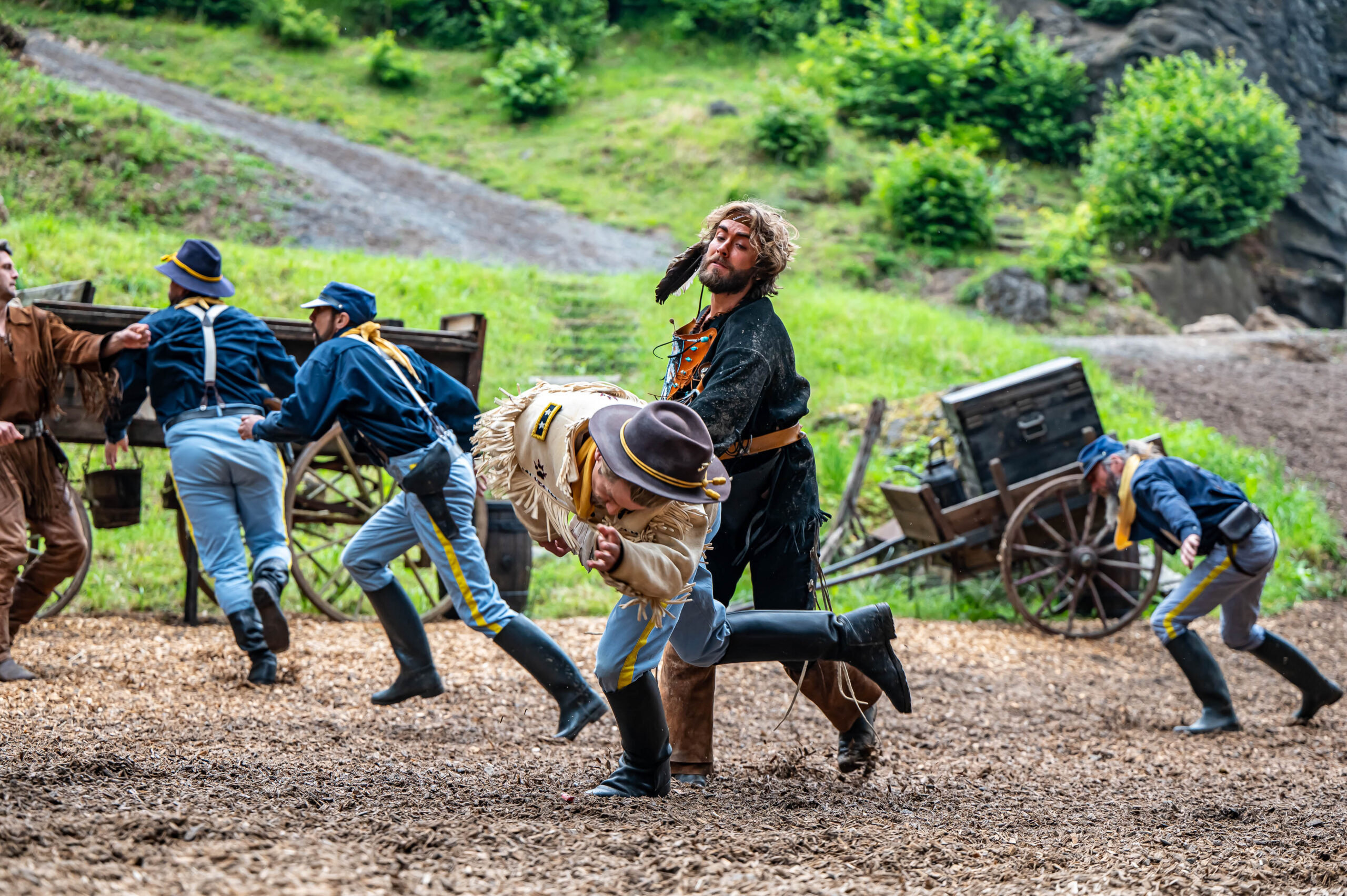 Zahlreiche Journalisten durften sich am Mittwoch, 19. Juni, zumindest die erste Hälfte des diesjährigen Stückes “Winnetou und das Halbblut — Ein Kampf auf Leben und Tod” vorab ansehen. Dabei gab es nicht nur einen Einblick in die Wild-West-Story, sondern auch eine Menge Action und Pyrotechnik. Wer das gesamte Stück sehen möchte, kann dies ab kommenden Samstag, 22. Juni, beim offiziellen Spielstart der neuen Saison. Der Veranstalter verspricht ein “Erlebnis mit allen fünf Sinnen”. Der Charme der Naturbühne, bei dem lediglich der Zuschauerbereich überdacht ist, 60 Darsteller mit 40 Pferden und mitreissende Musik steht im Programm!