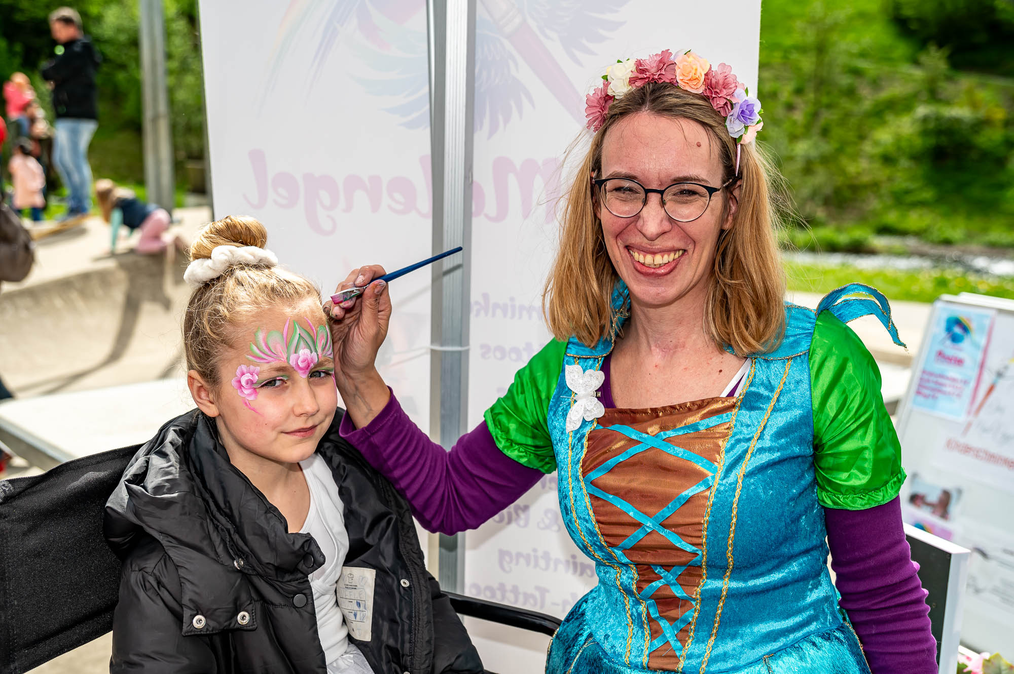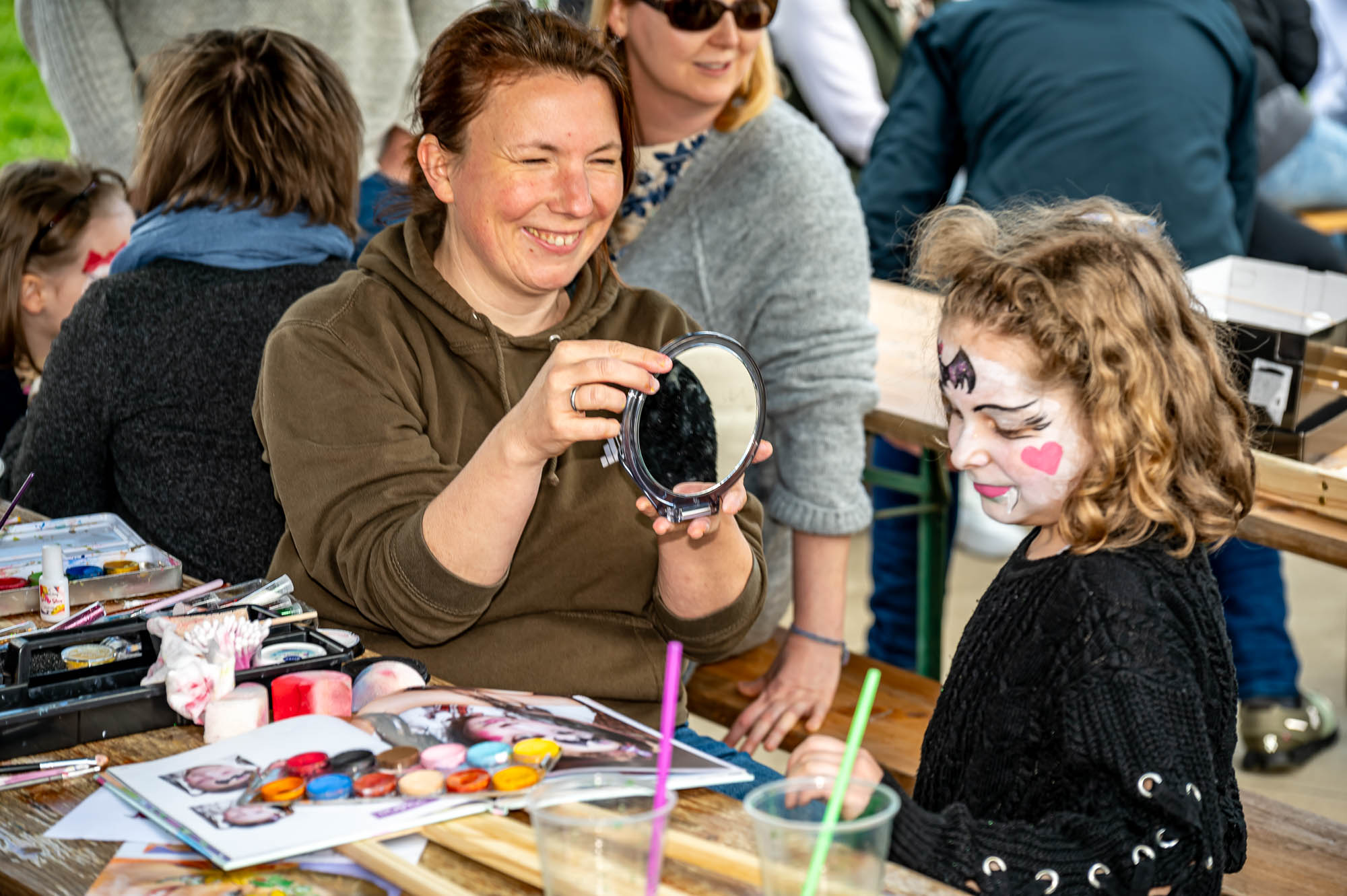 Die Anbieter leckerer Speisen und Getränke waren mit dem Andrang ebenfalls sehr zufrieden. Lediglich der Betreiber eines mobilen Imbisses war im Laufe des Nachmittags etwas perplex: Er war regelrecht überrannt worden und hatte etwas zu früh sein “Pulver verschossen”. Das sollte man aber als Kompliment sehen, immerhin kamen seine Speisen sehr gut bei den Gästen an! Beliebt waren auch Leberkäsebrötchen und Crepes. An vielen Ständen gab es Kreativangebote, kunstvolles Kinderschminken und vieles mehr. Alles in allem eine gelungene Veranstaltung, die einmal mehr den Wert des VolmeFreizeitParks unterstreicht. Auch dieses Event wird es dort sicher nicht zum letzten Mal gegeben haben!