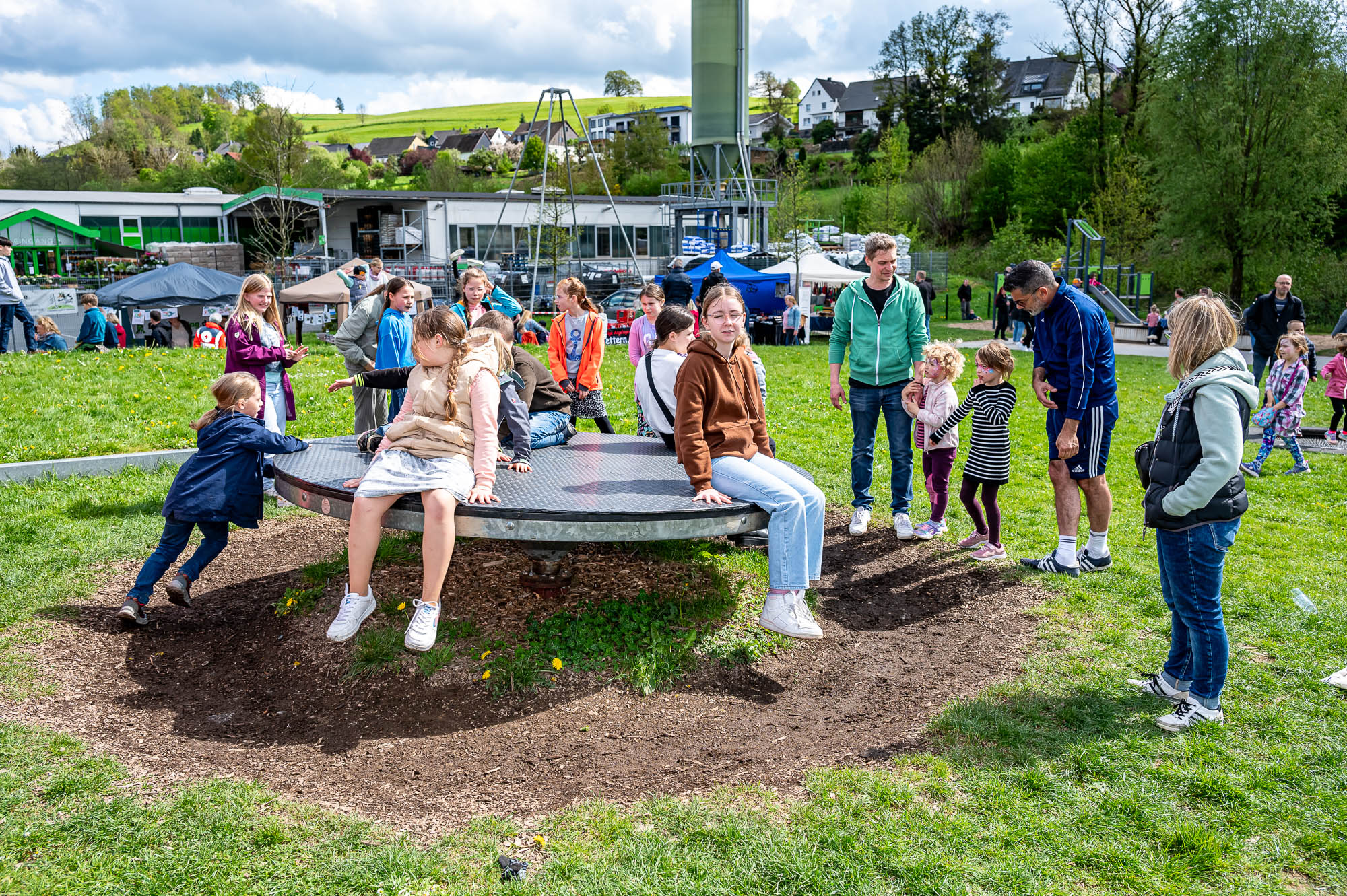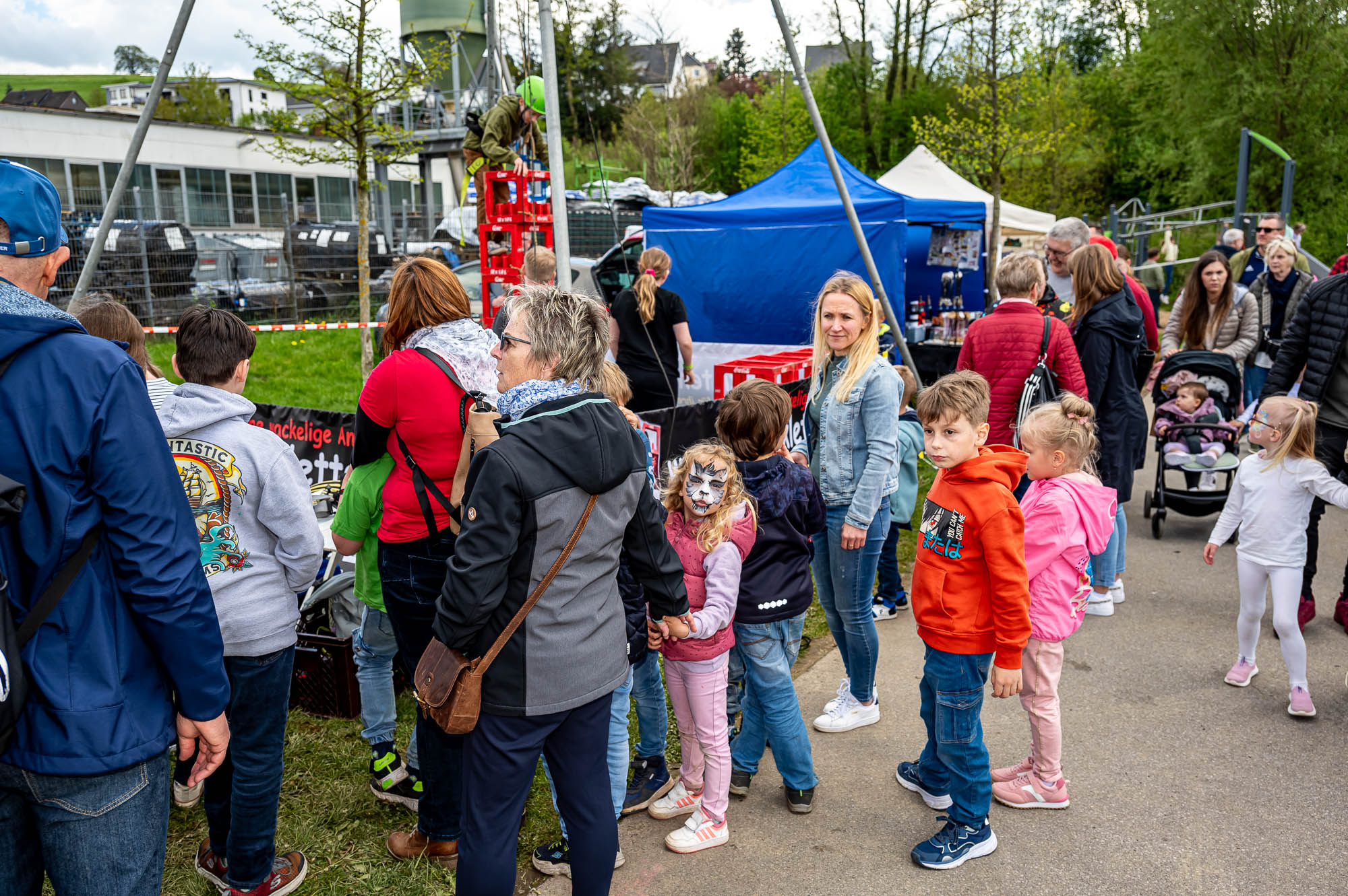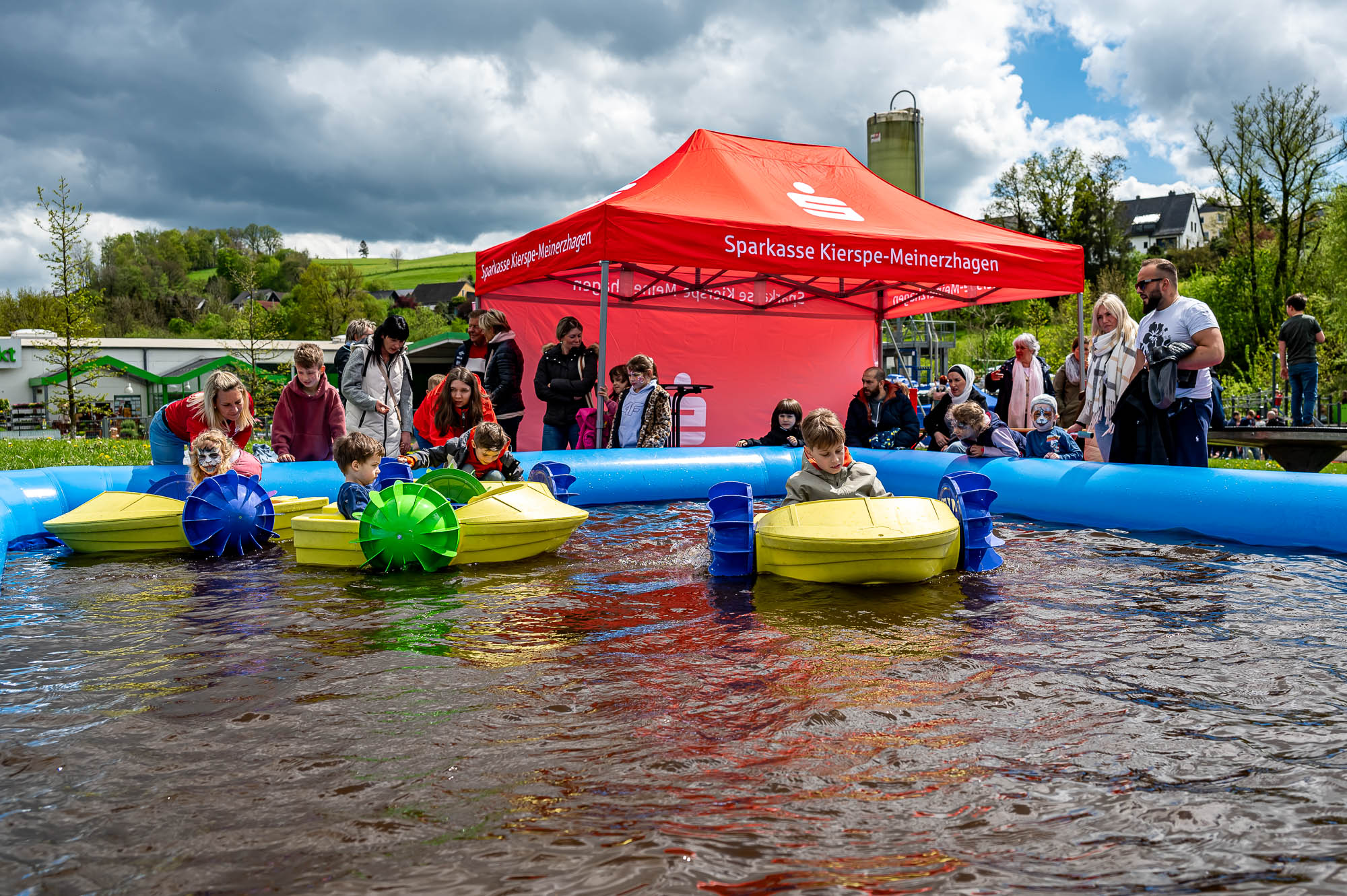 KIERSPE (mk) Es war ein Geschenk des Himmels. Das was von “oben” kam, vor allem aber das was ausblieb: Nämlich Regen! Auch wenn am vergangenen Sonntag immer wieder verdächtige Wolken über den Volmefreizeitpark zogen, ist es doch trocken, in weiten Teilen sogar sonnig gewesen. Für das Frühlingsfest war das ein großes Geschenk! Auch, dass es von den Menschen der Raukstadt angenommen wurde. Das gebotene, familientaugliche Programm war aber eine große Verlockung: Bootsfahrten im Sparkassen-Pool, ausgefallene Hüpfburgen und weitere Attraktionen beim Spielmobil der Stadt Kierspe und unzählige weitere Angebote richteten sich besonders an Kinder. Darunter auch das Getränkekistenstapeln bei der Lüdenscheider “Niederlassung” des Deutschen Alpen Vereins. Das, was sich nach “Maloche” im Getränkehandel anhört, war in Wirklichkeit ein anspruchsvolles Kletter-Abenteuer, bei dem es hoch hinaus ging.