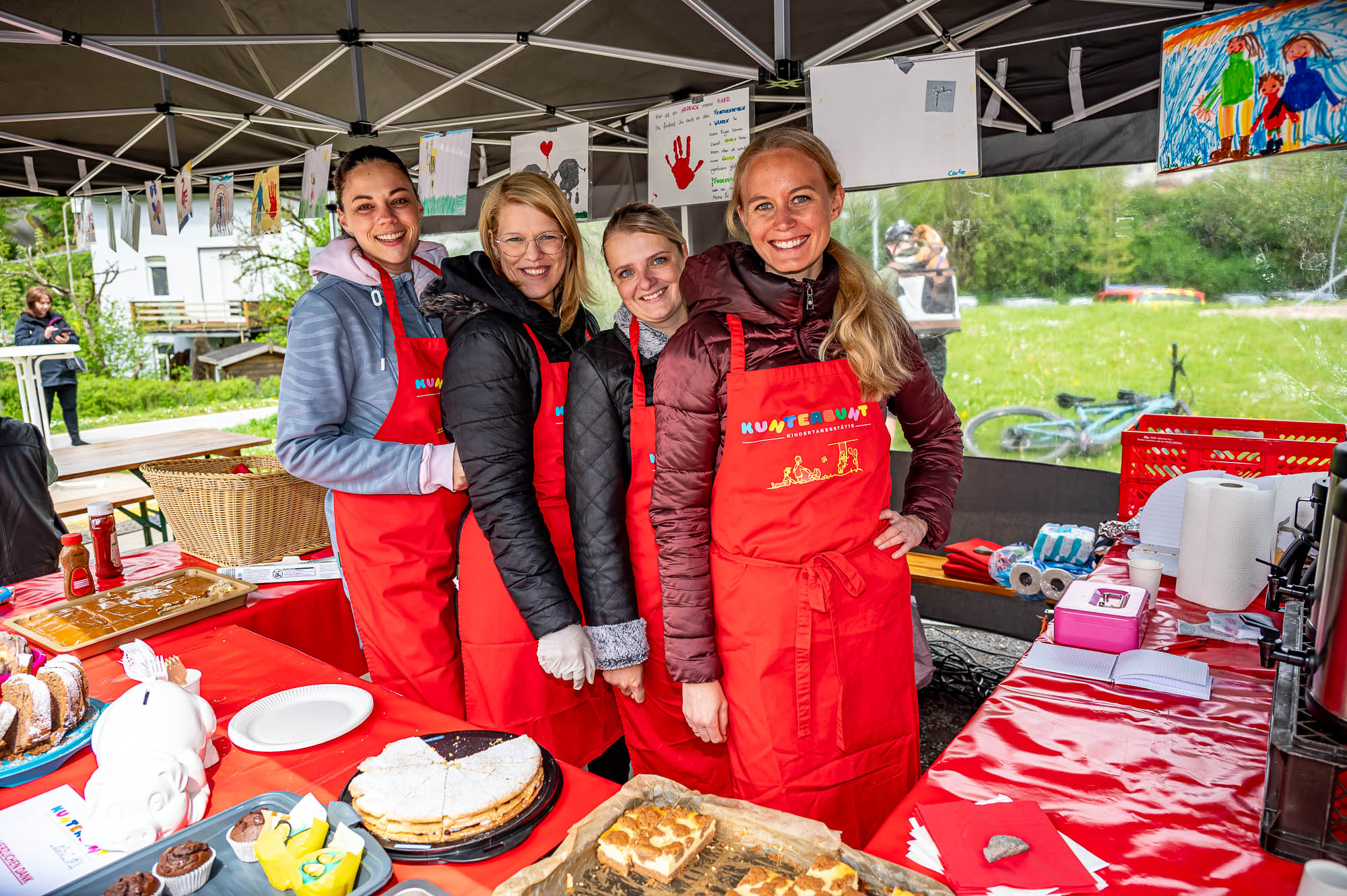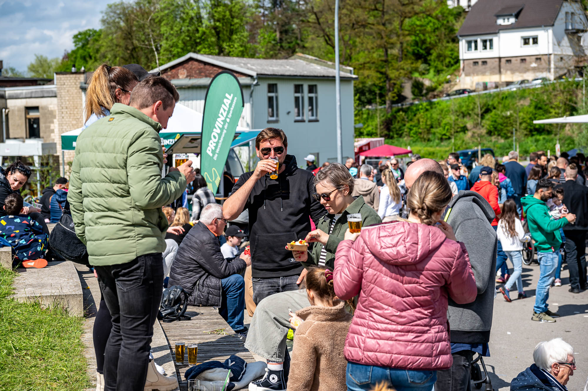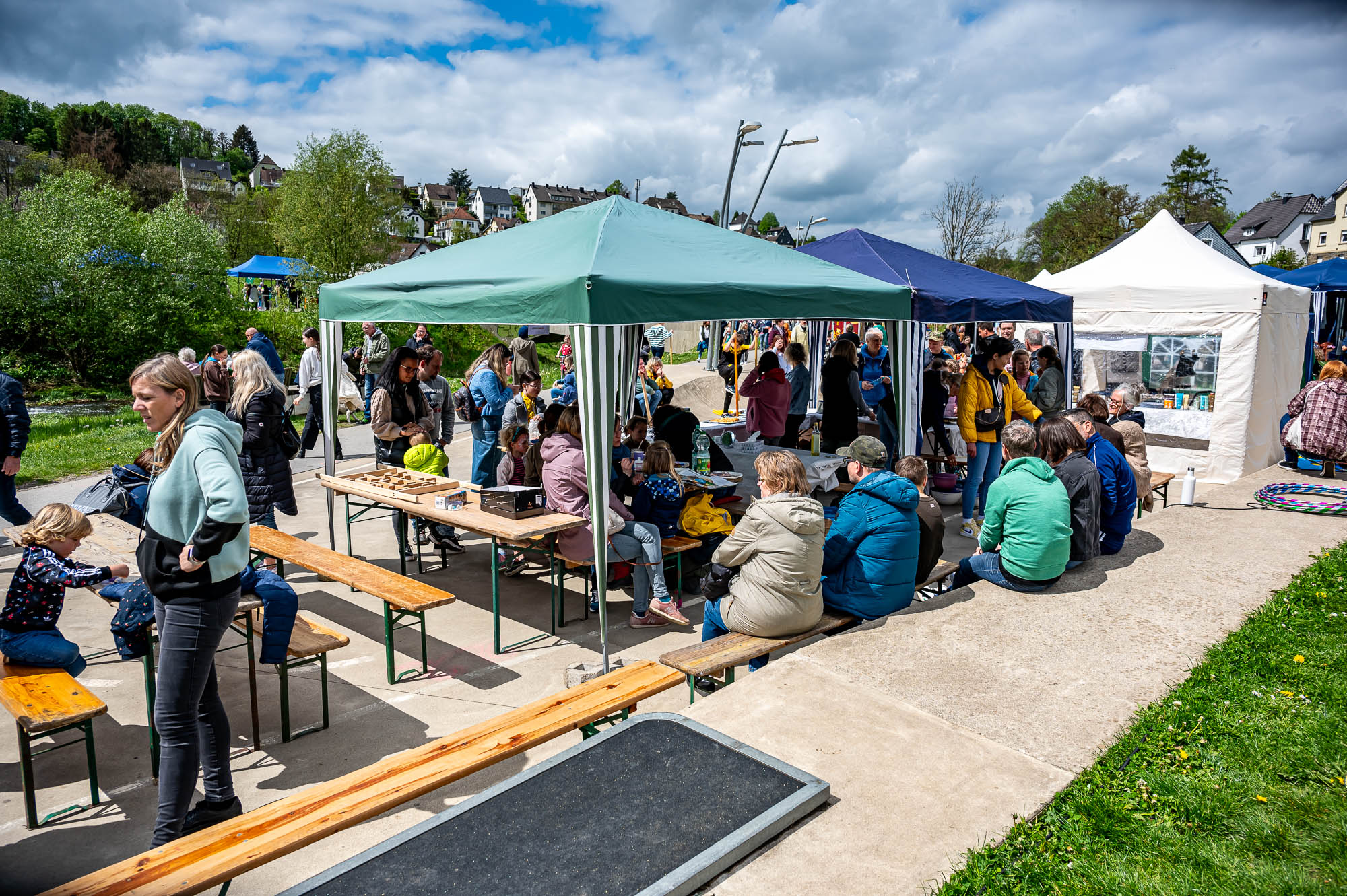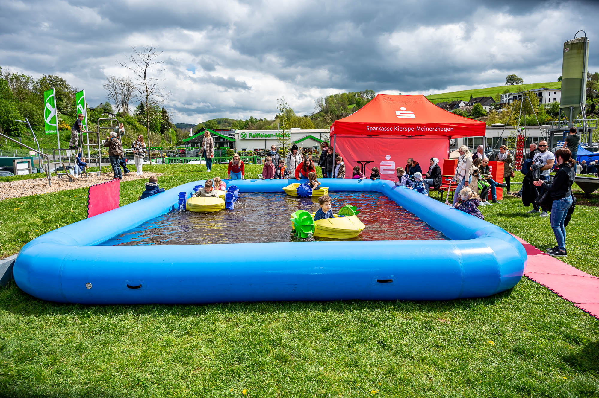 KIERSPE (mk) Es war ein Geschenk des Himmels. Das was von “oben” kam, vor allem aber das was ausblieb: Nämlich Regen! Auch wenn am vergangenen Sonntag immer wieder verdächtige Wolken über den Volmefreizeitpark zogen, ist es doch trocken, in weiten Teilen sogar sonnig gewesen. Für das Frühlingsfest war das ein großes Geschenk! Auch, dass es von den Menschen der Raukstadt angenommen wurde. Das gebotene, familientaugliche Programm war aber eine große Verlockung: Bootsfahrten im Sparkassen-Pool, ausgefallene Hüpfburgen und weitere Attraktionen beim Spielmobil der Stadt Kierspe und unzählige weitere Angebote richteten sich besonders an Kinder. Darunter auch das Getränkekistenstapeln bei der Lüdenscheider “Niederlassung” des Deutschen Alpen Vereins. Das, was sich nach “Maloche” im Getränkehandel anhört, war in Wirklichkeit ein anspruchsvolles Kletter-Abenteuer, bei dem es hoch hinaus ging.