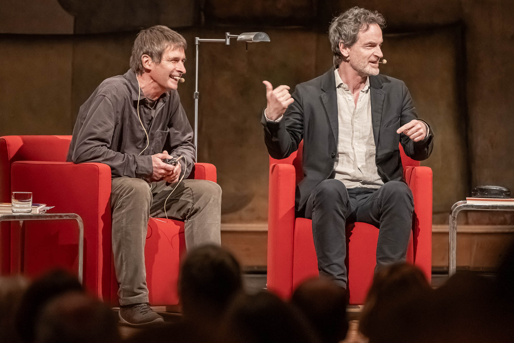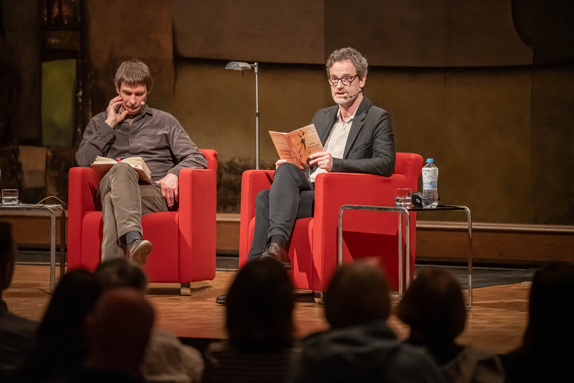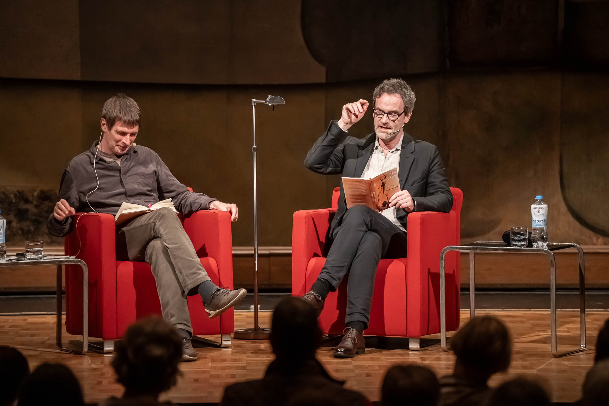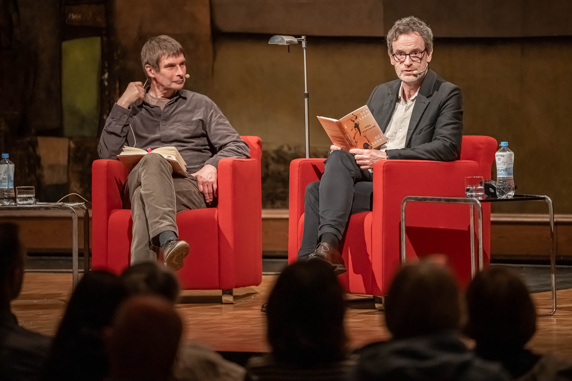 Eine reine Lesung war die erneut von Terry Albrecht moderierte Veranstaltung allerdings auch nicht, eher eine Art “Bühnen-Talk”, bei der Hartmann natürlich auch einige Geschichten aus seinem Erstlingswerk als Buchautor las. “Der Lärm des Lebens” ist quasi die Lebensgeschichte der Familie Hartmann. Trotz der autobiografischen Elemente ist sie aber keineswegs die Lebensgeschichte von Jörg Hartmann selbst. “Dafür wärst Du auch noch etwas zu jung”, befand der WDR-Literaturexperte Albrecht, der sich mit dem Schauspieler sogleich auf den Begriff “Bestandsaufnahme” einigt.