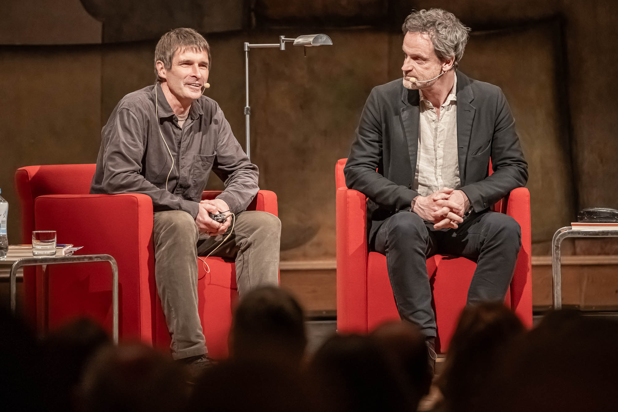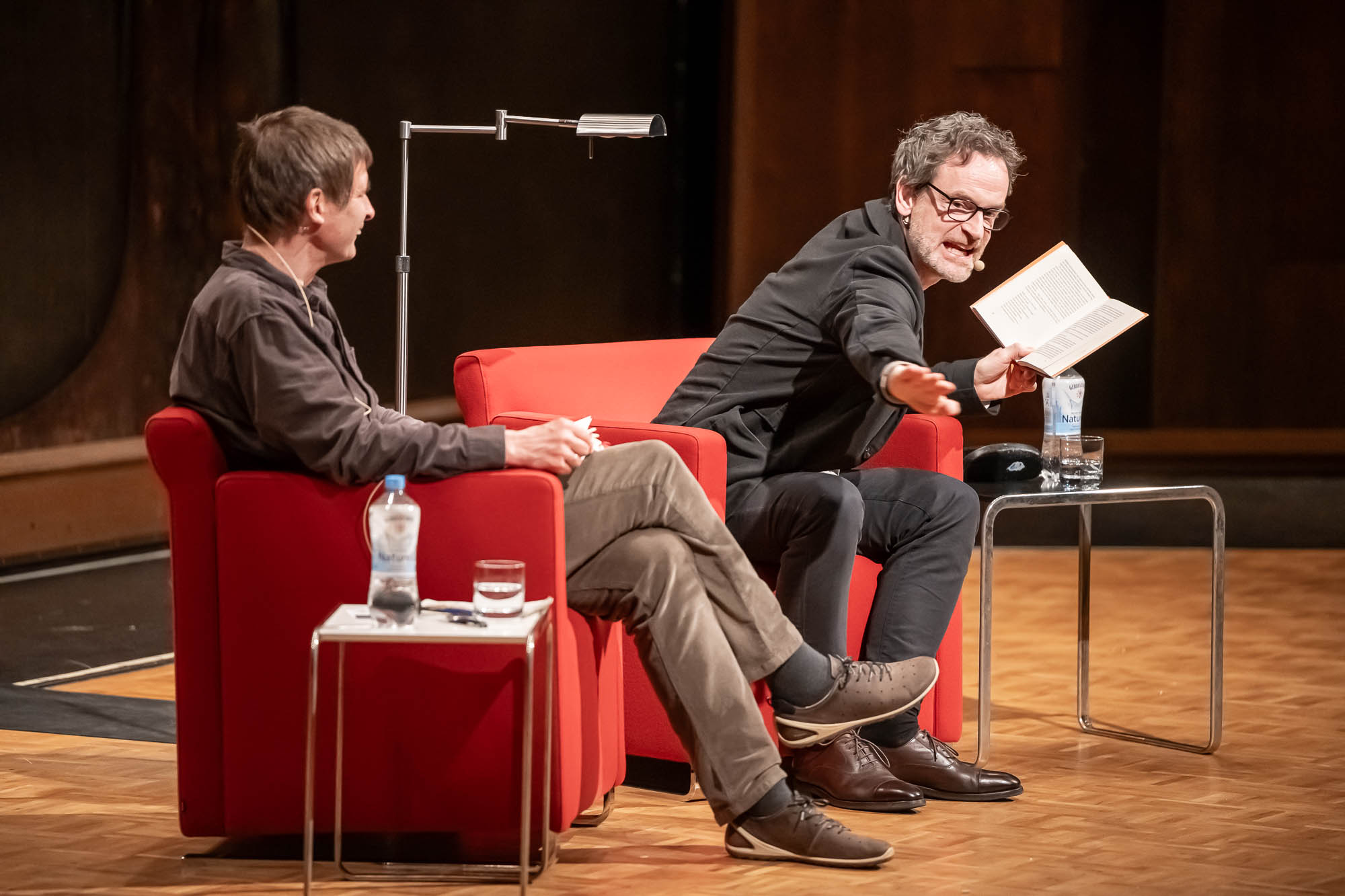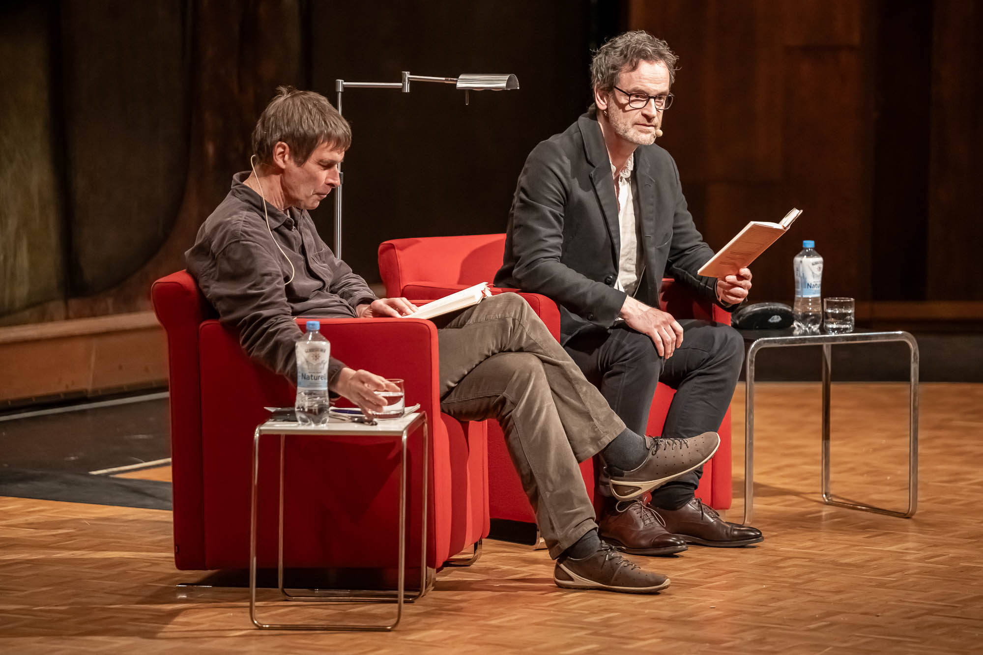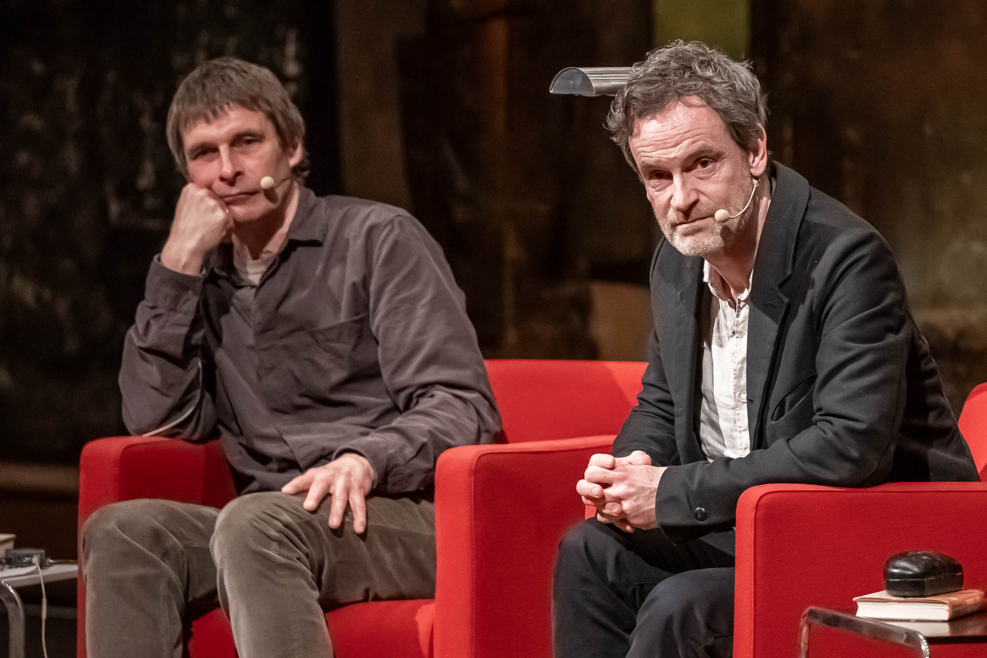 Eine reine Lesung war die erneut von Terry Albrecht moderierte Veranstaltung allerdings auch nicht, eher eine Art “Bühnen-Talk”, bei der Hartmann natürlich auch einige Geschichten aus seinem Erstlingswerk als Buchautor las. “Der Lärm des Lebens” ist quasi die Lebensgeschichte der Familie Hartmann. Trotz der autobiografischen Elemente ist sie aber keineswegs die Lebensgeschichte von Jörg Hartmann selbst. “Dafür wärst Du auch noch etwas zu jung”, befand der WDR-Literaturexperte Albrecht, der sich mit dem Schauspieler sogleich auf den Begriff “Bestandsaufnahme” einigt.