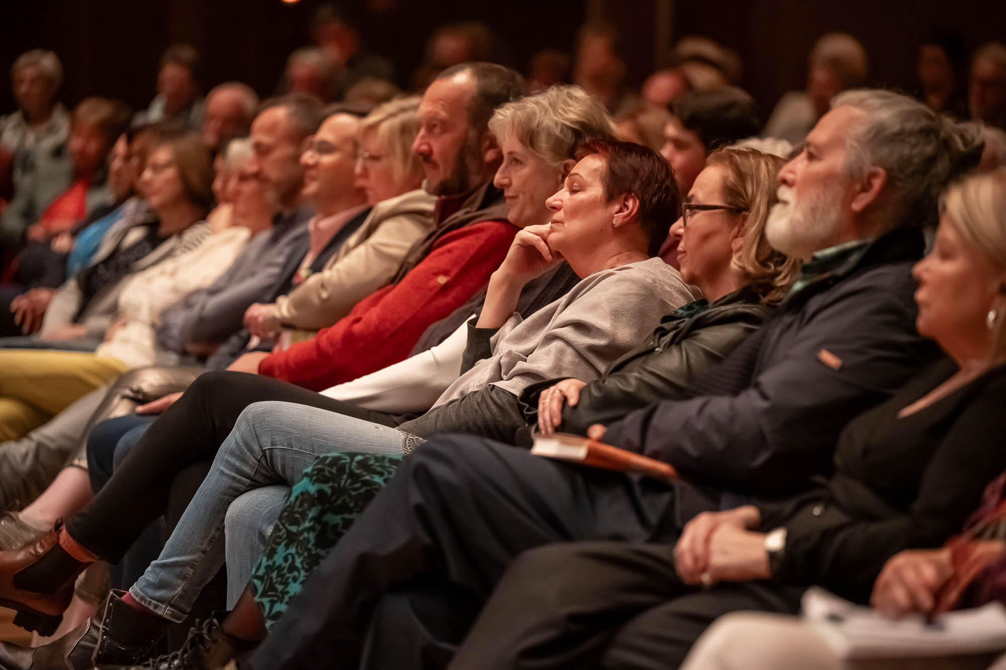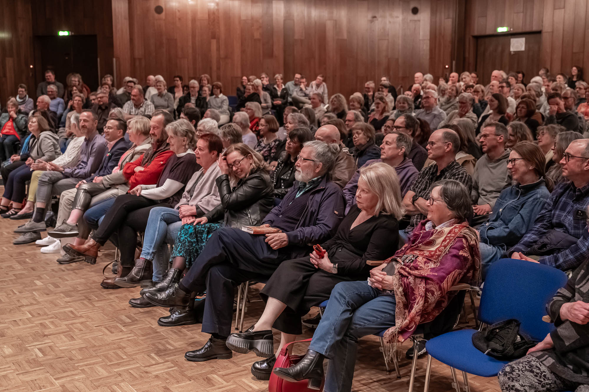 Wie genau der später als sehr umgänglich und warmherzig beschriebene Hubert Hartmann mit der Lage umging, wurde nicht zu sehr vertieft, was vielleicht einer von vielen Gründen ist, das Buch zu kaufen, dass bei dieser Literaturveranstaltung im Mittelpunkt stand. Und in dem nicht Jörg Hartmann die Hauptrolle spielt, sondern sein Vater. Dessen Demenzerkrankung war der Auslöser, überhaupt mit dem Schreiben anzufangen: “Demenz frisst einen großen Teil der Erinnerung auf, und ich wollte das alles irgendwie festhalten”, beschreibt Hartmann die Motivation zu dem Buch, dass als solches garnicht geplant war. Aber sichtlich Spaß macht, trotz aller wehmütigen Erinnerungen: “Tragik und Komik hängen bei uns immer eng zusammen”, stellt Hartmann fest. Gute Voraussetzungen für ein spannendes und lesenswertes Werk, in dem sich Hartmann auch intensiv mit dem Leben seiner gehörlosen Großeltern in der Nazi-Zeit auseinandersetzt.