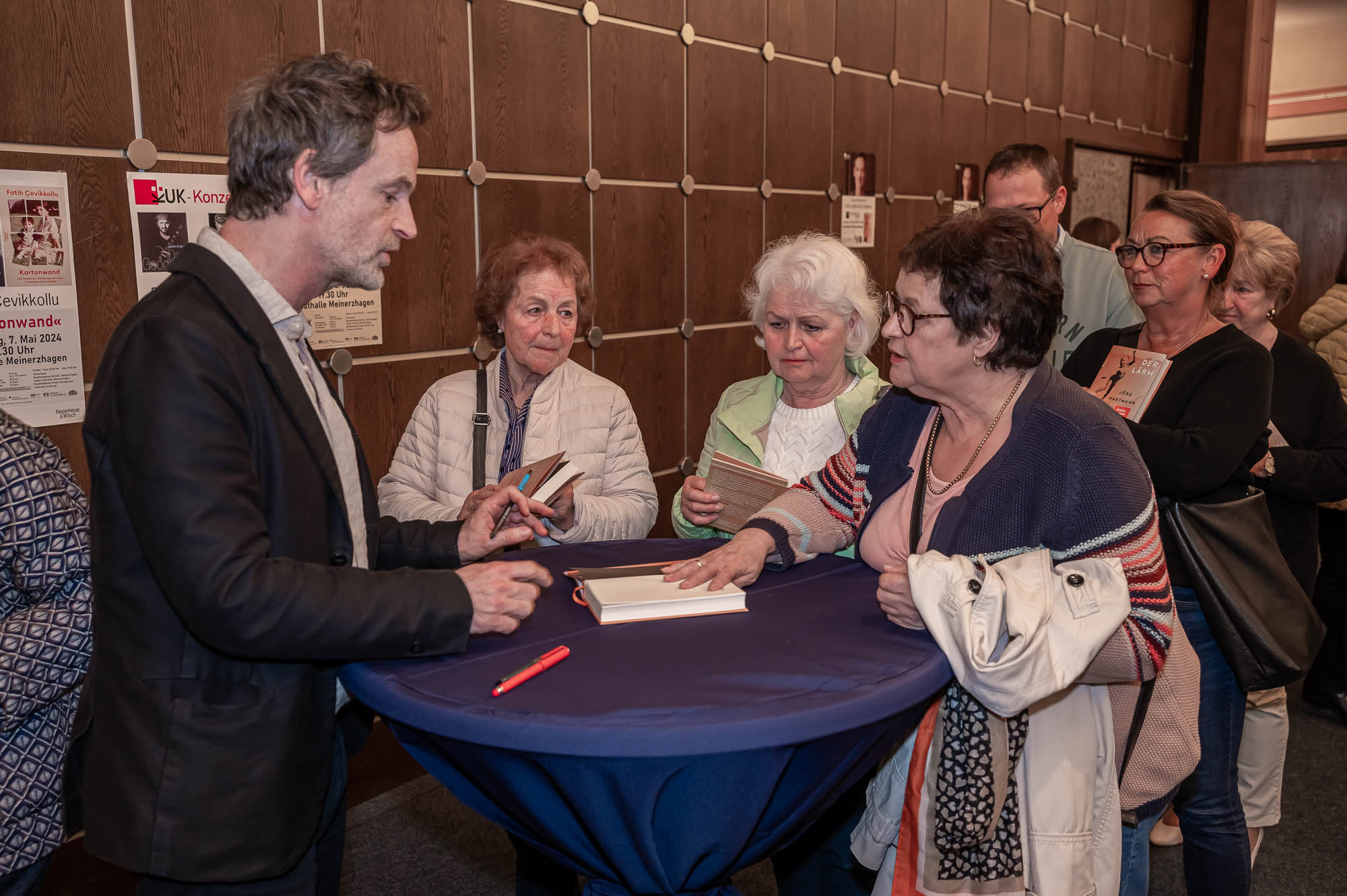 Als sehr umgänglich entpuppte sich auch Jörg Hartmann. Von den rund 250 Gästen der gutgefüllten Stadthalle kamen viele mit einem Exemplar des Buches, oder kauften es sich vor Ort, um eine Signatur des Schauspielers zu erhaschen. Die Schlange war riesengroß, dennoch hielt Hartmann mit jedem Besucher ein kurzes Schwätzchen und ging anschließend noch mit den Organisatoren des Abends ein Bier trinken. Für die Besucher ging ein spannender und weiten Teilen auch amüsanter Abend zu Ende, denn wer Jörg Hartmann in einer seiner schon jetzt unzähligen Rollen im Fernsehen erlebte, weiß: An Wortwitz mangelt es ihm bestimmt nicht.