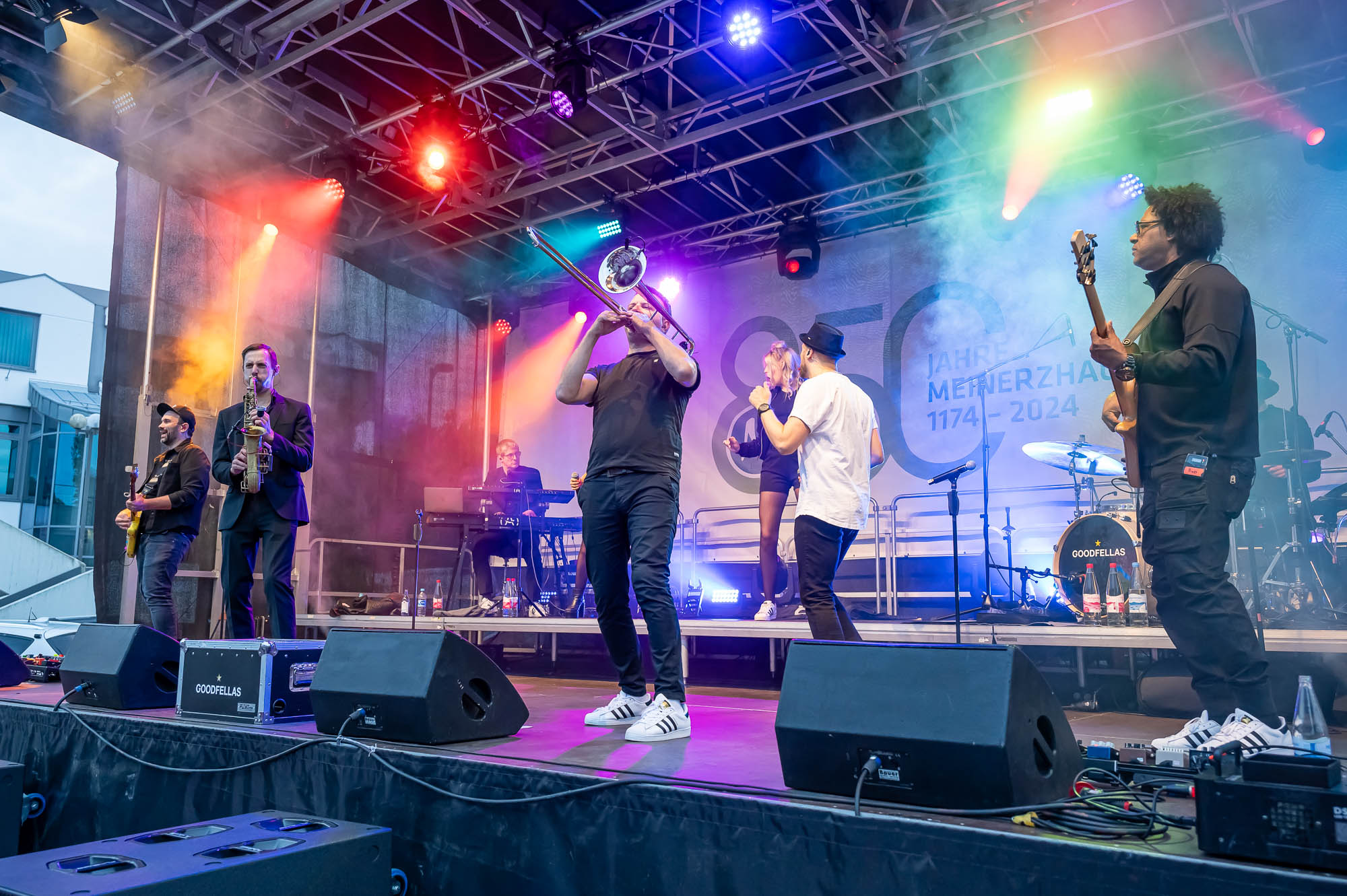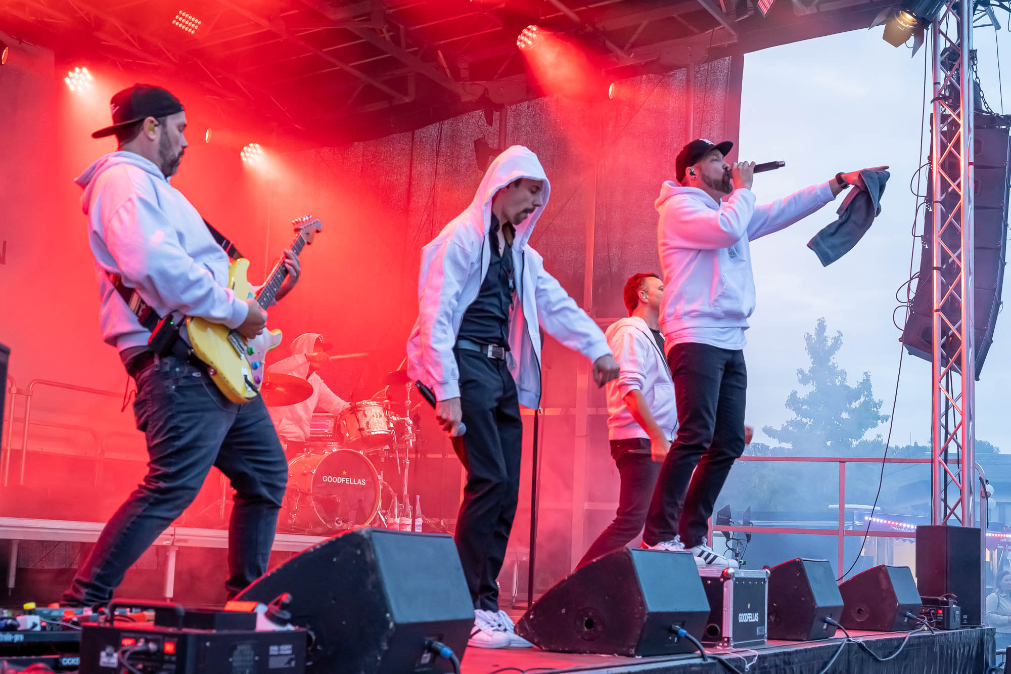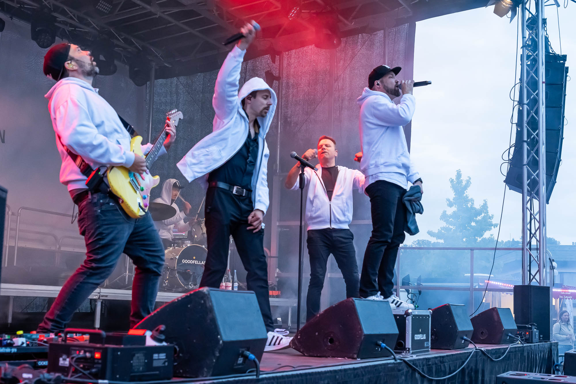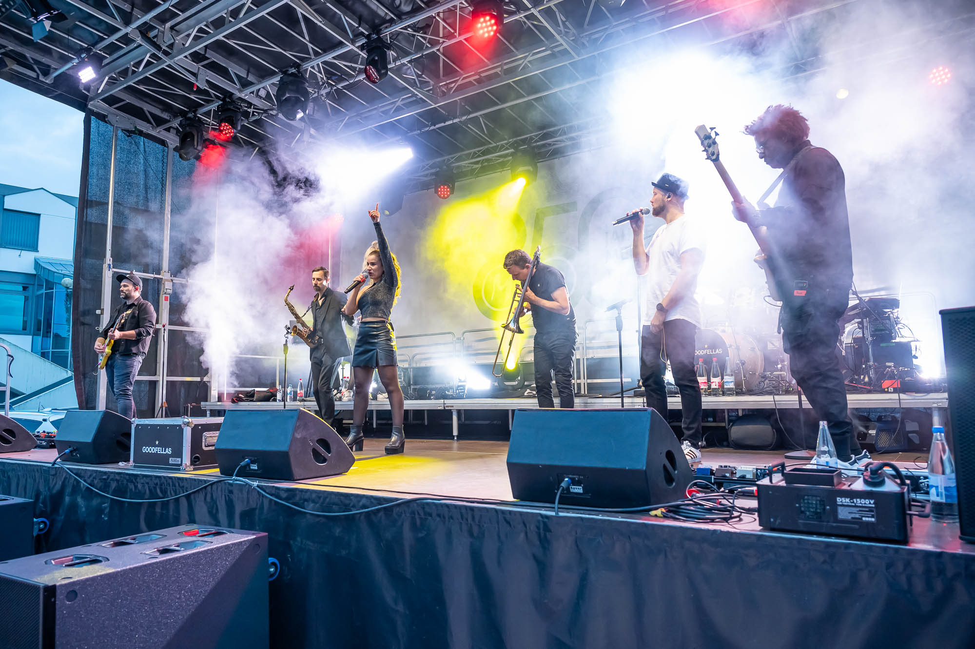 Später griff Martin Pfeiffer zur Gitarre, als er zur Kinderliederparty einlud. Chorgesänge gab es von den “Kohlbergspatzen” und vom Unterstufenchor des Ev. Gymnasiums Meinerzhagen. Zwischendurch konnten die Kids ihren TV-Lieblingen “Peppa Pig” und “Marshall” von “Paw Patrol” mal persönlich begegnen, denn die waren regelmäßig als Walking Acts auf dem Otto-Fuchs-Platz unterwegs. Dort sammelten sich im Laufe des Tages etliche hundert Besucher, um am Abend zu Rock- und Pop-Covermusik der Kiersper Band “Strum Out” um Tim Gijbels abzufeiern. Nach dem Auftritt der heimischen Combo war aber noch lange nicht Feierabend: Mit den “Goodfellas” ging es auf der Showbühne rockig weiter. Aber eben auch soulig. Und poppig, und… die bis zu 12-köpfige Band hatte ein breites Repertoire an Coversongs im Gepäck und brachte diese mit einer überzeugenden Performance auf die Bühne. DJ Dave Curtis stand anschließend an den Plattentellern, bis die Partynacht gegen 1 Uhr allmählich ausklang.