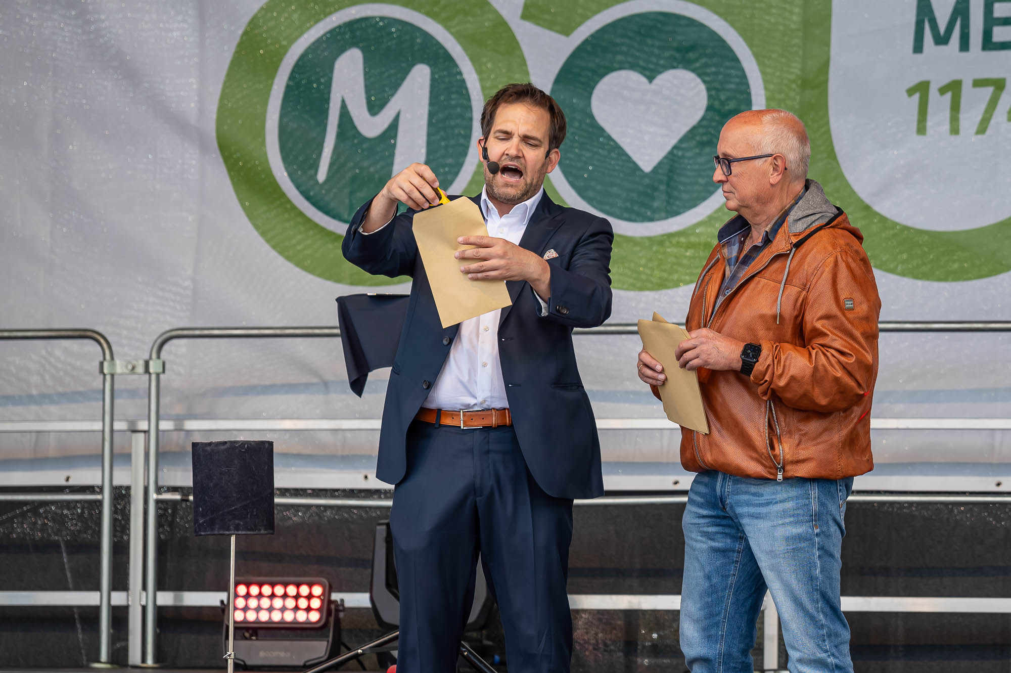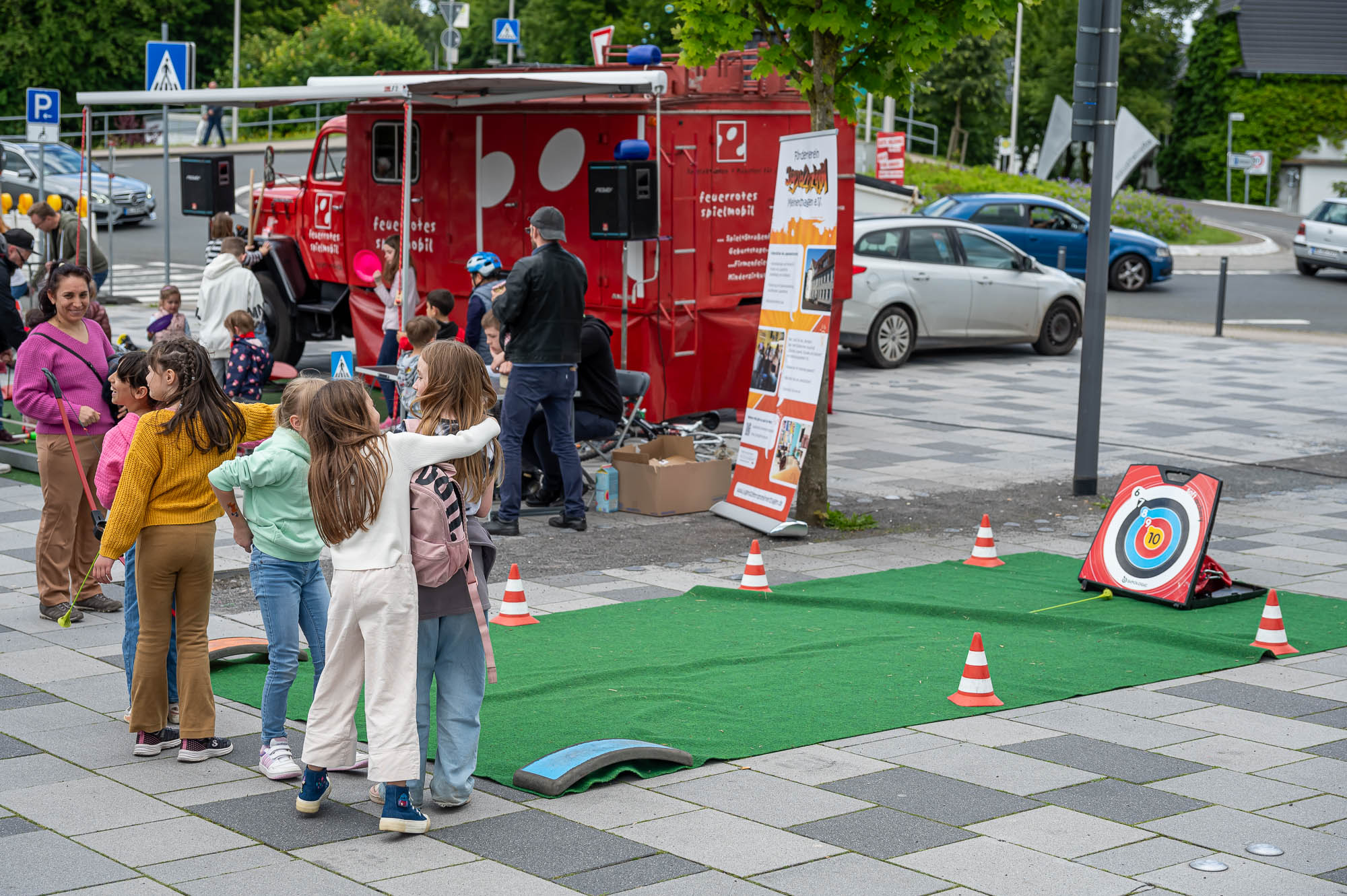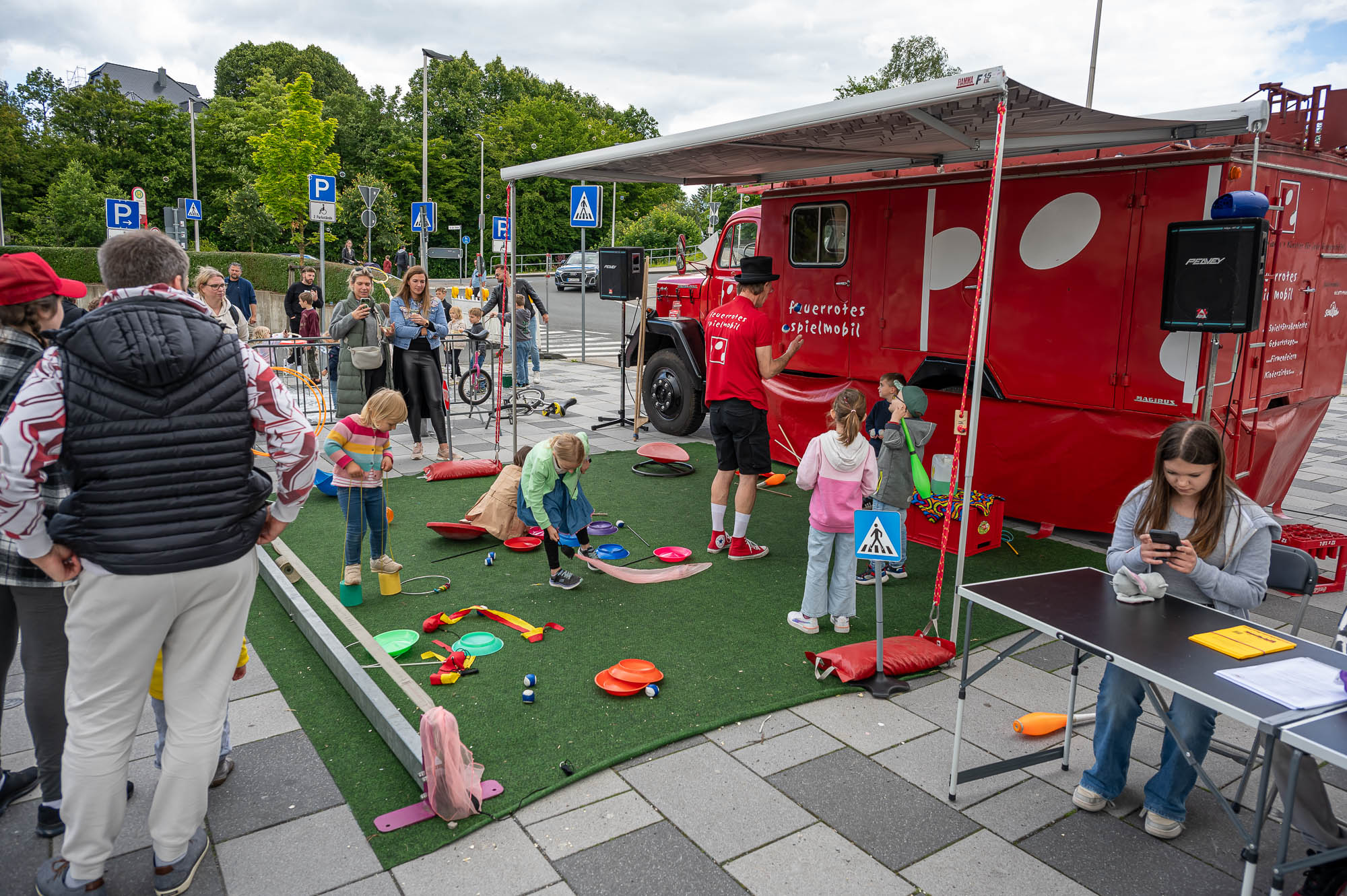 MEINERZHAGEN (mk) Über ein umfangreiches Programm freuten sich die kleinen und großen Besucher auch am Samstag, 15. Juni, bei den Jubiläums-Feierlichkeiten. Auch diesmal war auf das Wetter verlass: So windig und wechselhaft es am Vormittag noch war, spielte die Witterung den Organisatoren in die Karten. Und so störte kein Regentropfen die zahlreichen Attraktionen und Bühnenprogramme! Los ging es am frühen Nachmittag mit Angeboten speziell für Kinder: Etliche Spiel-Möglichkeiten, und mittendrin das “Feuerrote Spielmobil” von Marco Köhler. Auch Fritz Hertrampf stellte mit dem Jugendzentrum Meinerzhagen zahlreiche beliebte Attraktionen auf die Beine. Ebenso viel los war auf der großen Bühne: Hier lockte Zauberkünstler Julian Button mit einer Show speziell (aber nicht nur) für Kinder.