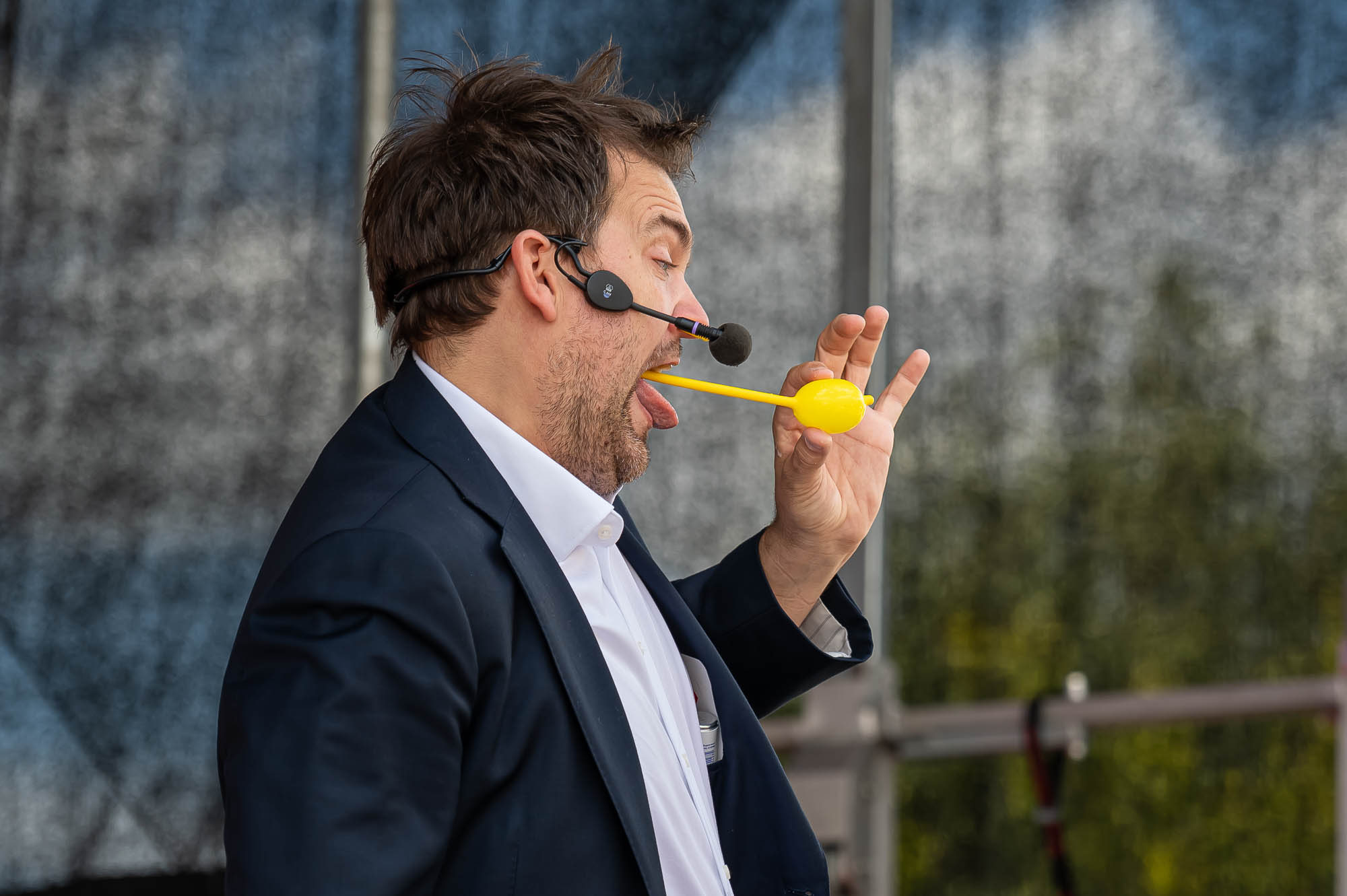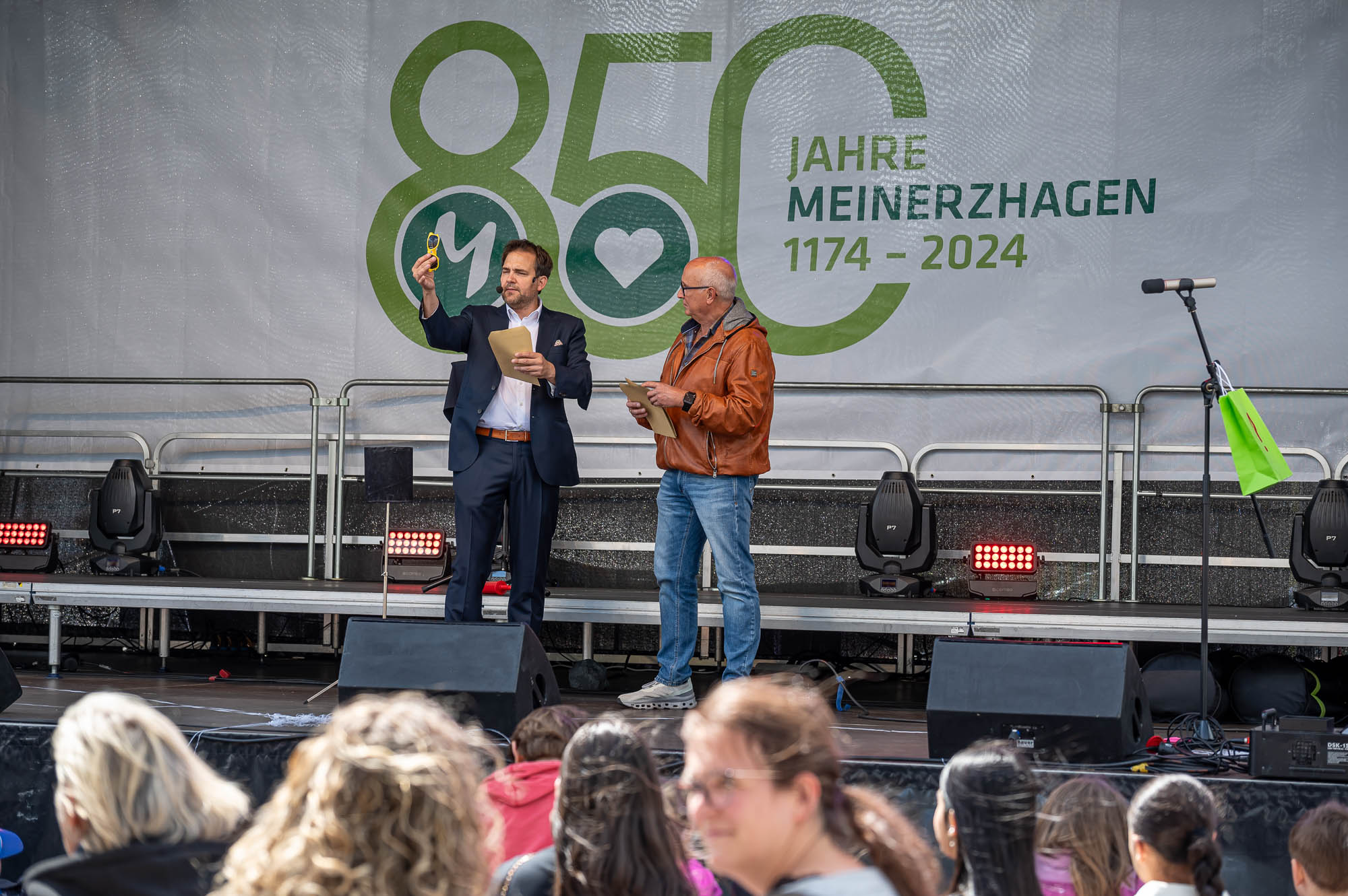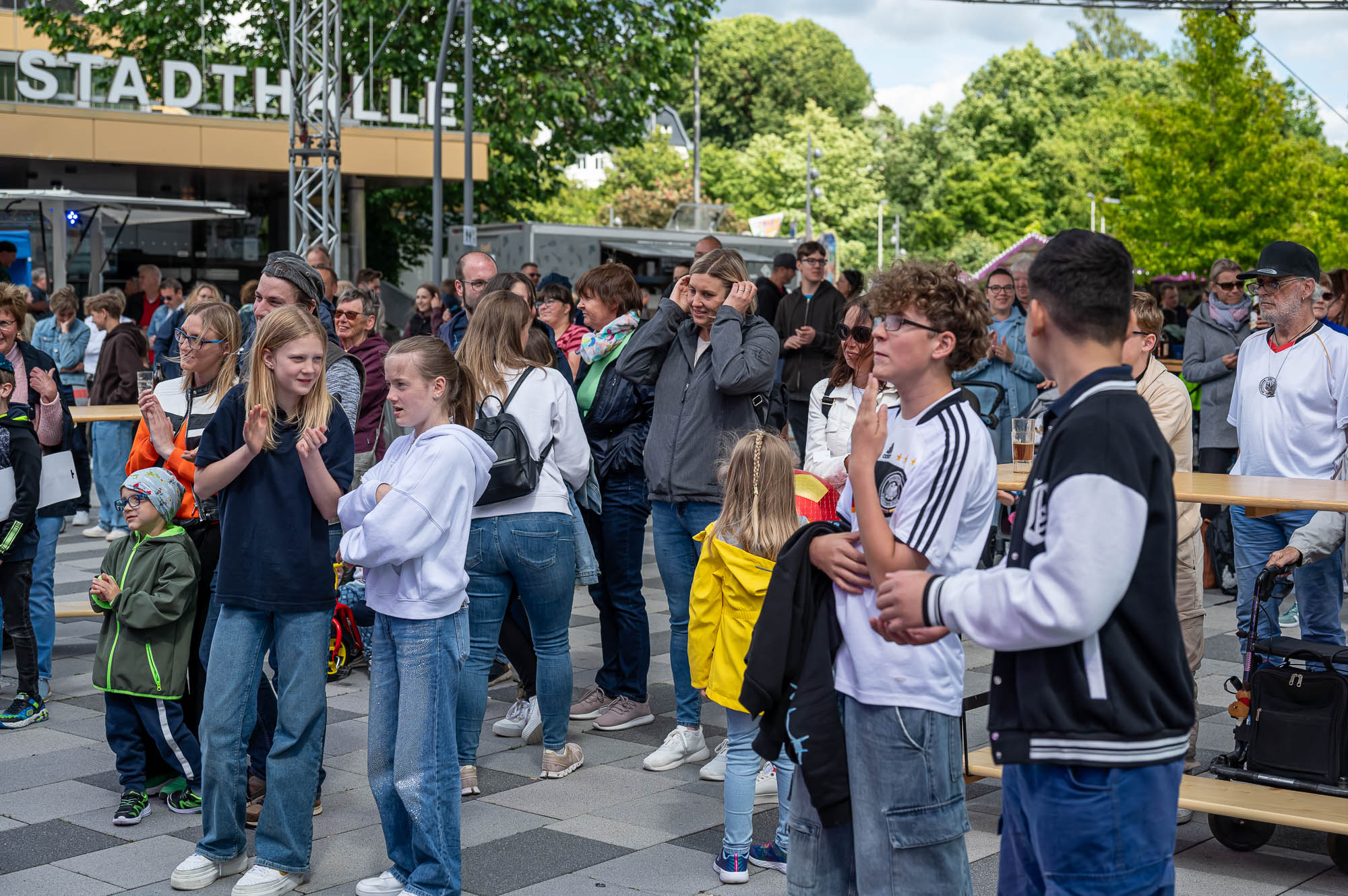 MEINERZHAGEN (mk) Über ein umfangreiches Programm freuten sich die kleinen und großen Besucher auch am Samstag, 15. Juni, bei den Jubiläums-Feierlichkeiten. Auch diesmal war auf das Wetter verlass: So windig und wechselhaft es am Vormittag noch war, spielte die Witterung den Organisatoren in die Karten. Und so störte kein Regentropfen die zahlreichen Attraktionen und Bühnenprogramme! Los ging es am frühen Nachmittag mit Angeboten speziell für Kinder: Etliche Spiel-Möglichkeiten, und mittendrin das “Feuerrote Spielmobil” von Marco Köhler. Auch Fritz Hertrampf stellte mit dem Jugendzentrum Meinerzhagen zahlreiche beliebte Attraktionen auf die Beine. Ebenso viel los war auf der großen Bühne: Hier lockte Zauberkünstler Julian Button mit einer Show speziell (aber nicht nur) für Kinder.