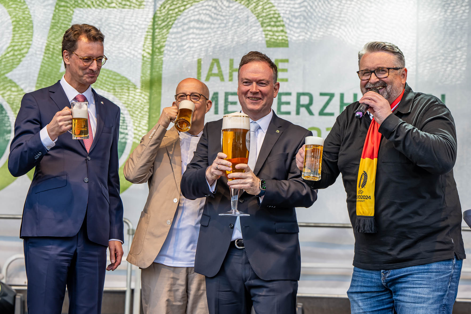 In seiner Festansprache betonte Bürgermeister Nesselrath, dass es die Menschen in Meinerzhagen seien, die “Impulse für eine Stadtentwicklung geben, die den Notwendigkeiten der Kindern entsprechen”, erklärte aber auch, dass zu allen Zeiten “Pioniergeist und Zuversicht” gefragt seien. “Wir sind Meinerzhagen” lautete sein Fazit, nachdem er den Menschen das Jubiläumswochenende widmete: “Für Sie und Euch alle ist dieses Jubiläumswochende, ich freue mich auf große Momente und ein unvergessliches Fest.”