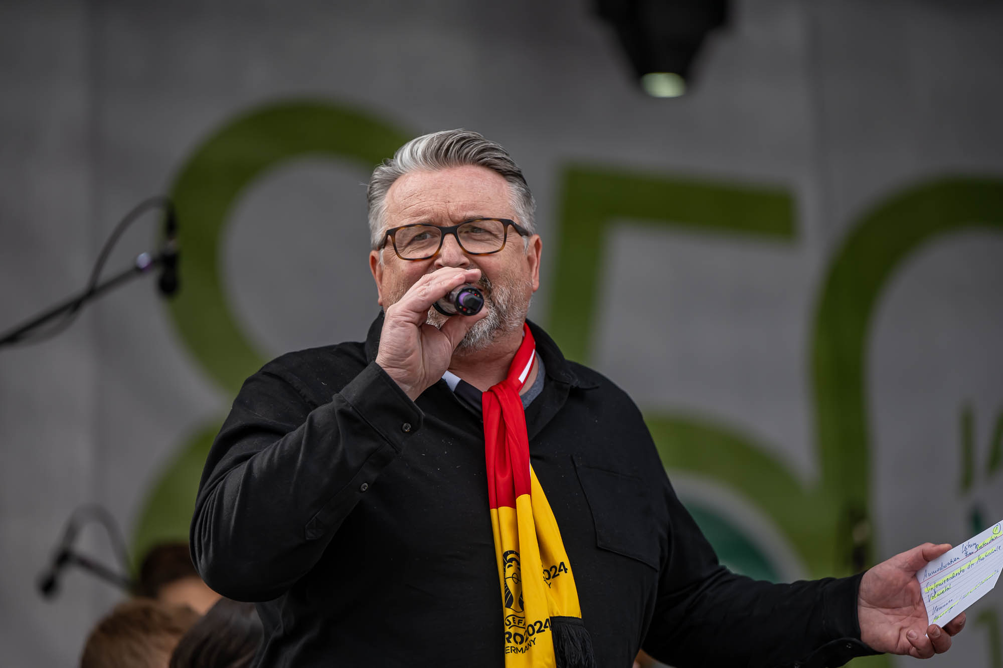 Nach dem ersten offiziellen Teil des Jubiläumswochenendes brach natürlich die Fußballbegeisterung aus: Das Public Viewing des EM-Eröffnungsspiel wurde geschickt “eingebaut”. Auch eine Erwähnung wert: Das Wetter spielte auch mit — und pünktlich zum Start ins Festwochenende gab es blauen Himmel!