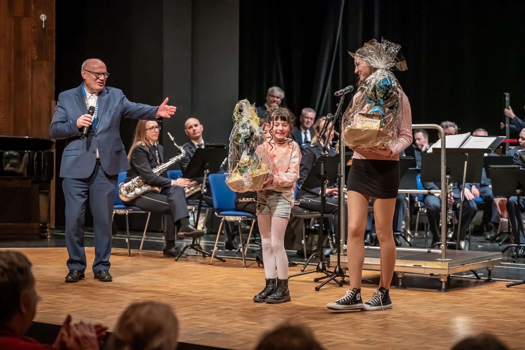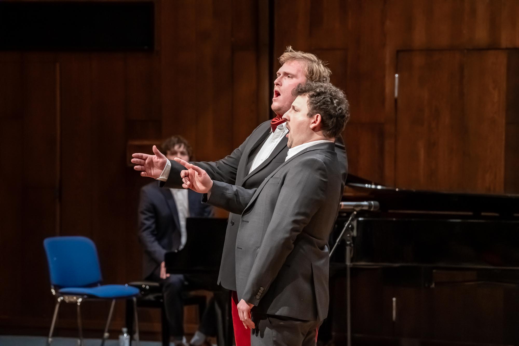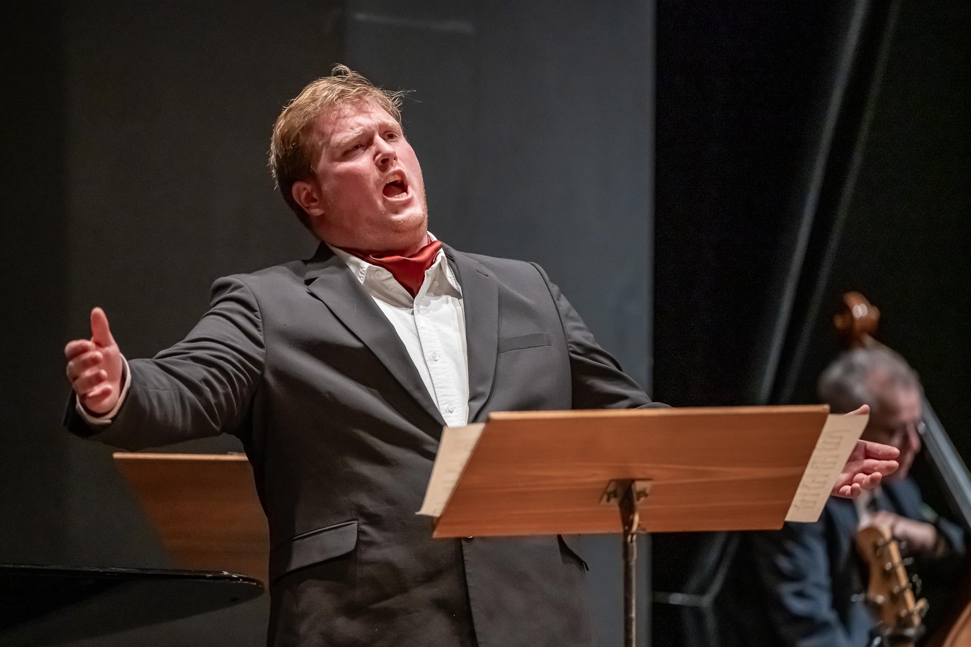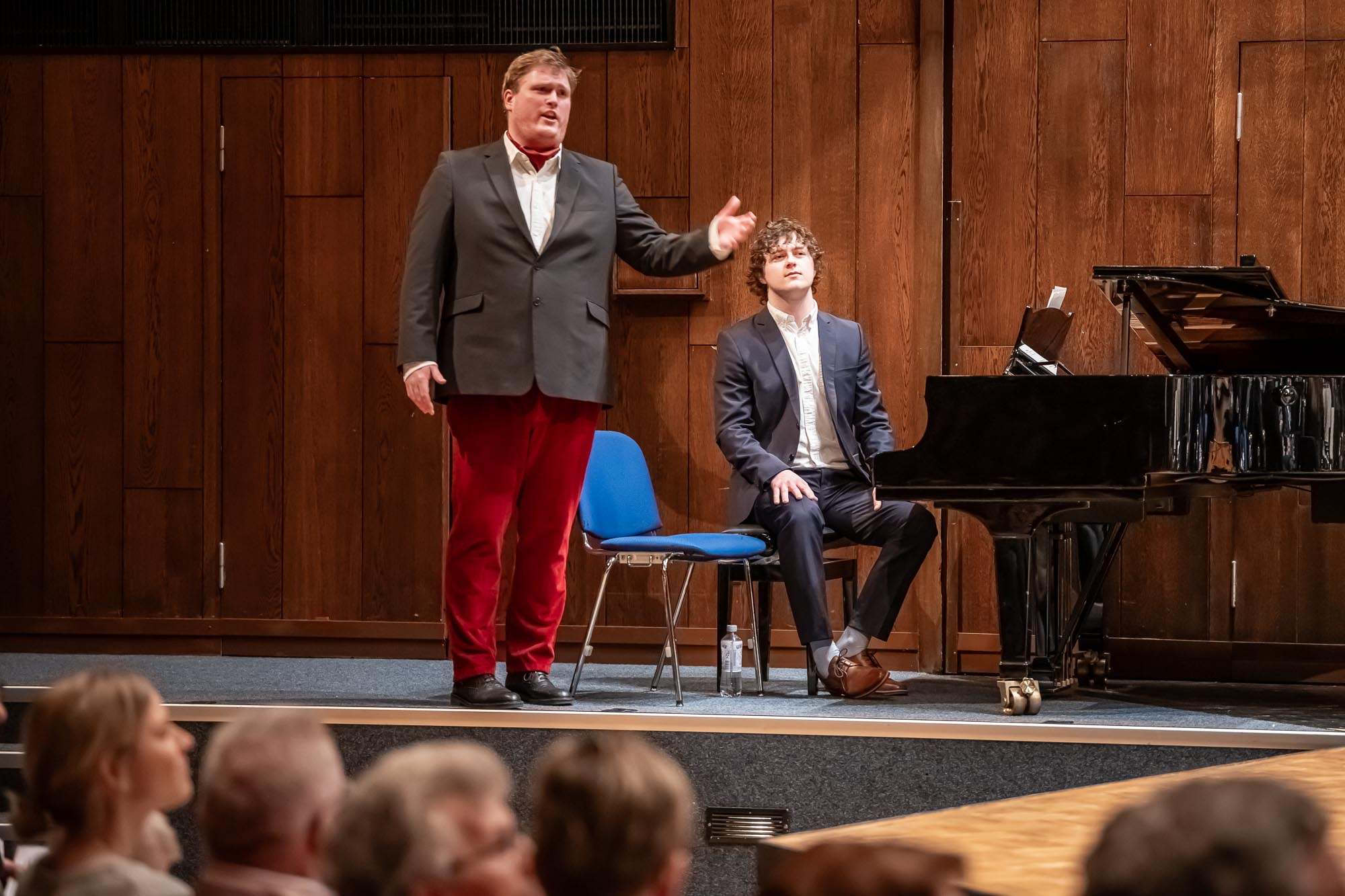 In die Stilrichtung Pop ging mit der Volme-Sound-Connection. Diese Blechbläser mitsamt Schlagzeuger gehören auch zur Musikschule Volmetal und spielten und der Leitung von André Becker ein Michael-Jackson-Medley, aber auch bekannte Hits wie “Big Spender”. Als anschließend kurzzeitig das Landespolizeiorchster erneut ins Programm einstieg, wurde es mit dem Komponisten Giuseppe Verdi italienisch: Die perfekte Überleitung zu den beiden Tenören Maximilian Daum und Jonas Wuermeling. Tobias Dietrich spielte dazu am Flügel. Das Repertoire: Mit Schuberts “Ave Maria” oder Wagners “Winterstürmes”, überwiegend klassisch ausgeprägt.