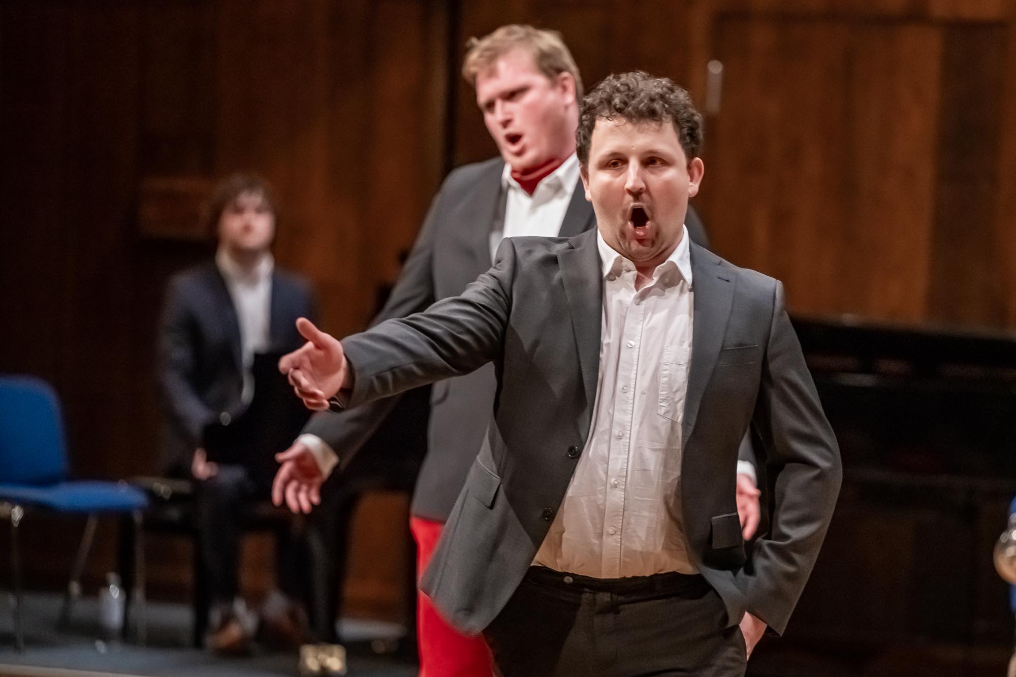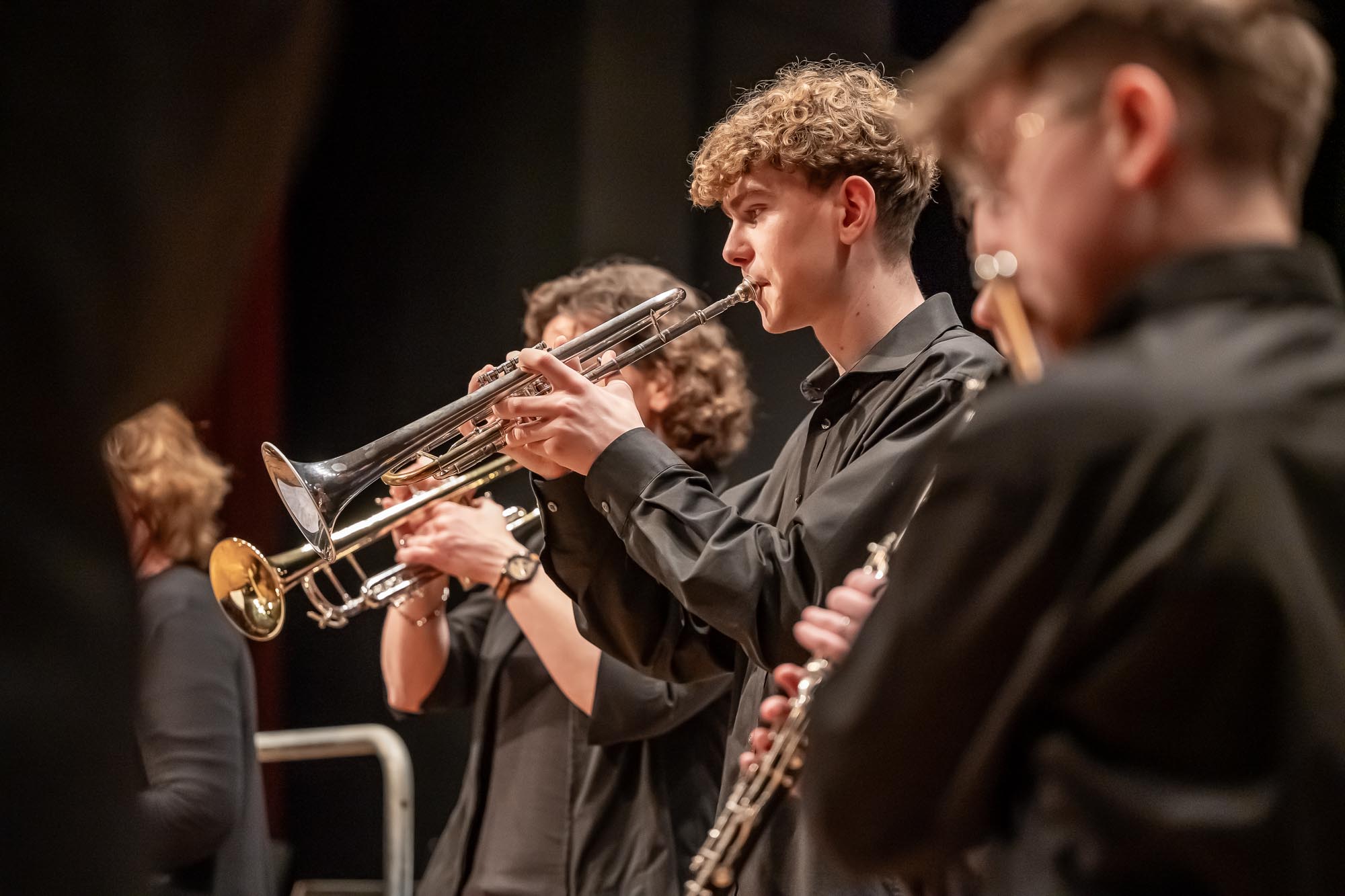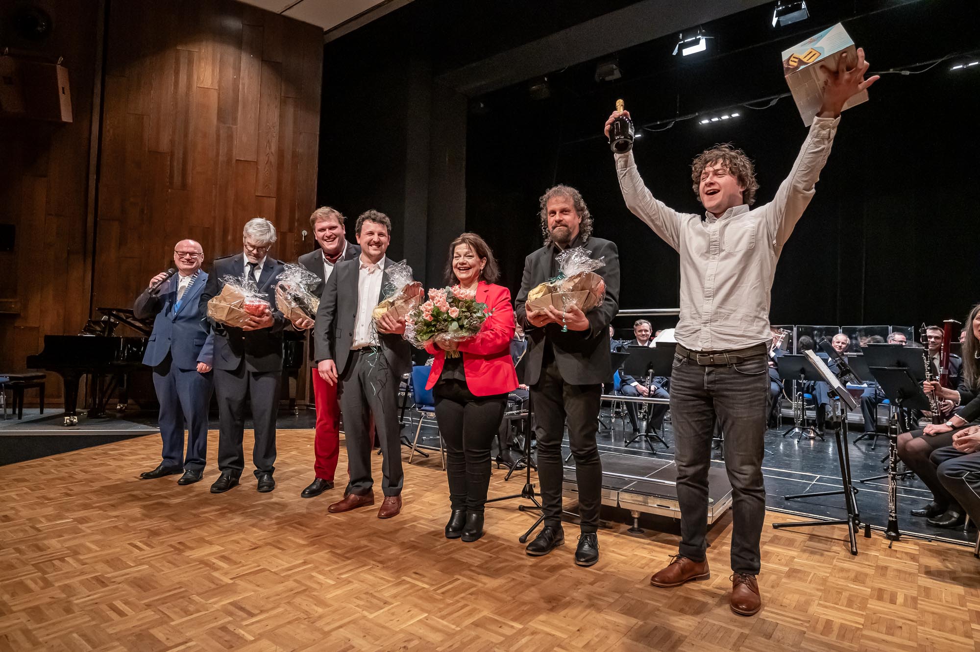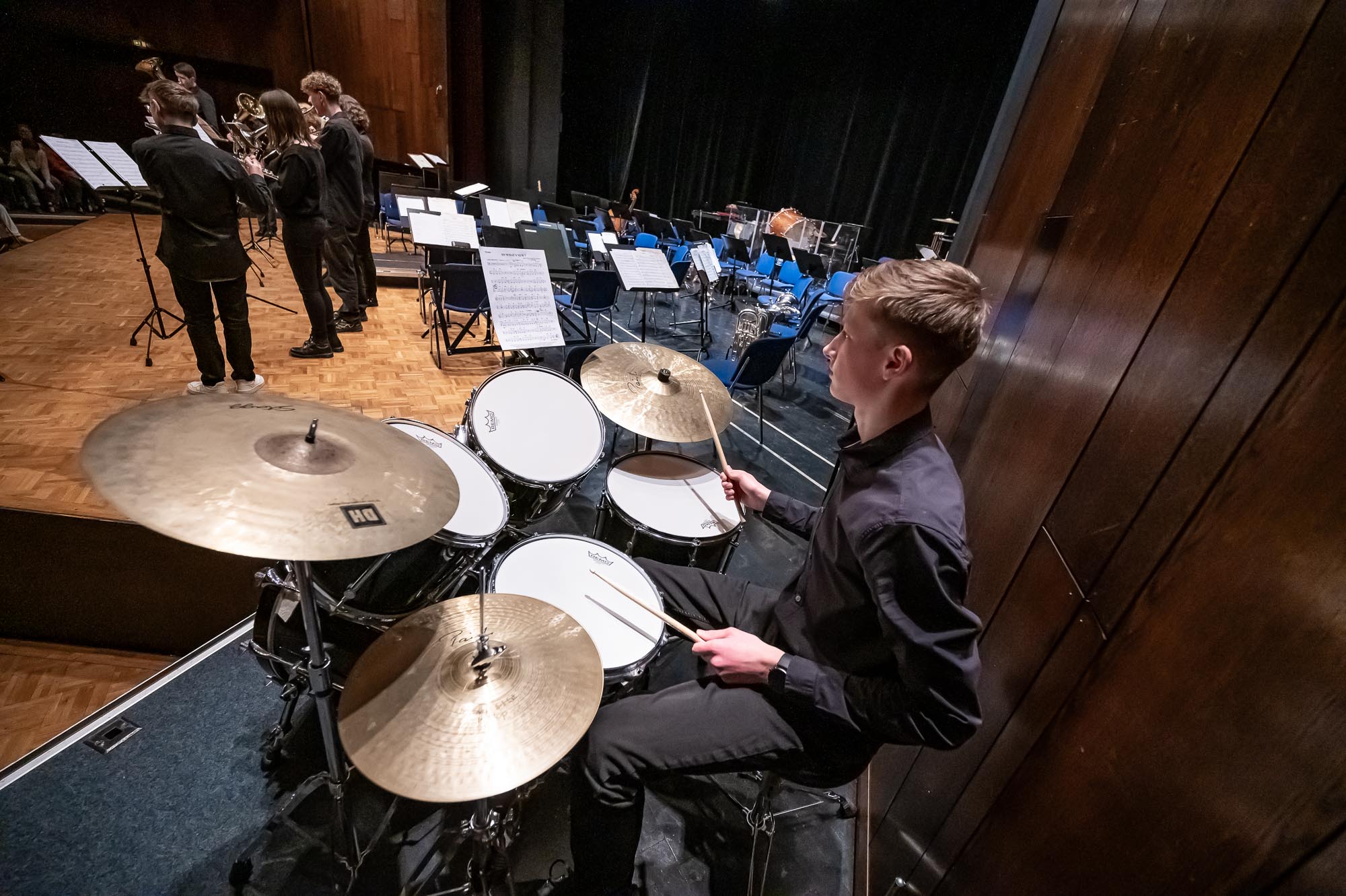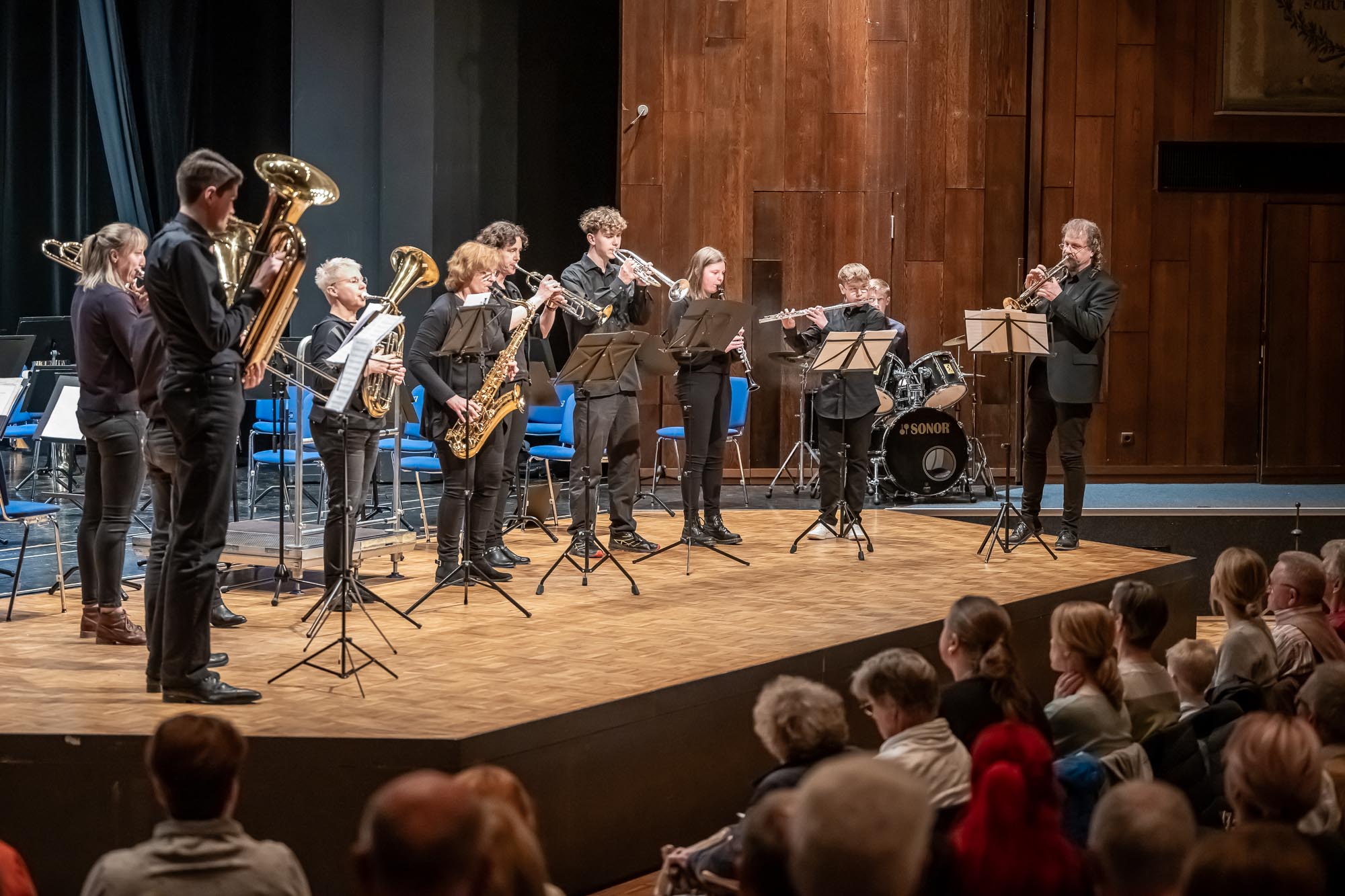 In die Stilrichtung Pop ging mit der Volme-Sound-Connection. Diese Blechbläser mitsamt Schlagzeuger gehören auch zur Musikschule Volmetal und spielten und der Leitung von André Becker ein Michael-Jackson-Medley, aber auch bekannte Hits wie “Big Spender”. Als anschließend kurzzeitig das Landespolizeiorchster erneut ins Programm einstieg, wurde es mit dem Komponisten Giuseppe Verdi italienisch: Die perfekte Überleitung zu den beiden Tenören Maximilian Daum und Jonas Wuermeling. Tobias Dietrich spielte dazu am Flügel. Das Repertoire: Mit Schuberts “Ave Maria” oder Wagners “Winterstürmes”, überwiegend klassisch ausgeprägt.