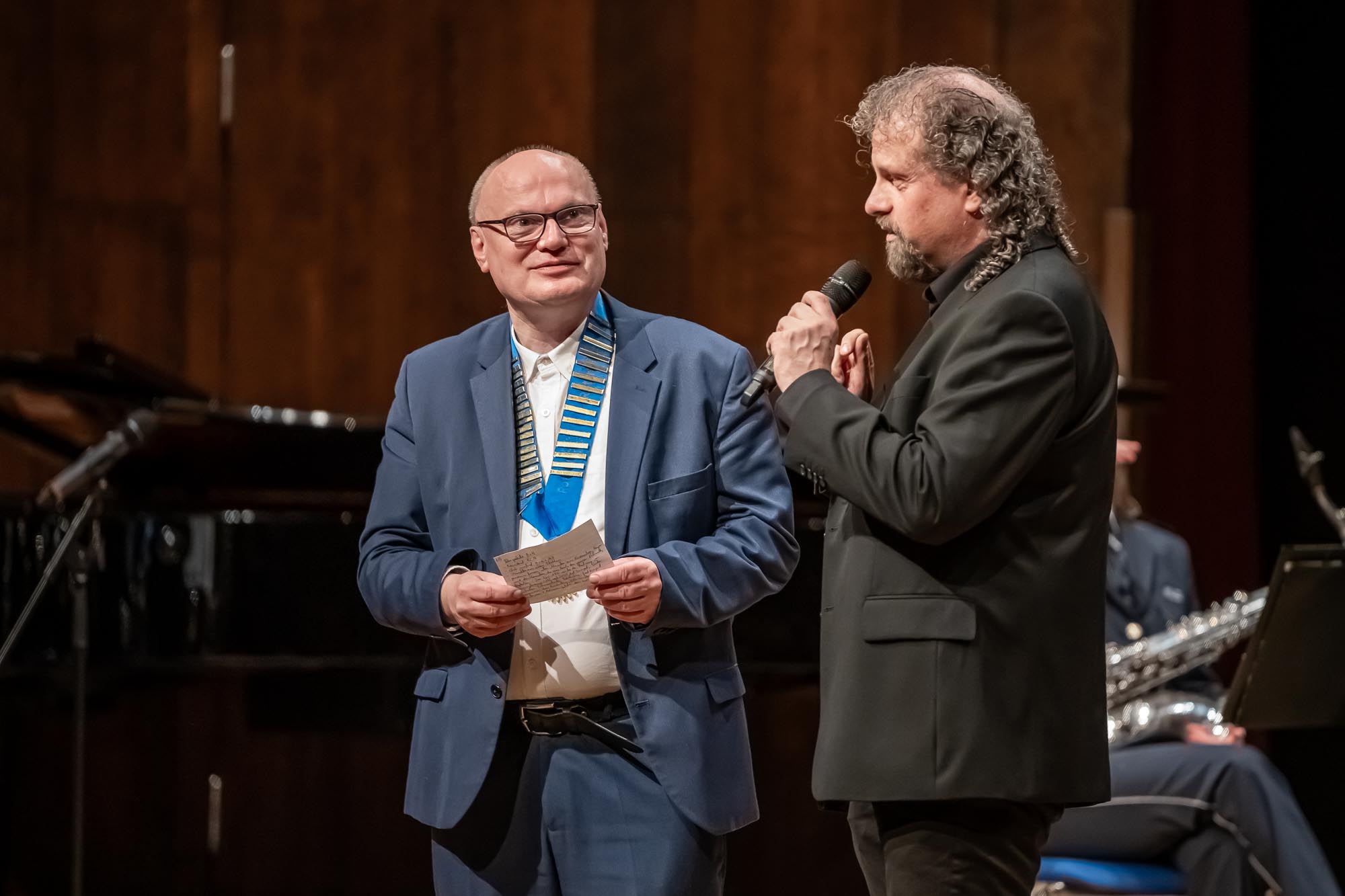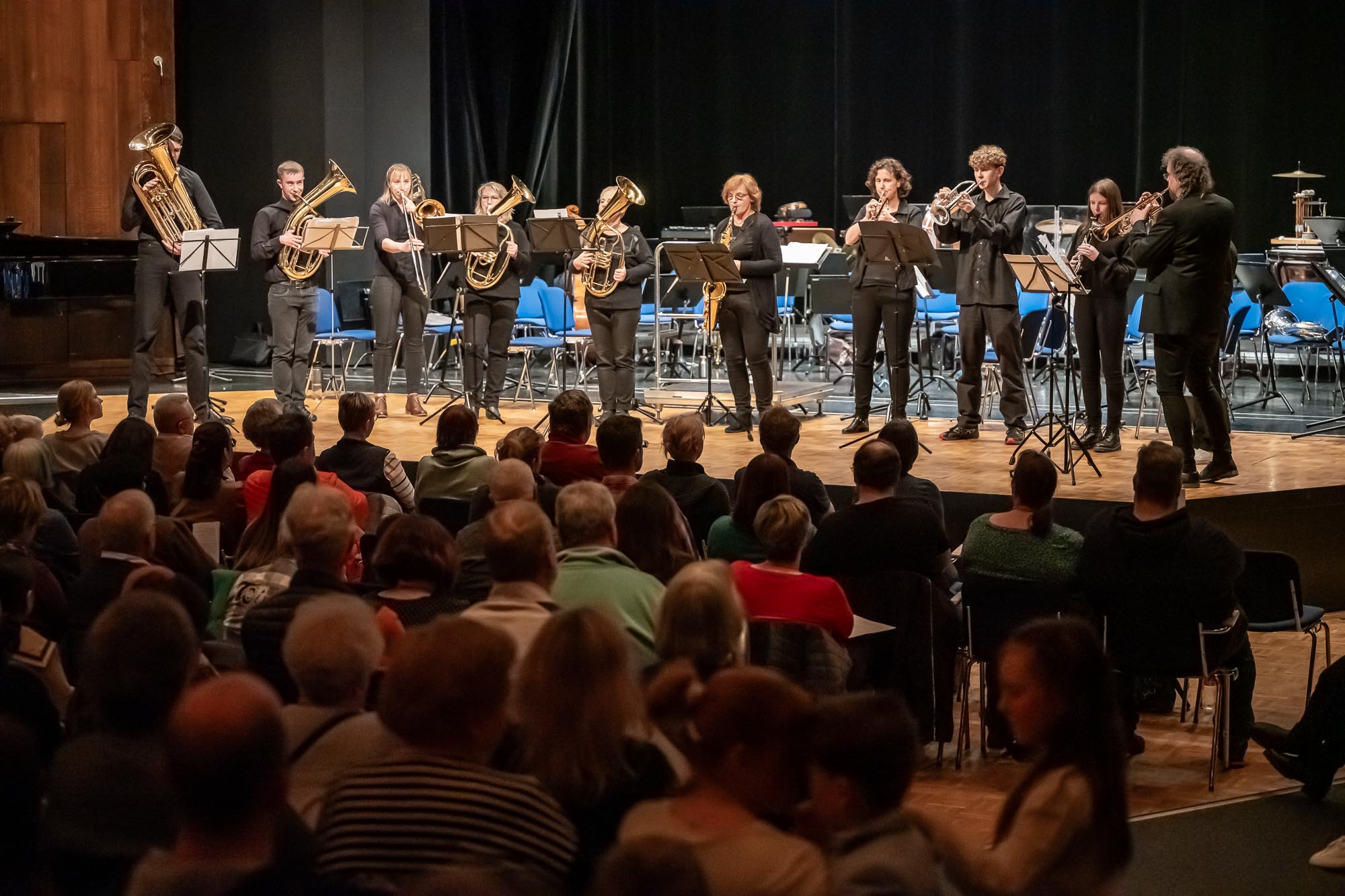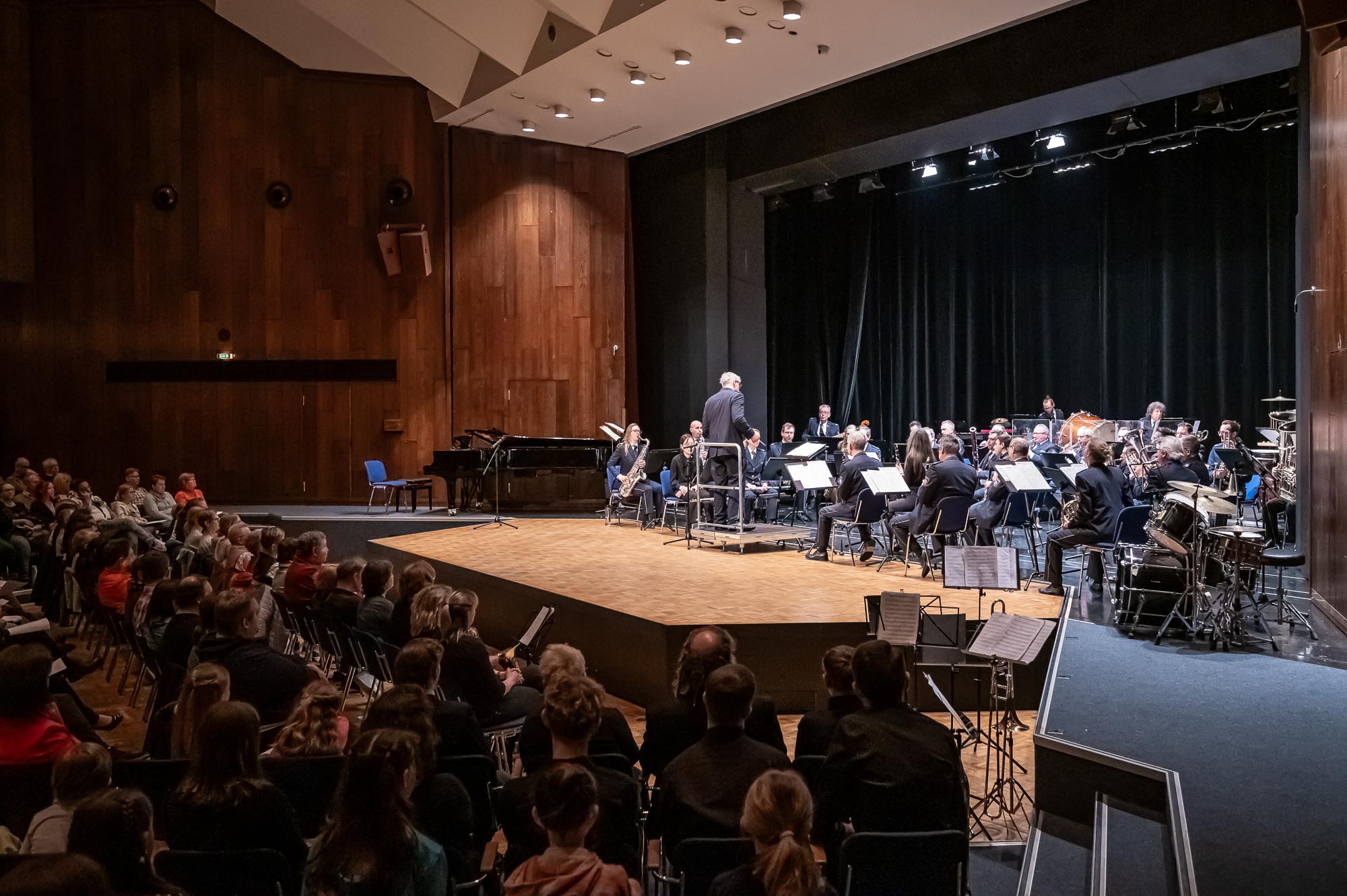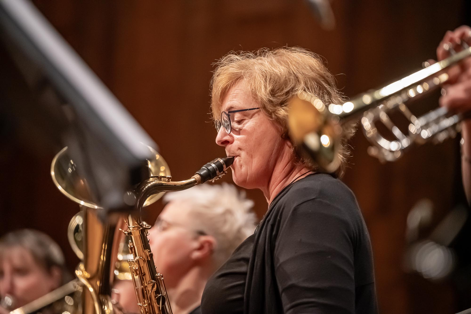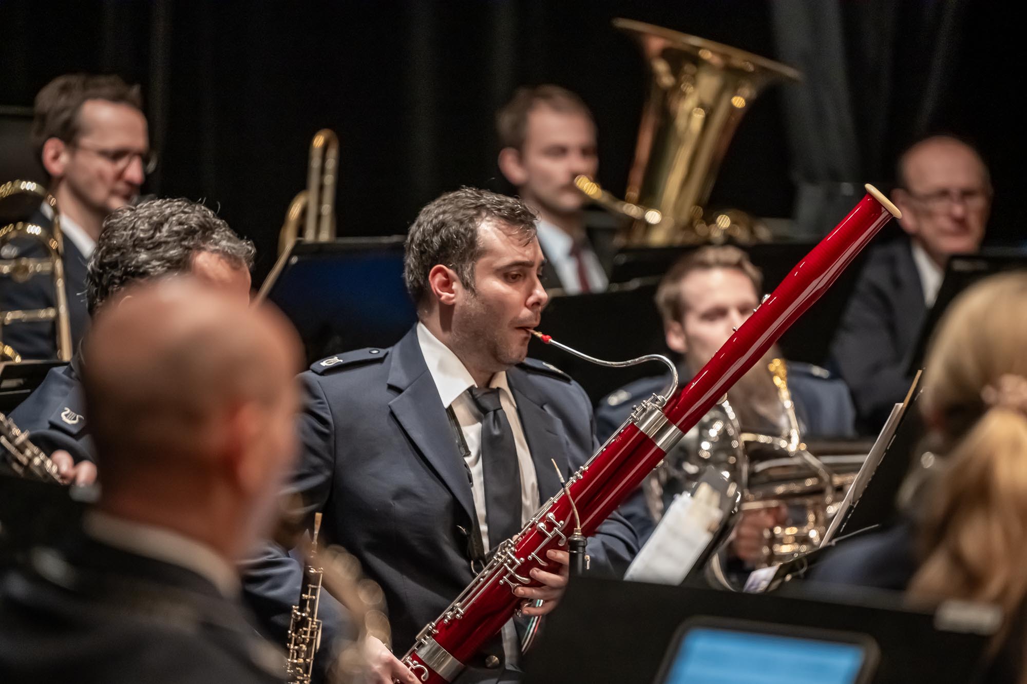 Das Publikum in der fast vollbesetzten Stadthalle widmete seine Aufmerksamkeit aber dem musikalischen Programm. Das von Burkhard Flüß maßgeblich organisierte Konzert weckte schon mit dem ersten Titel hohe Erwartungen: Mit “Te Deum”, umgangssprachlich als Eurovisions-Hymne bekannt, sorgte das Landespolizeiorchster NRW vom ersten Moment an für Gänsehaut. In dem vom US-Amerikaner Scott Lawton geführten Ensemble spielen derzeit bis zu 45 Musikerinnen und Musiker aus neun Nationen und quer durch verschiedene musikalische Genres.