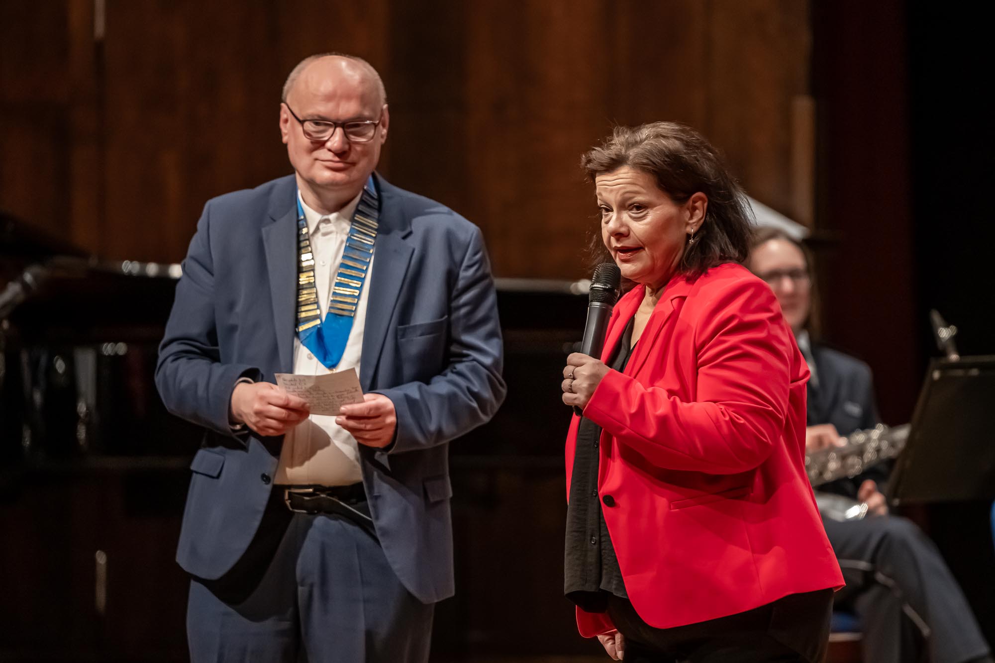 MEINERZHAGEN (mk) Die Zusammenstellung ließ aufhorchen: Der Rotary Club Meinerzhagen lud zu einem ungewöhnlichen Konzert am vergangenen Sonntag, 3. März, in die Meinerzhagener Stadthalle. Allein der Anlass dürfte manchen Musikliebhaber angelockt haben: Der Erlös des Konzertes ist für die Ausbildung von Kindern und Jugendlichen im Volmetal bestimmt. In Meinerzhagen, Kierspe und Halver sollen besonders Kinder mit Migrationshintergrund in ihrer sprachlichen Entwicklung gefördert werden. “Ohne vernünftige Deutsch-Kenntnisse haben die Kinder keine Chance, in der Schule vernünftig zu lernen”, erklärt Club-Präsident Burkhard Flüß die Intention dahinter. Davon würden auch die Kinder ohne Sprachbarrieren profitieren, weil den Lehrerinnen und Lehrern mehr Zeit bleibe, ihnen mehr Aufmerksamkeit zu widmen.