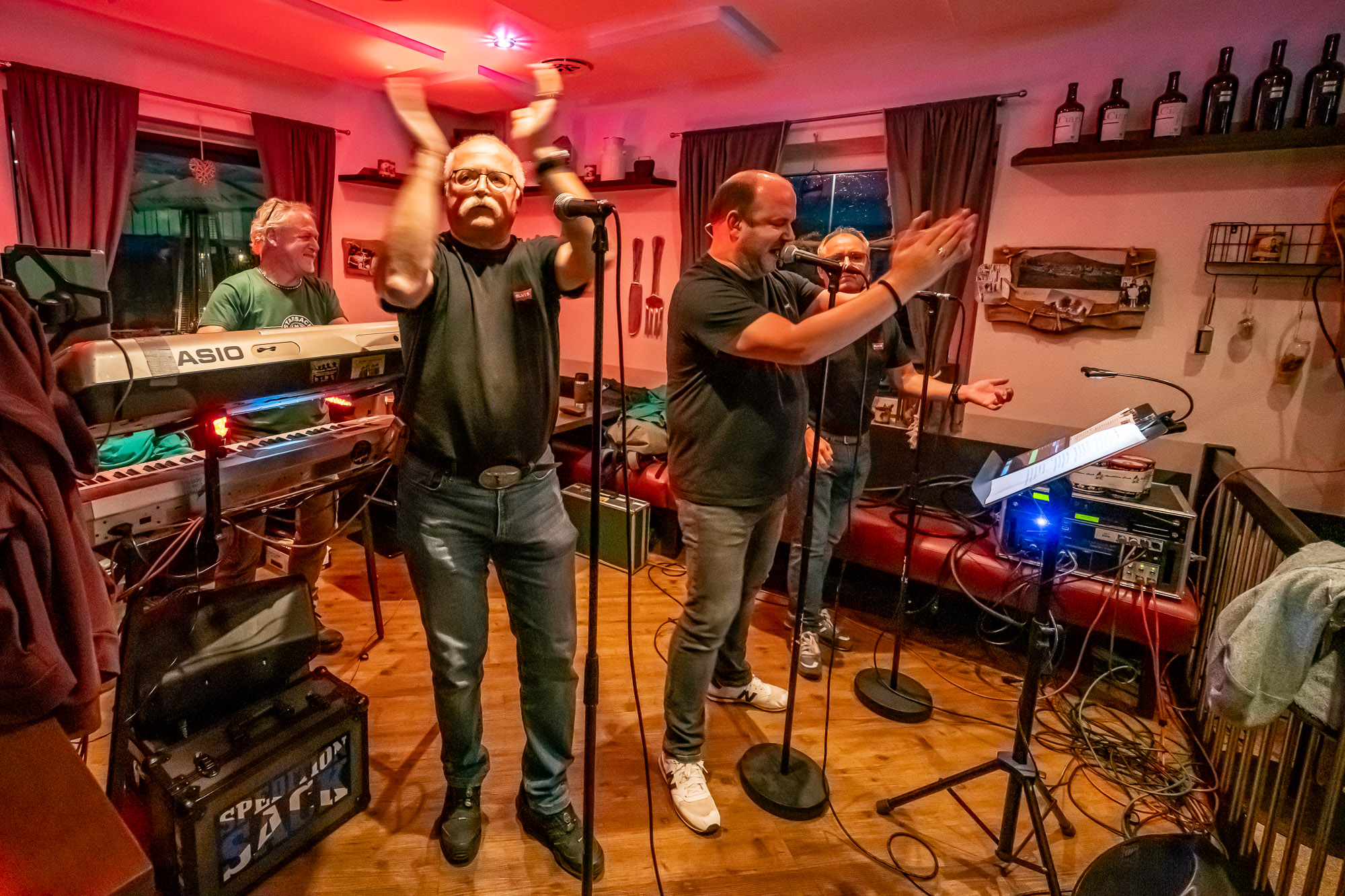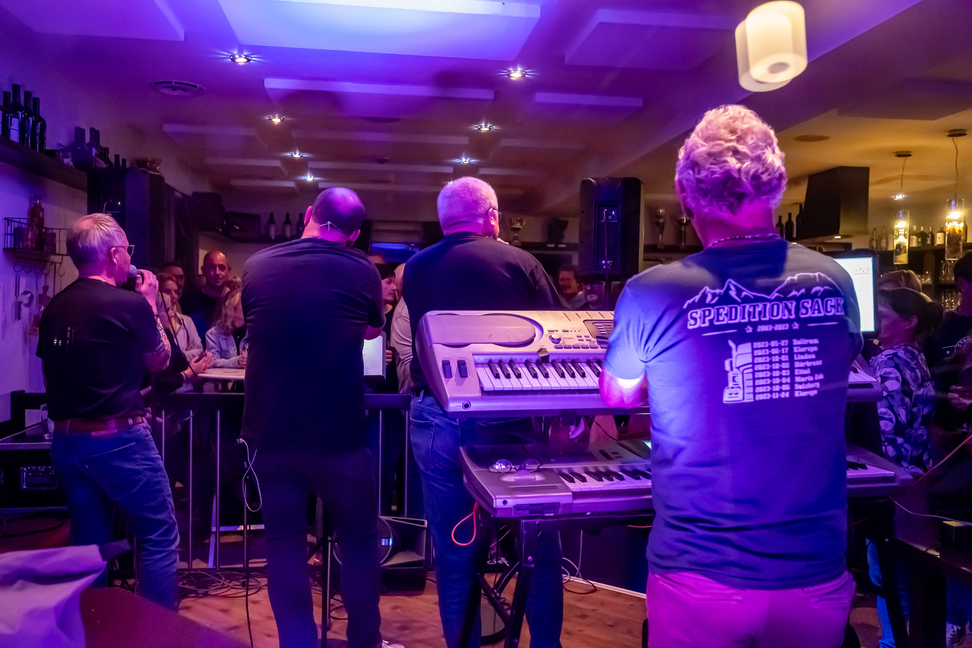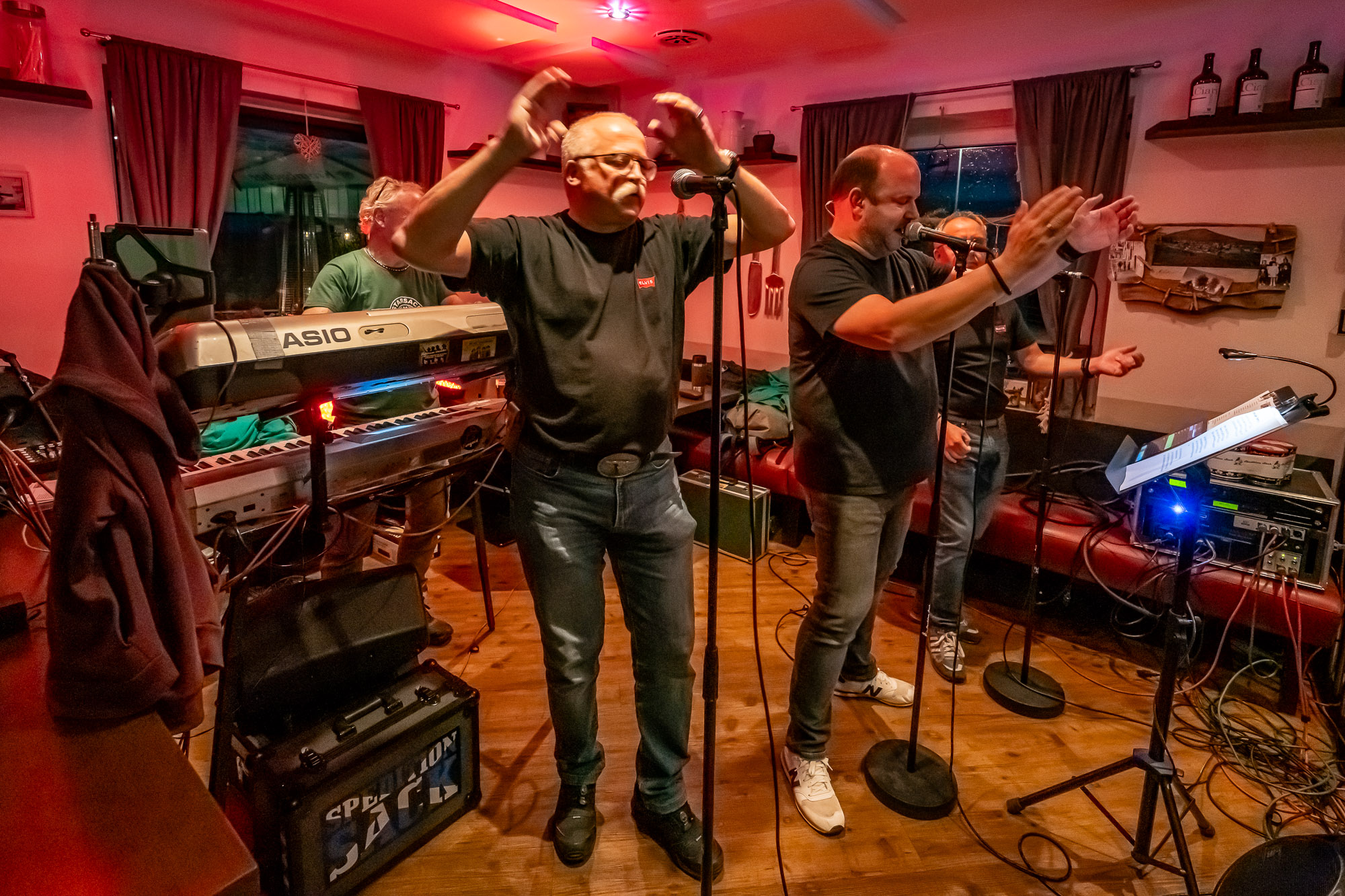 Dort blieb es an diesem Abend aber ruhig, was man von der Trattoria nicht behaupten konnte: Hier heizten Hans, Heinz und Horst Sack mit Unterstützung von Holgi Hartz den Gästen richtig ein. Wieviele davon sich in das Ristorante zwängten, ist zwar nicht überliefert, aber mehr hätten wirklich nicht mehr reingepasst. Sehr zur Freude der Kiersper Kult-Band fanden sich im Publikum nicht nur Hardcore-Fans: “Wir haben auch einige neue Gesichter gesehen” freut sich Horst über den Zulauf.