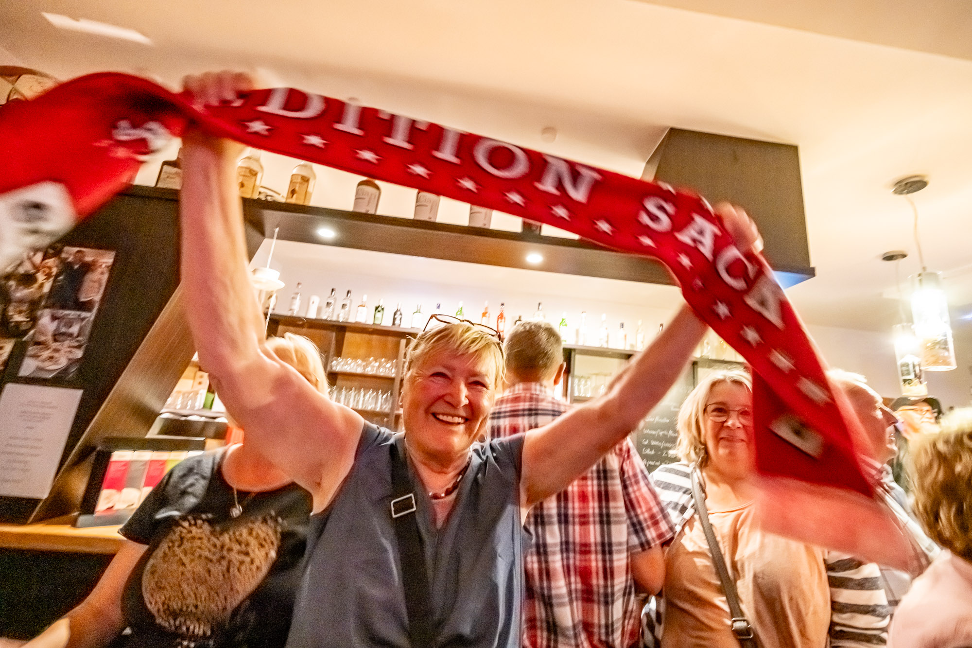 Das musikalische Programm entsprach genau dem, was die Mitfeiernden erwarteten: Das erste Set hatte dem Markenimage zum Trotz einen deutlichen Country-Anteil und endete mit dem aus dem Film “Blues Brother” endgültig bekannten Titel “Minnie the Moocher”. Der zweite Teil begann mit einer Cover-Version dritten Grades, die zur Hommage an eine deutsche Tennis-Legende umgedichtet worden war. Überhaupt wurde es schlagerlastig, wobei mit Spliffs “Carbonara” und dem Schmachtfetzen “Ti Ama” auch dezent auf die italienischen Wurzeln des Gastgebers hingewiesen wurde. Wie die Abwägung zwischen Stimmung und Respekt vor dem Liedgut beim dritten Set ausgegangen ist, dürfte jedem klar sein, der schon einmal einer öffentlichen Probe der Spedition Sack beigewohnt hat: Die die originalen Titel ließen sich zwar wiedererkennen, dennoch mussten Liebhaber der ursprünglichen Texte wieder einmal sehr tapfer sein.