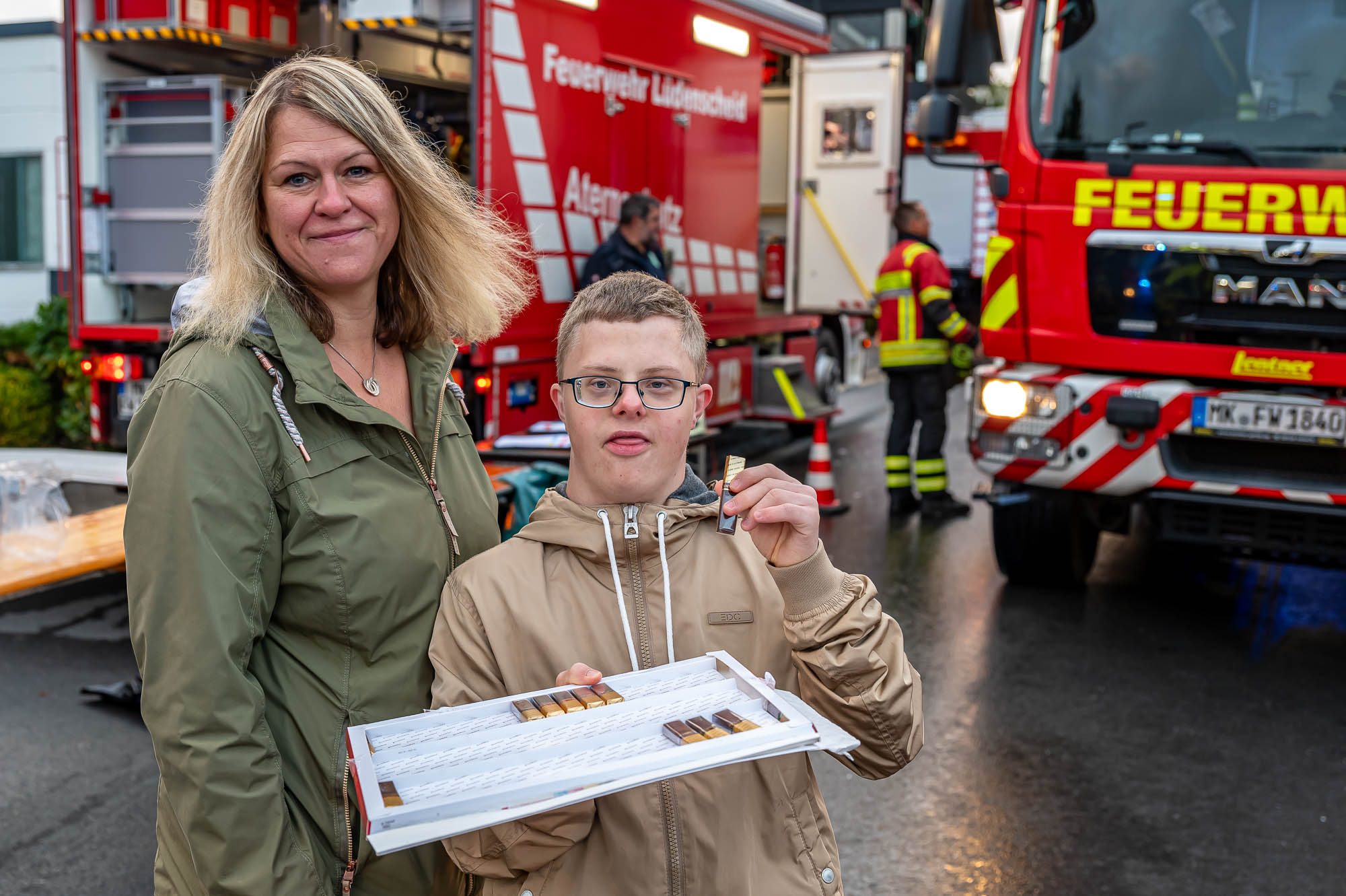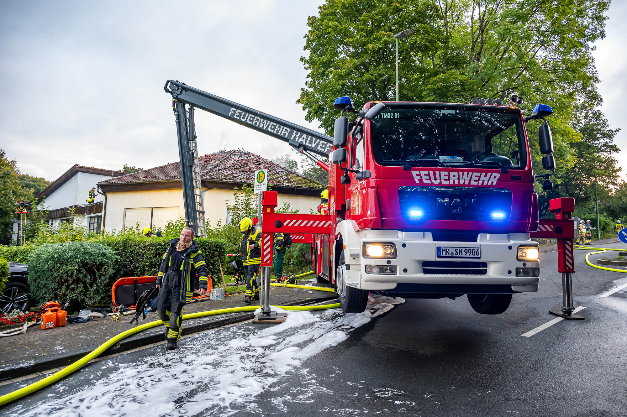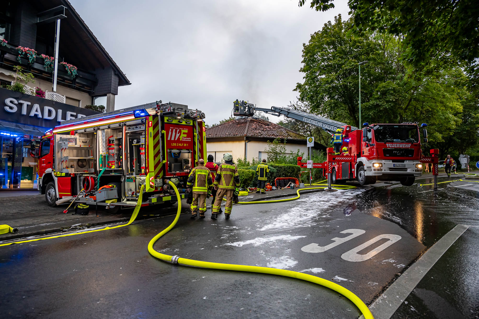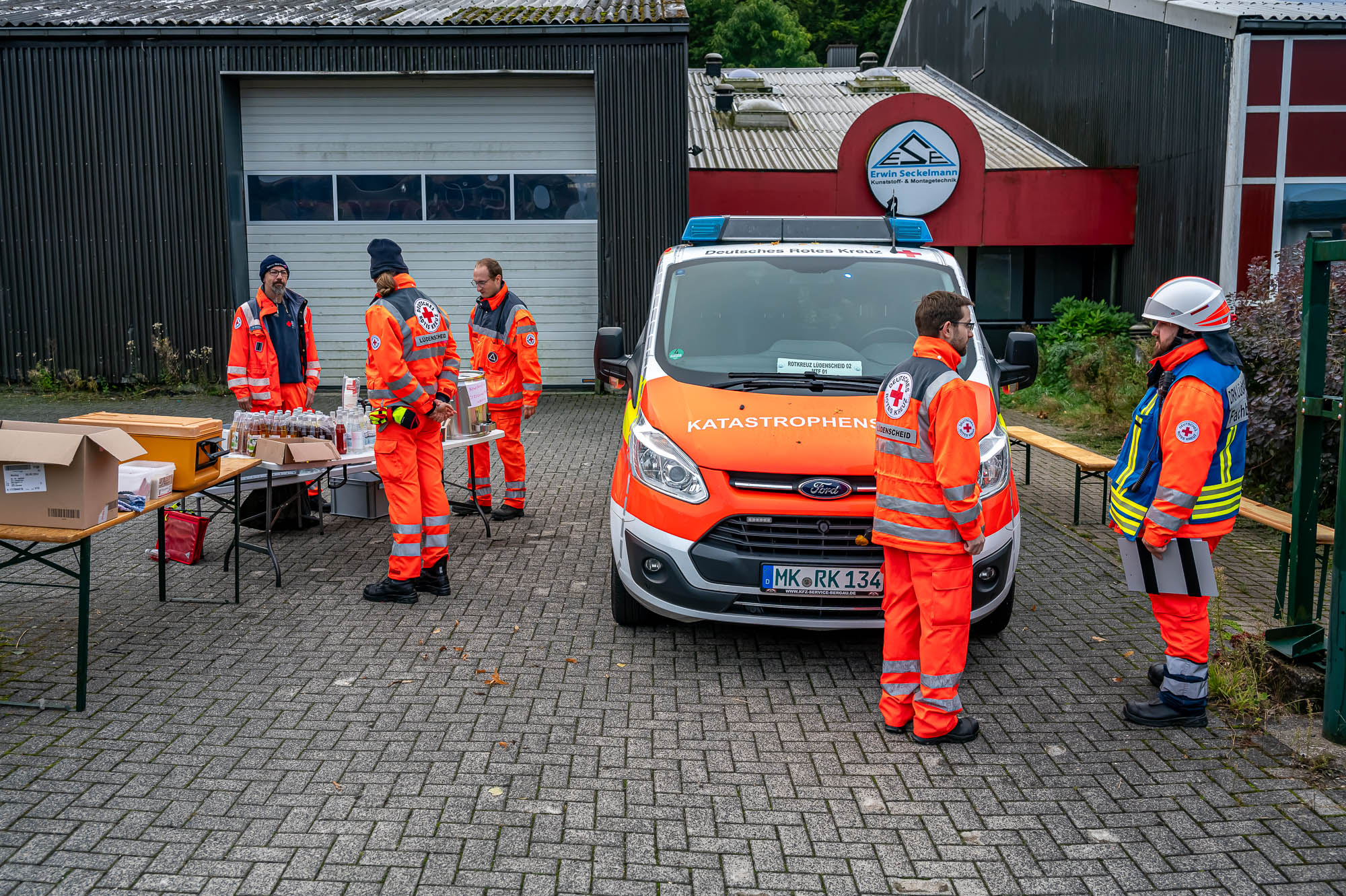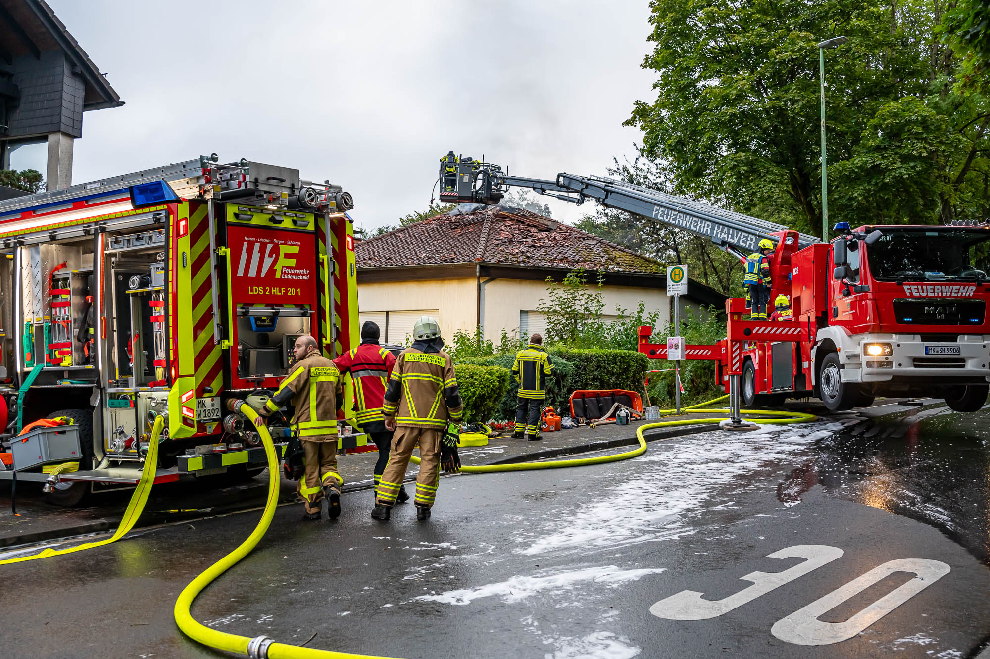 Für die Lüdenscheider Wehr war in der Nacht Stadtalarm ausgerufen worden. Aus dem gemeldeten “Brand am Gebäude” wurde schnell ein “Entwickelter Brand”, nach und nach wurden immer mehr Kräfte nachalarmiert. Die Löschzüge Brügge und Brüninghausen sorgten für den Grundschutz. Zunächst sollten sich die dortigen Kameraden in ihren Gerätehäusern bereithalten, später besetzten sie die Hauptamtliche Wache am Dukatenweg. Direkt an die Einsatzstelle alarmiert wurden allerdings Wehrleute aus Halver, die mit ihrem Teleskopmast die vorhandene Drehleiter gut ergänzten. Um die Versorgung der vielen Einsatzkräfte kümmerten sich Ehrenamtliche vom Deutschen Roten Kreuz.