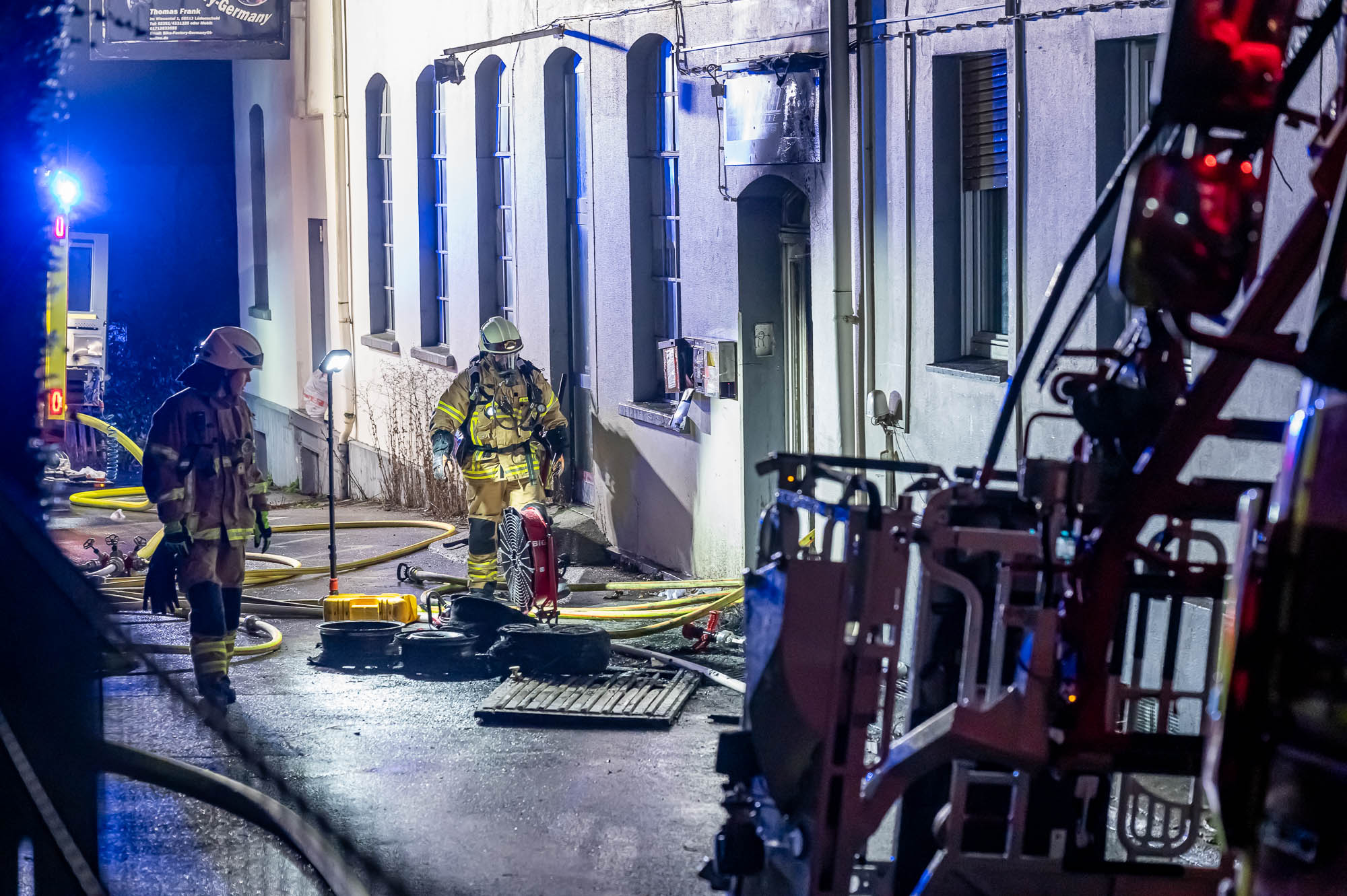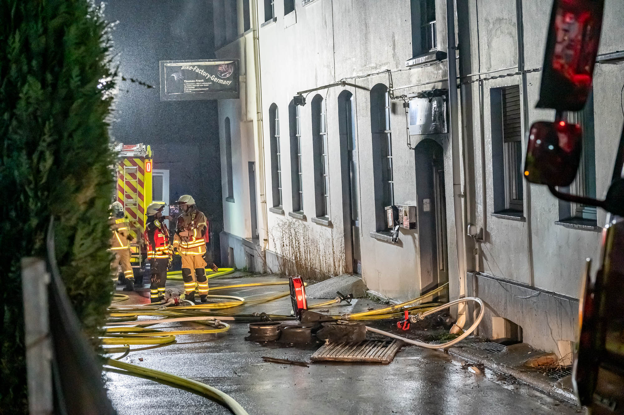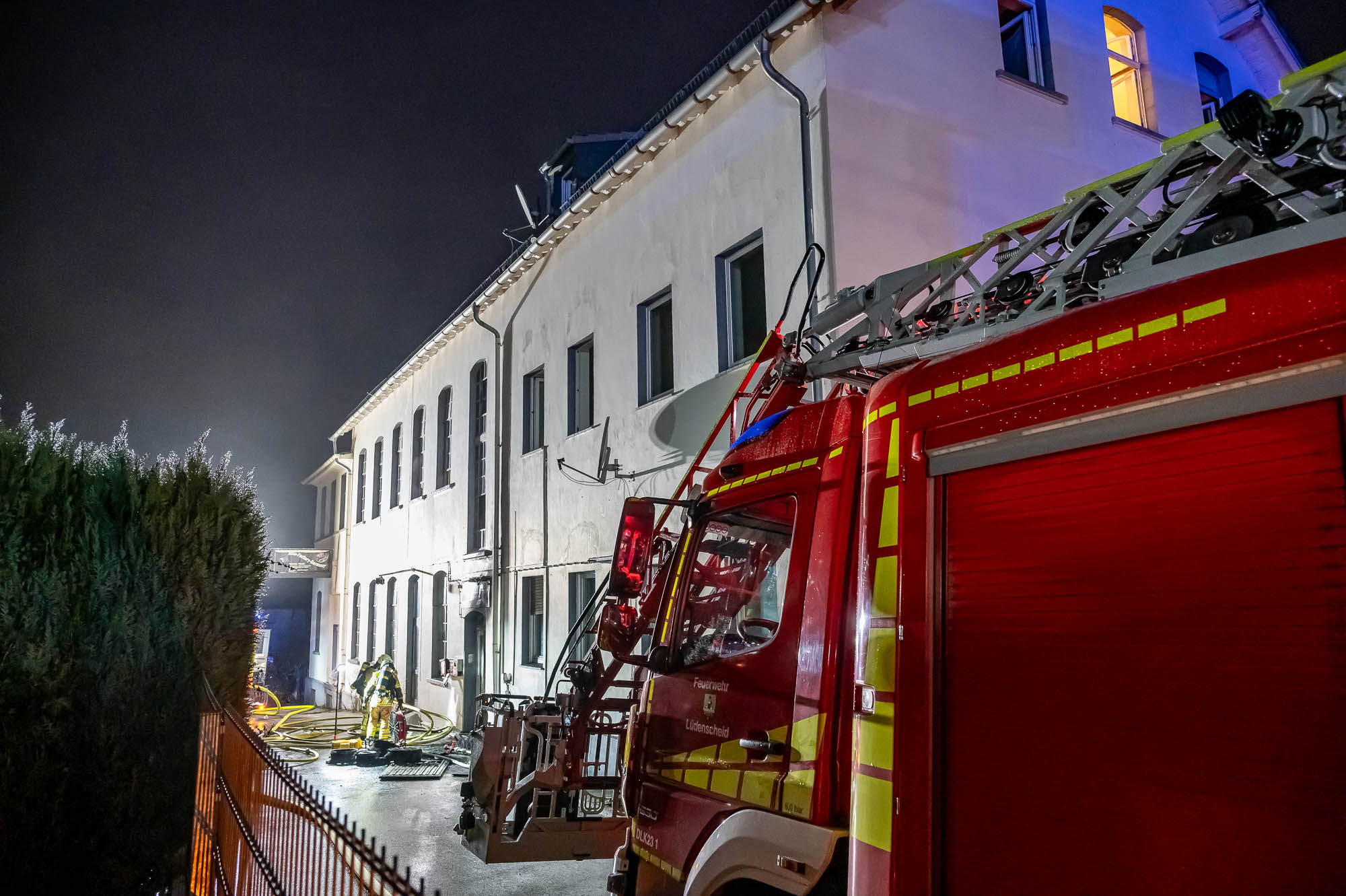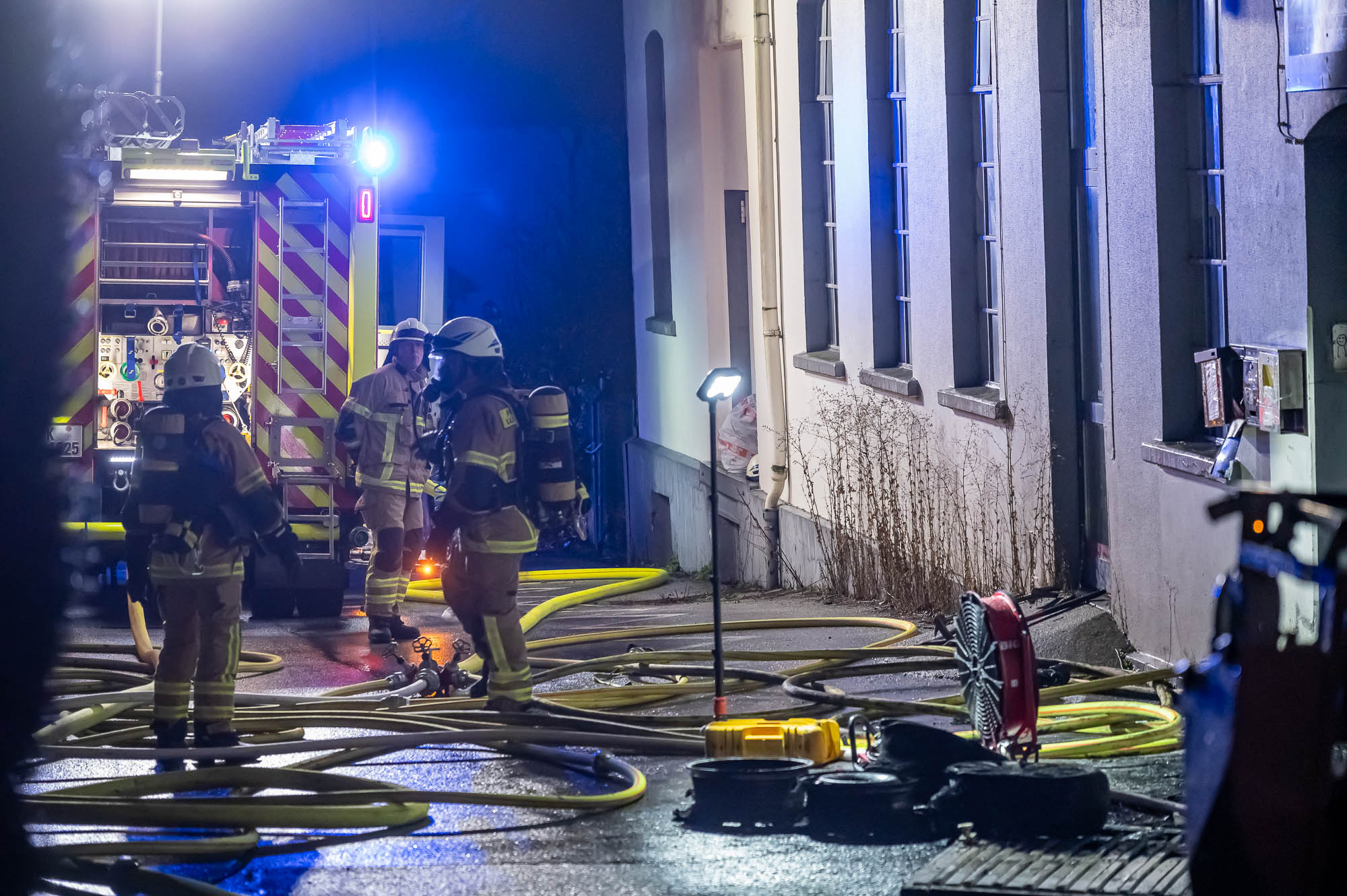 Zehn weitere Bewohner, die teils per Drehleiter und mit Rettungshauben aus dem brennenden Haus gerettet worden waren, wurden vor Ort untersucht, benötigten aber keine weitere medizinische Hilfe. Das war zunächst nicht klar, weshalb auf eine ManV5-Lage (Massenanfall von Verletzten) hochalarmiert worden war. Das Feuer konnte gelöscht werden, das Haus ist aber erstmal unbewohnbar. Ausserdem hat die Polizei das Gebäude als möglichen Tatort beschlagnahmt, da inzwischen der Verdacht auf Brandstiftung aufgekommen ist. Das Wohnhaus ist in einen Gebäudekomplex eingebettet, der in zweiter Reihe steht. Auch Firmen sind dort untergebracht.