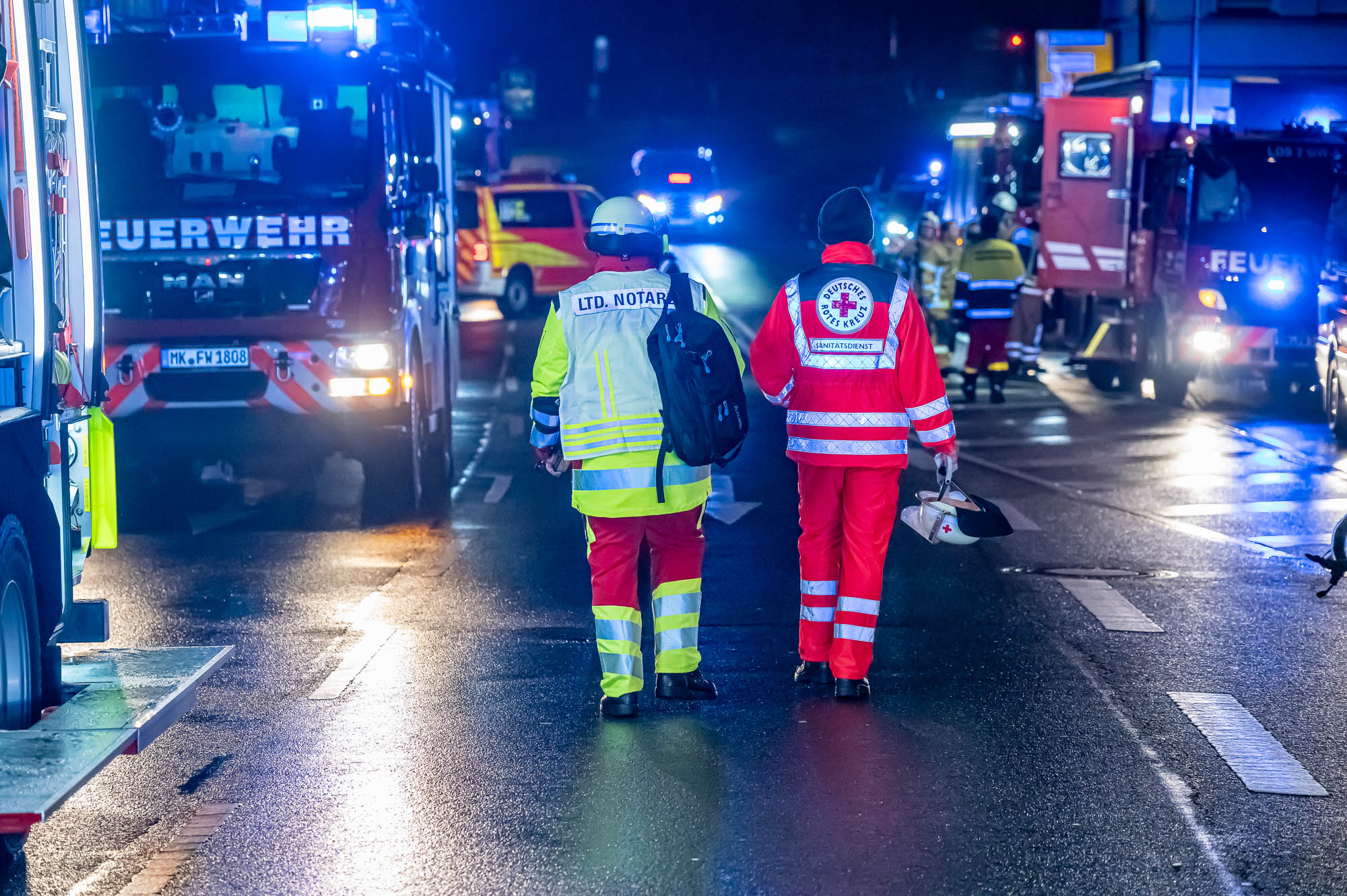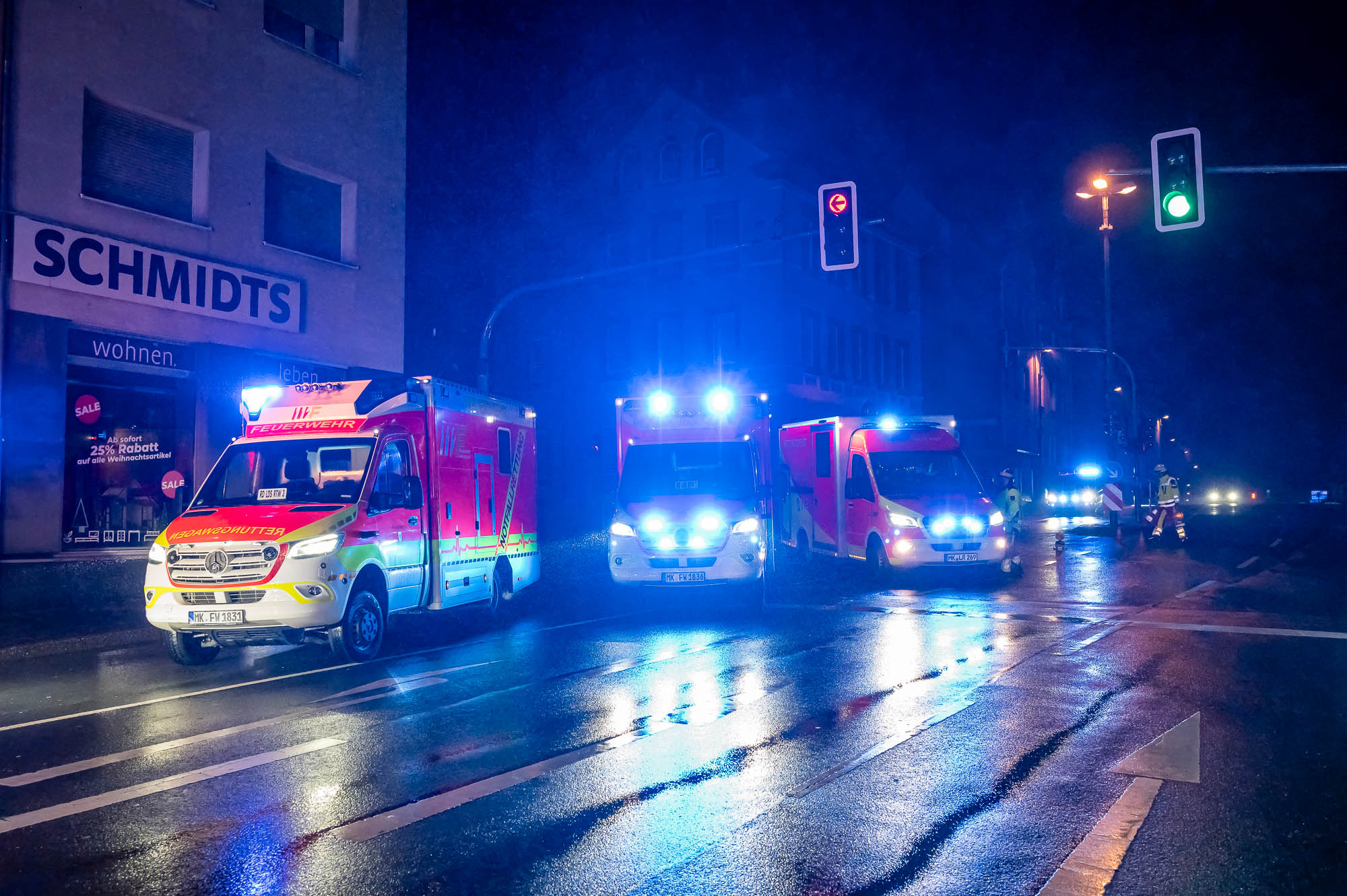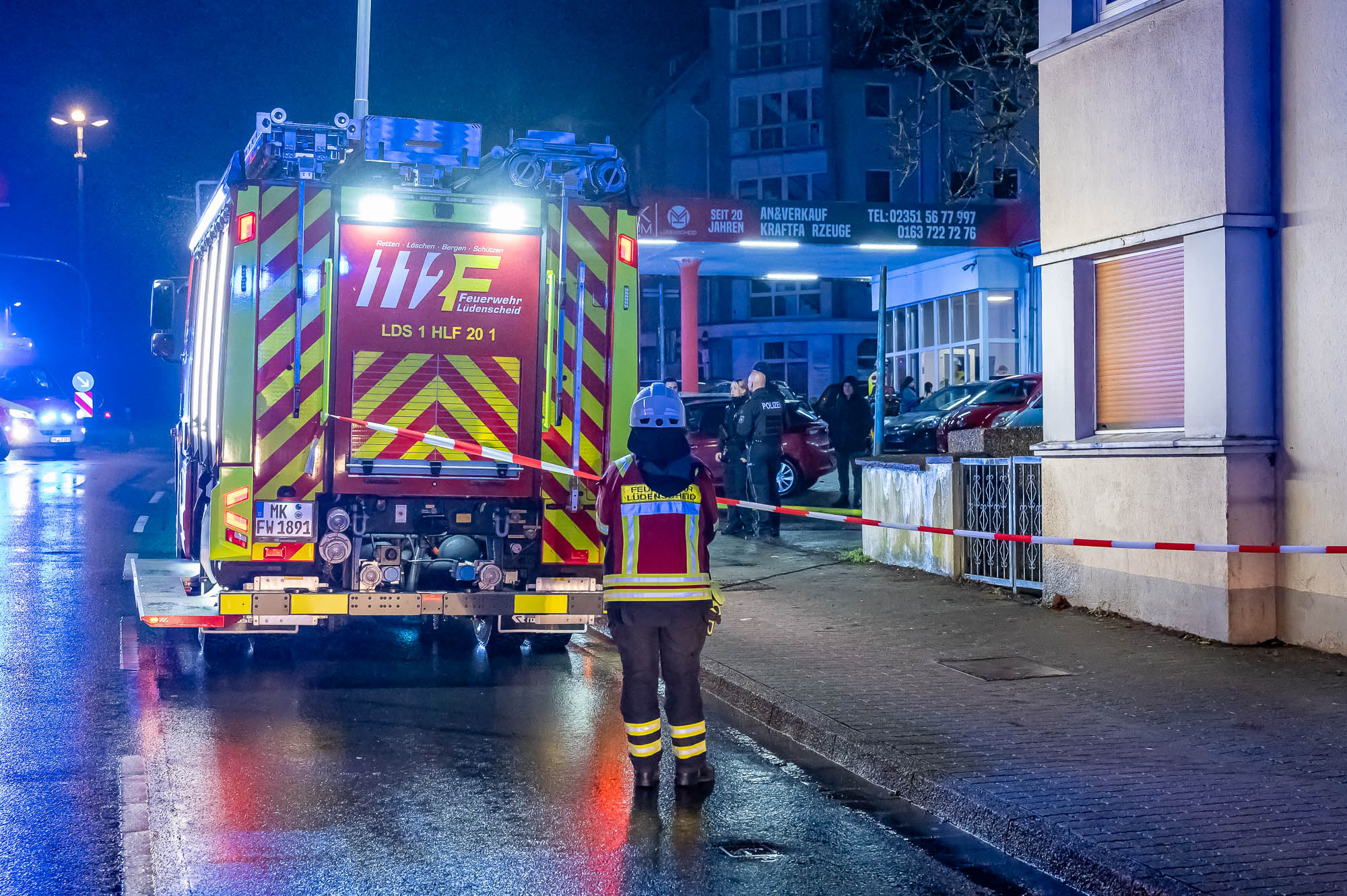 LÜDENSCHEID (mk) Zu einem Wohnungsbrand in einem Mehrfamilienhaus in der Heedfelder Straße wurde die Lüdenscheider Feuerwehr an Heiligabend gegen 23.30 Uhr mit dem Stichwort “Feuer 2 — mehrfache Menschenrettung” alarmiert. Tatsächlich brannte es im Eingangsbereich, auch durch die starke Verrauchung des Treppenhauses war den Menschen in den oberen Geschossen der Fluchtweg abgeschnitten. Zwei Personen wurden bei dem Brand teils schwerverletzt und mussten ins Krankenhaus.