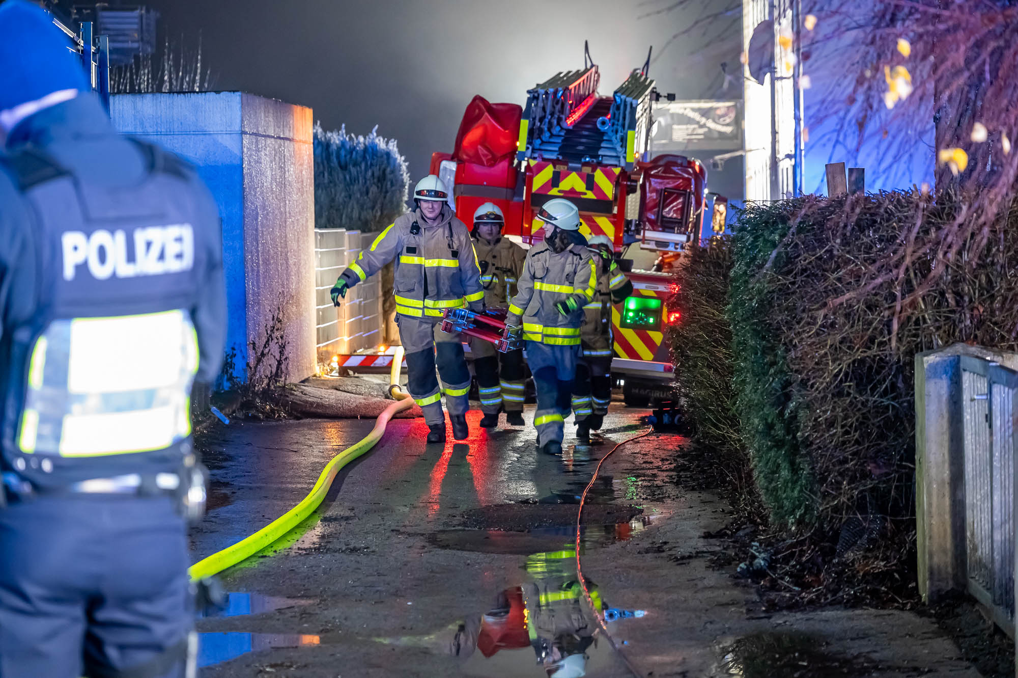 Update 25.12., 12:15: Wie die Polizei mittlerweile bestätigt, wird nun ausdrücklich wegen vorsätzlicher Brandstiftung ermittelt. Nach ersten Erkenntnissen wurde im Hausflur Reifen absichtlich in Brand gesteckt.