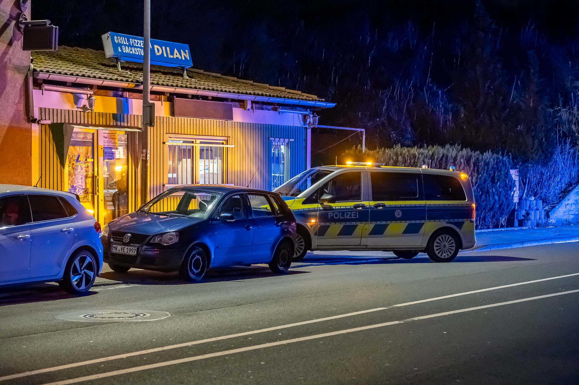 Der 44-Jährige wurde glücklicherweise nicht lebensgefährlich verletzt. Nach der ersten Versorgung durch einen Notarzt wurde der Mann ins Krankenhaus gefahren. Polizisten eskortieren den Rettungswagen auf dem Weg ins Lüdenscheider Klinikum. Parallel dazu wurden vor Ort die Ermittlungen aufgenommen, Zeugen vernommen. Ausserdem wurde eine Nahbereichsfahnung eingeleitet. Fieberhaft suchten Beamten auch über hunderte Meter weit die Straße nach der Tatwaffe ab, kontrollierten auch Mülltonnen, Altkleidercontainer und Gebüsche. Ein Nachbar erklärte, ein Flüchtiger habe sich von einem einem Taxi wegfahren lassen.