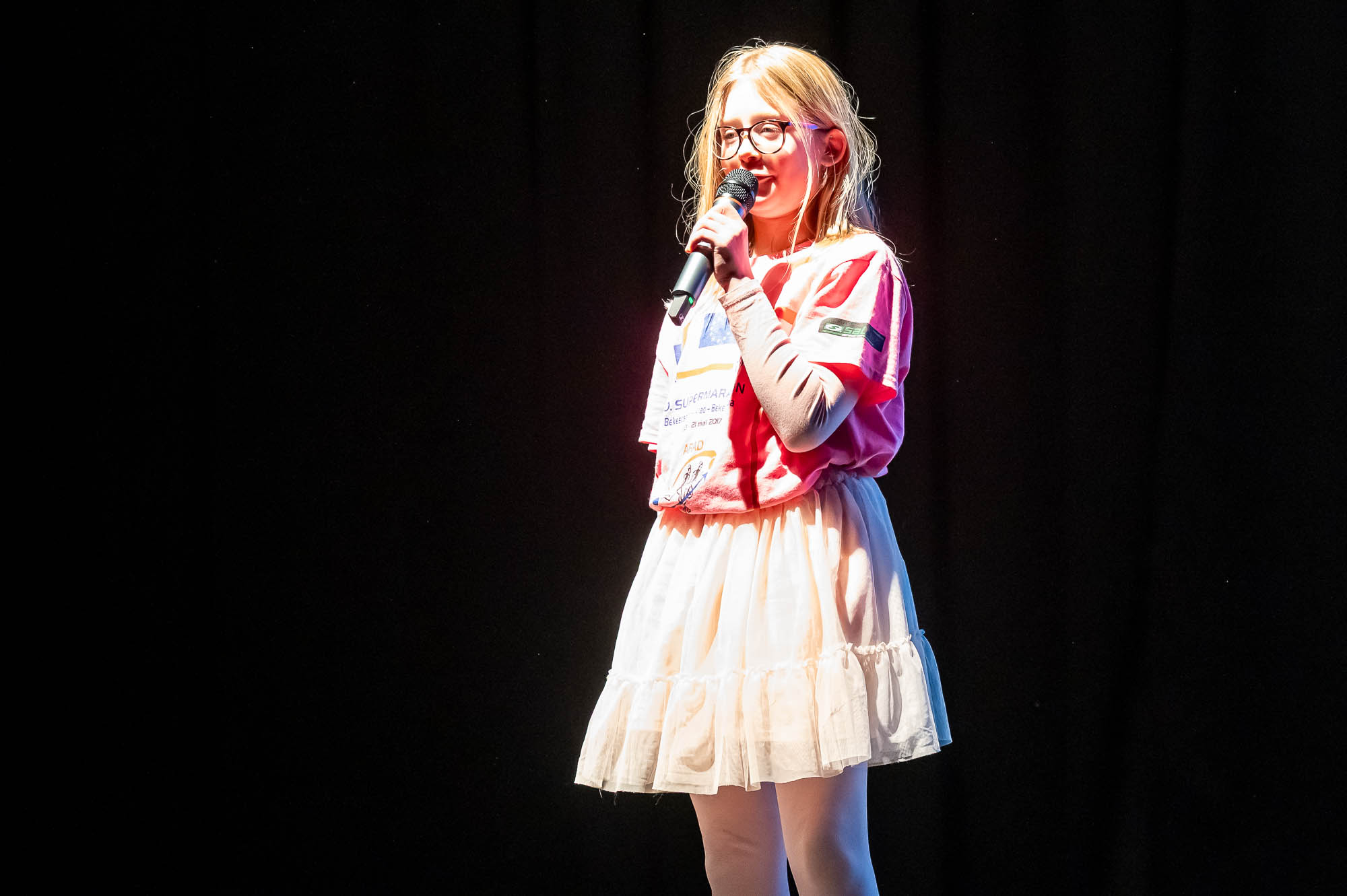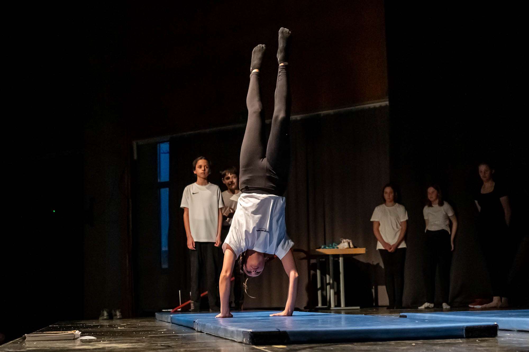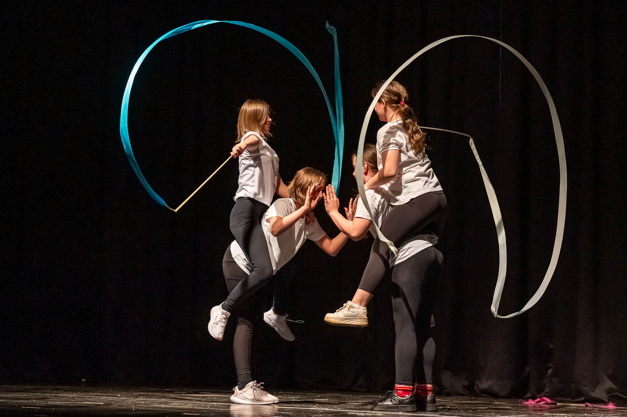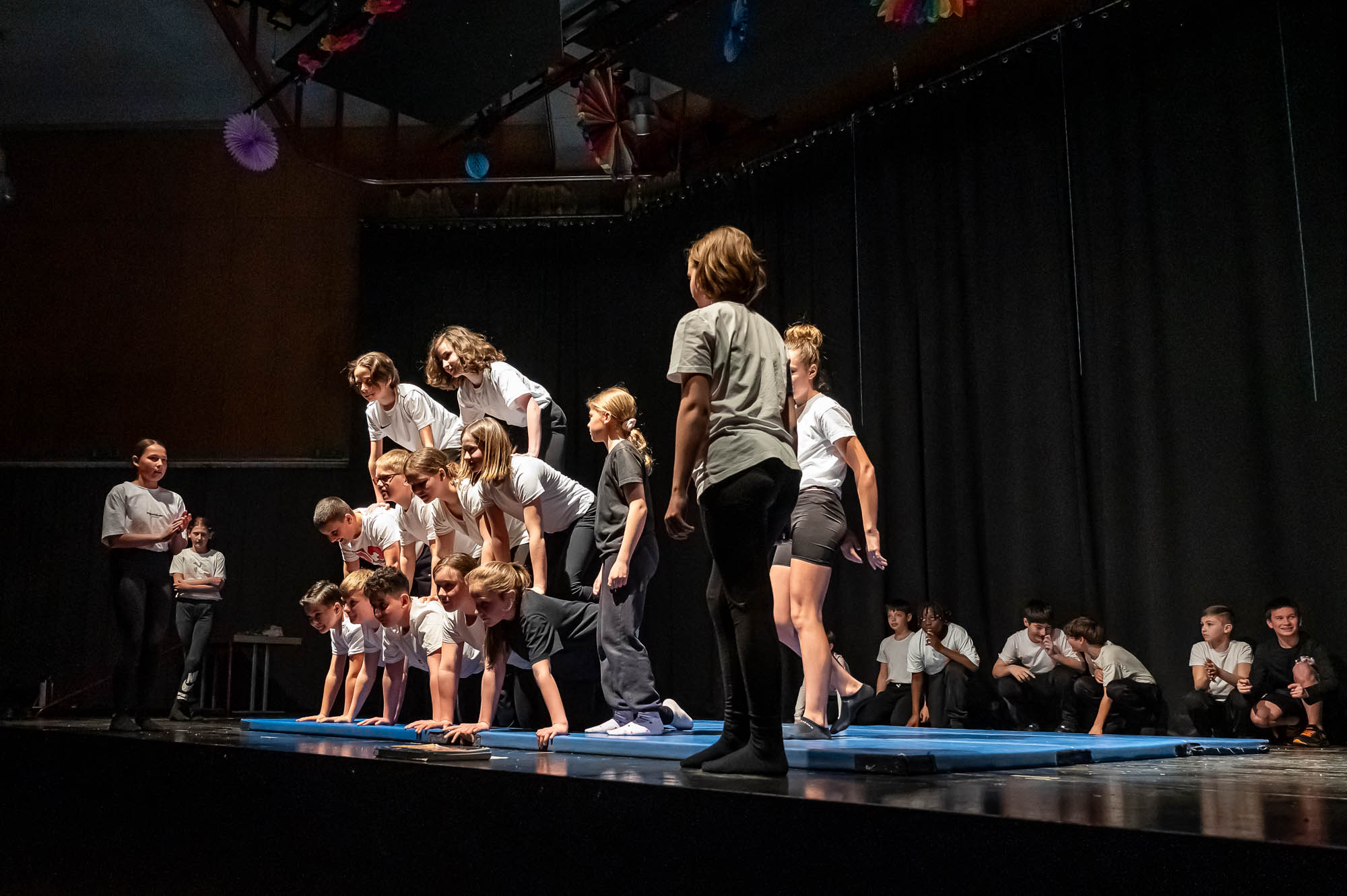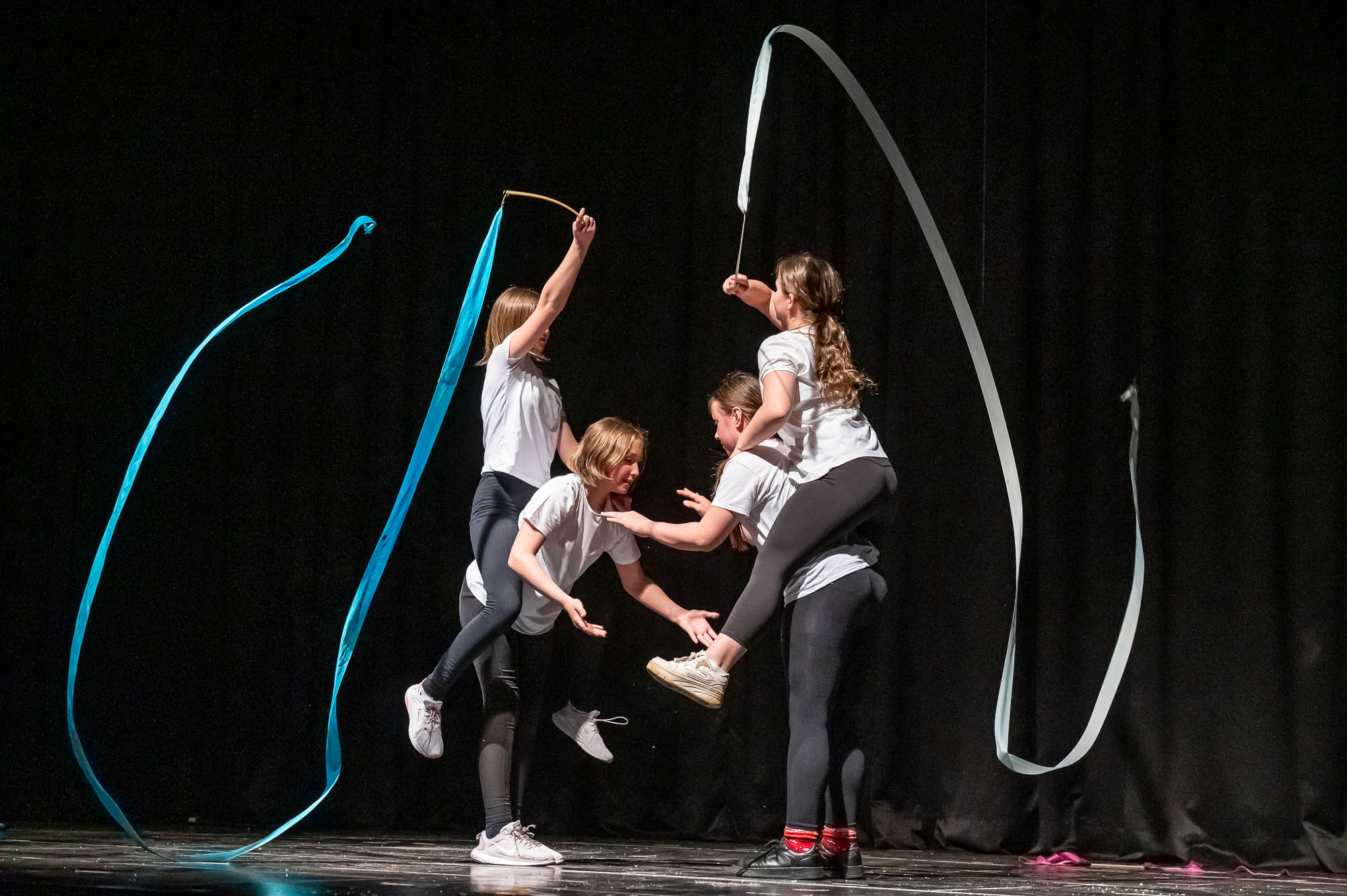 Sportlich bis regelrecht artistisch wurde es zum Abschluss mit den „Sportskanonen“ der Klasse 5.6: Mit bunten Lichteffekten und teils wagemutigen Vorführungen brachten diese Fünftklässer nochmal richtig Action in das Pädagogische Zentrum. Die Begeisterung im Publikum war natürlich groß. Hier saßen im vollbesetzten Zuschauerraum nicht nur die fünften Klassen, die sich die Vorführungen ihres Jahrganges ansehen, sondern auch Eltern, Großeltern und Geschwister. Ausserdem Lehrerinnen und Lehrer, die nicht nur erleichtert über den reibungslosen Ablauf waren, sondern sichtlich stolz auf ihre Schützlinge.