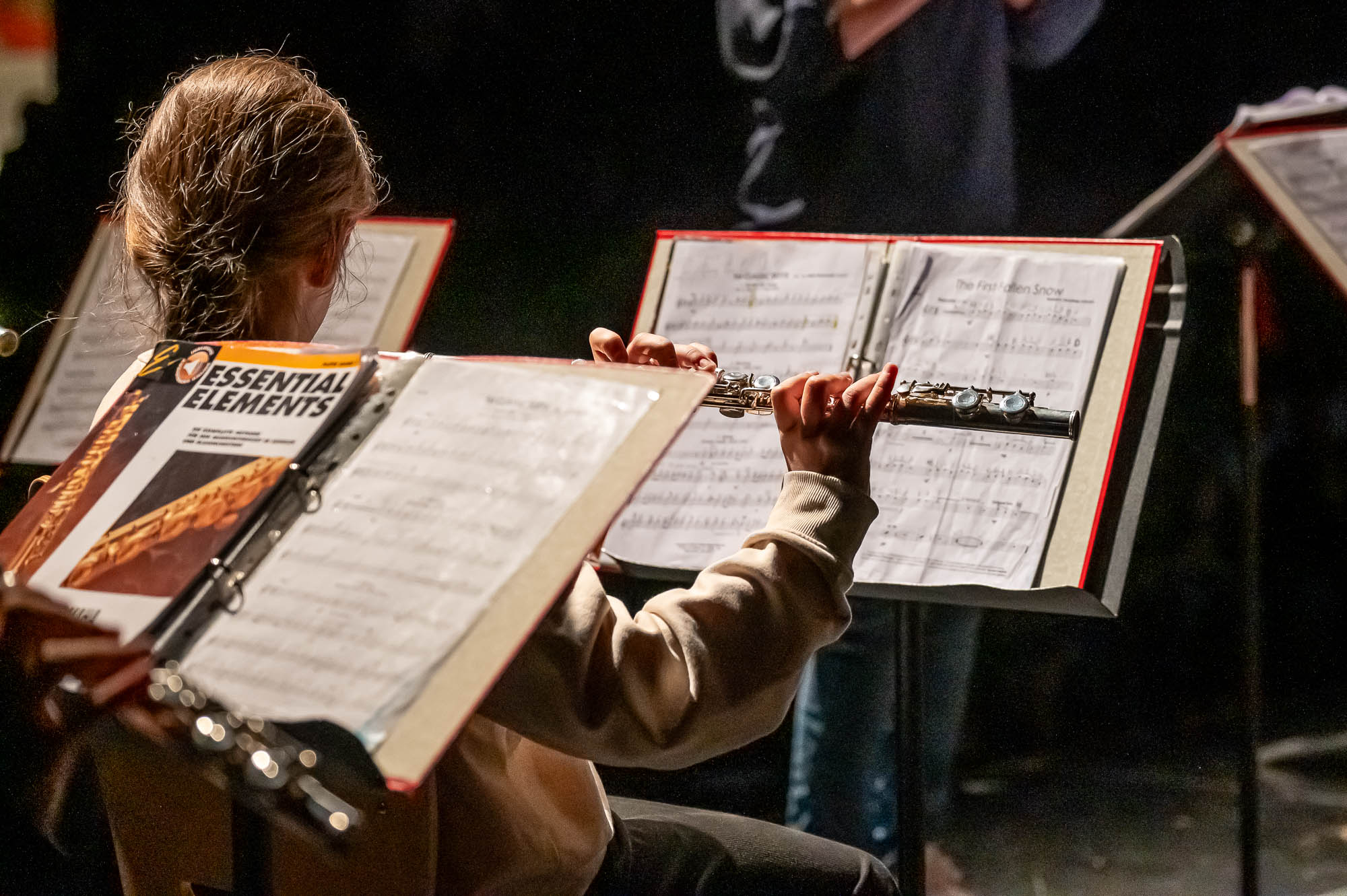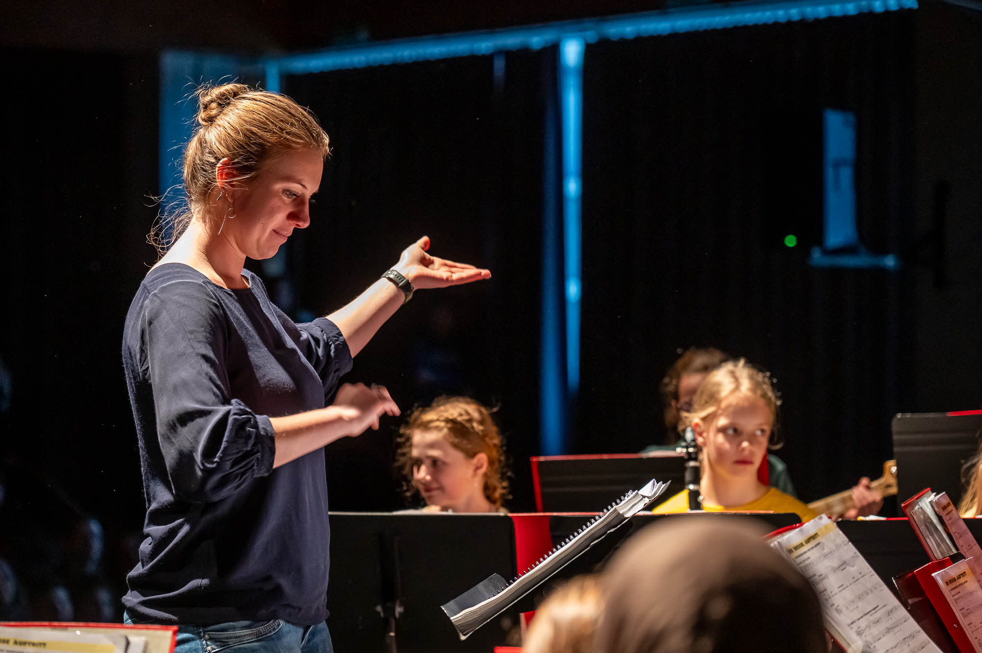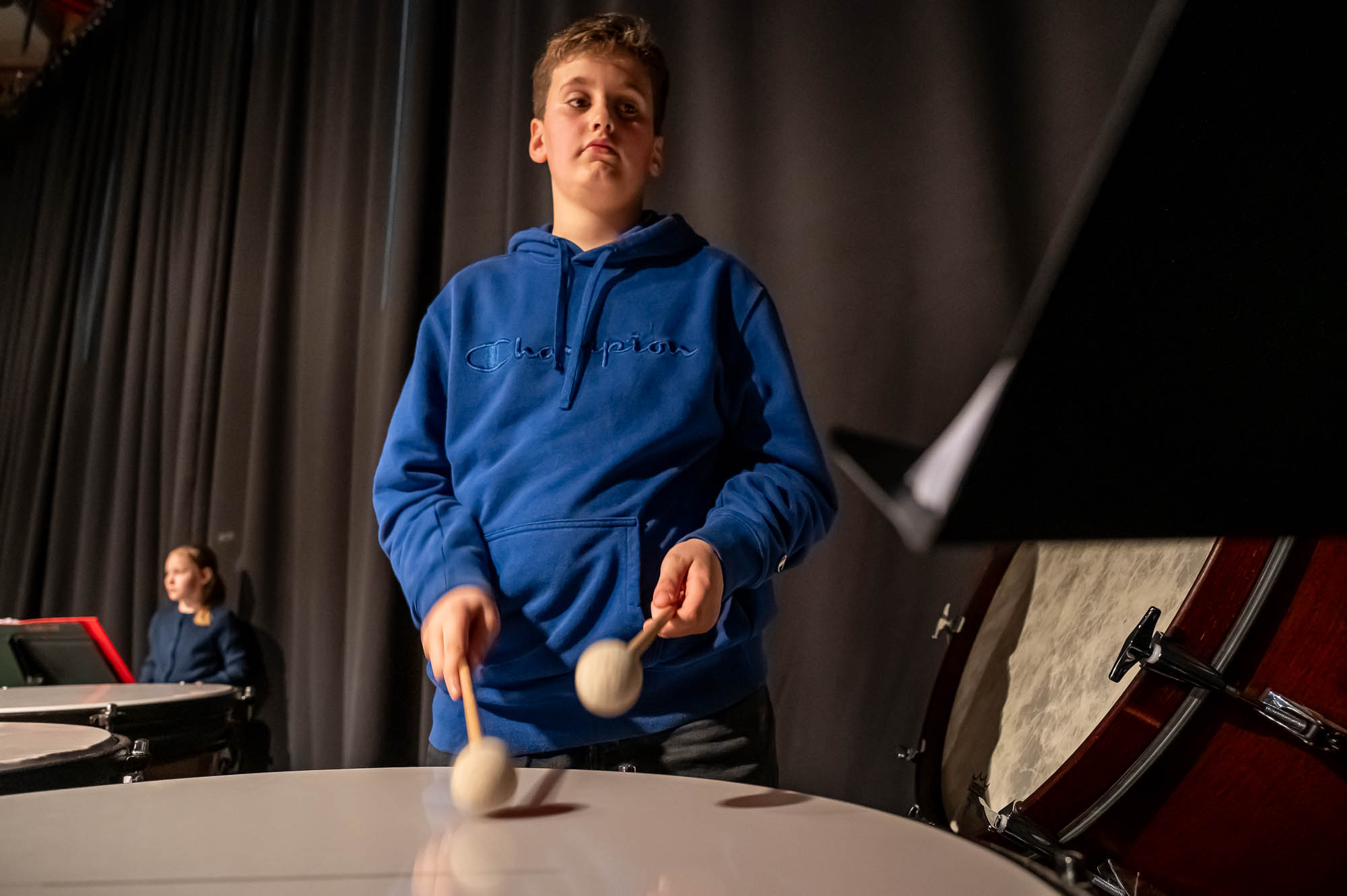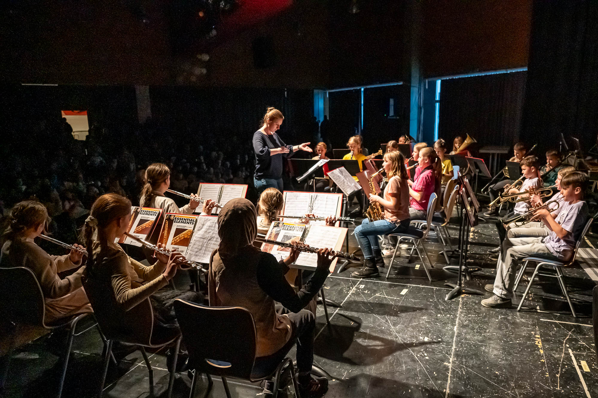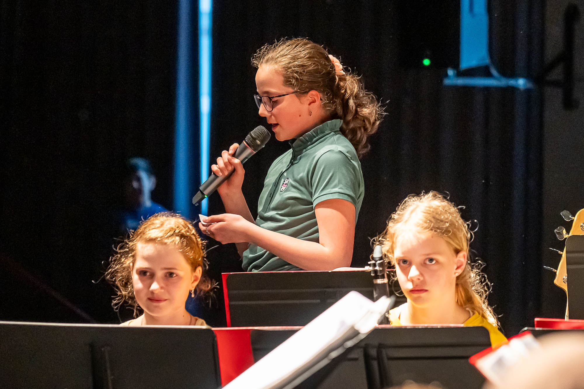 Auch wenn das Repertoire natürlich variiert: Den Auftakt eines Schwerpunktabends macht stets eine Bläserklasse.. So war es mit der 5.3. auch diesmal, und manche Titel sind auch immer mal wieder mit dabei: “Diesmal wecken wir Bruder Jakob mit unseren Instrumenten”, kündigt eine Schülerin an. Später stand auch mal Vivaldi auf dem Plan, mit Musik, die eigentlich für die Violine gedacht ist, aber auch mit Bläsern harmoniert. Währenddessen war auch noch eine weitere Bläserklasse aktiv: Schülerinnen und Schüler der 9.3 haben in der Mensa Obst, Waffeln und Getränke verkauft. Nicht nur zur Freude der Gäste, die dadurch gut versorgt waren, sondern um den Erlös den Menschen, teils Mitschüler, die bei dem verheerenden Wohnhausbrand am Nocken Hab und Gut verloren haben. Auch nach der Veranstaltung wurden Spenden gesammelt, die Gesamtschule konnte bei den verschiedenen Spendenaktionen stattliche Beträge einnehmen.