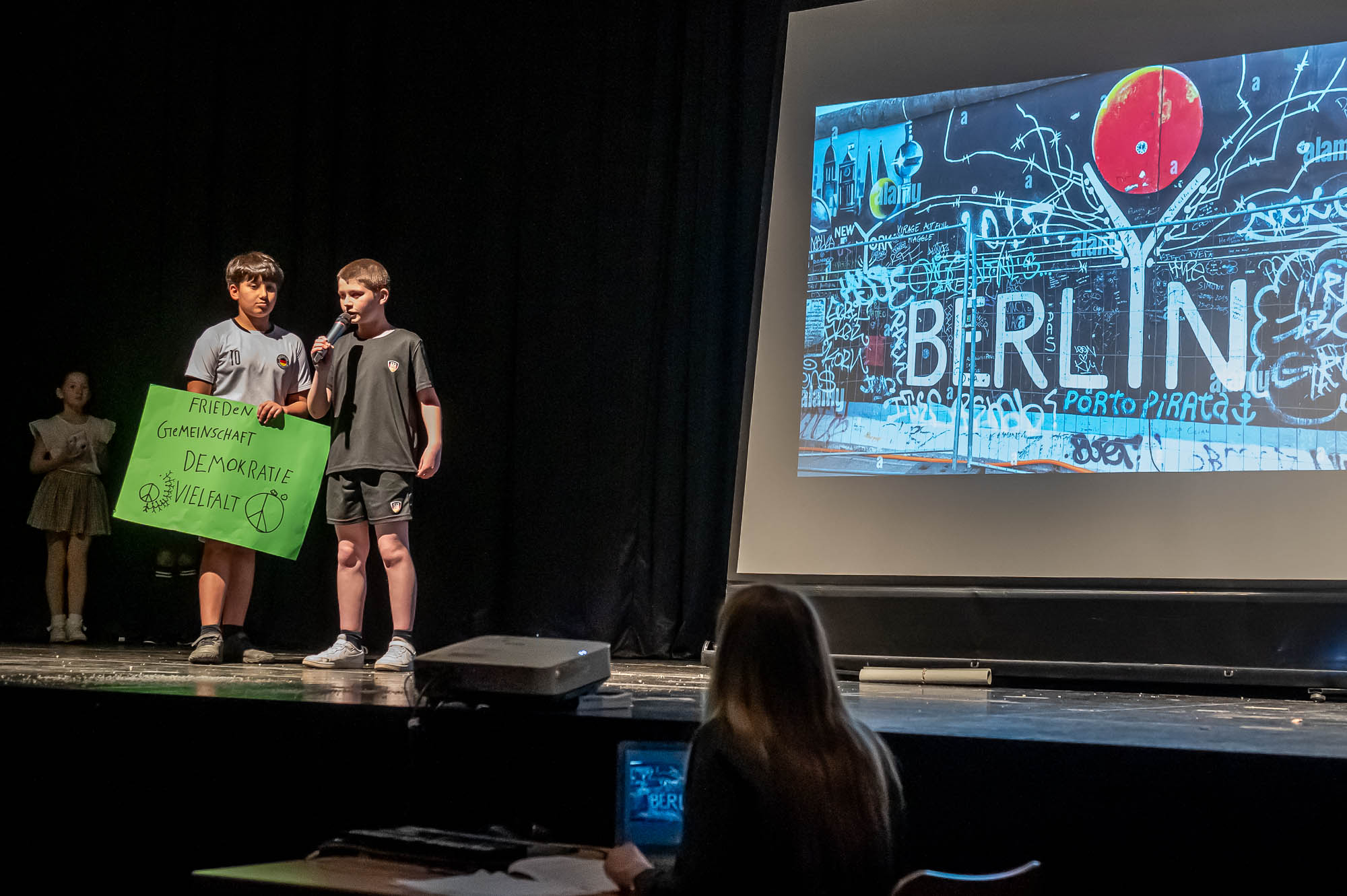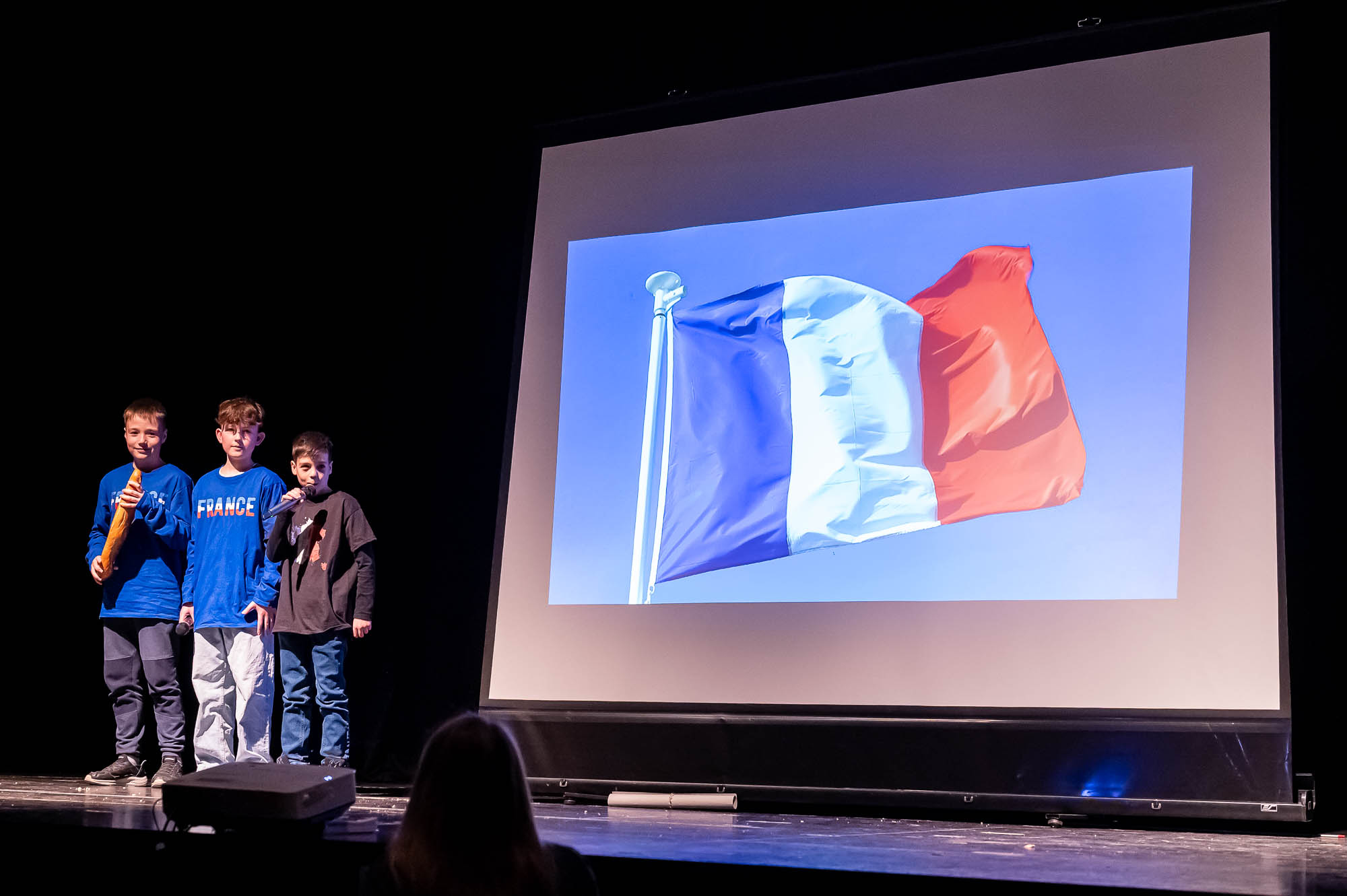 Nicht ganz neu ist die Idee, die multilinguale Europaklasse 5.4 mit einem Theaterstück zu präsentieren. Inhaltlich lassen sich Lehrer und Schüler aber immer wieder eine andere Geschichte einfallen. Diesmal trafen sich bayerische und britische Touristen zufällig auf dem Schulhof der GSKi, obwohl sie eigentlich die Margarethenkirche suchten. Die haben sie am Ende natürlich auch gefunden, und das Publikum erfuhr “beiläufig”, dass zum Kontinent Europa 49 Länder gehören, von denen 27 der Europäischen Union gehören. Und dass in Frankreich jährlich rund 6 Milliarden Baguette gebacken und gegessen werden!