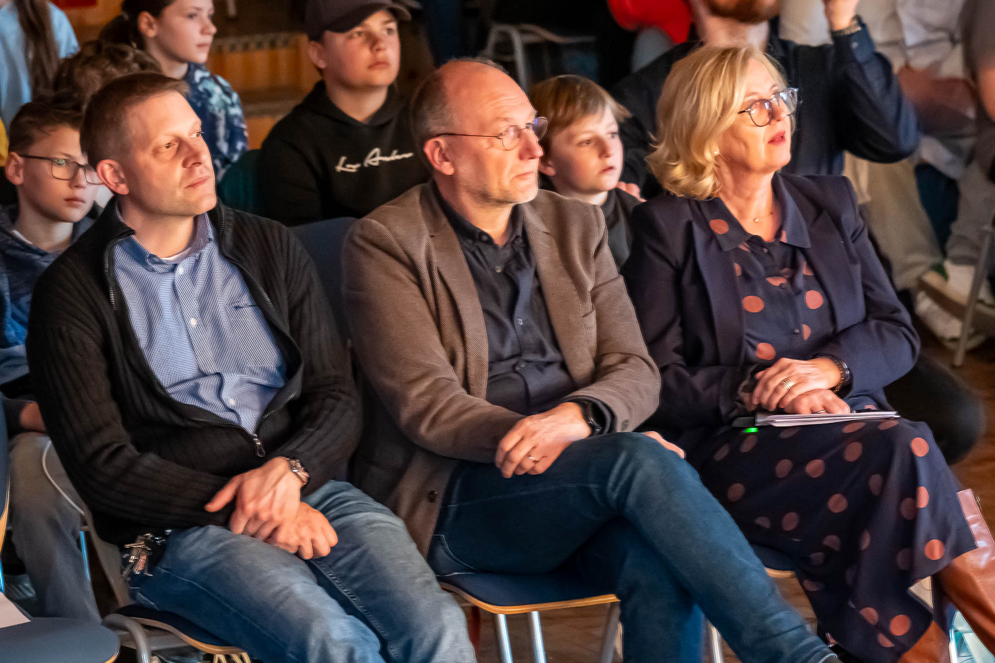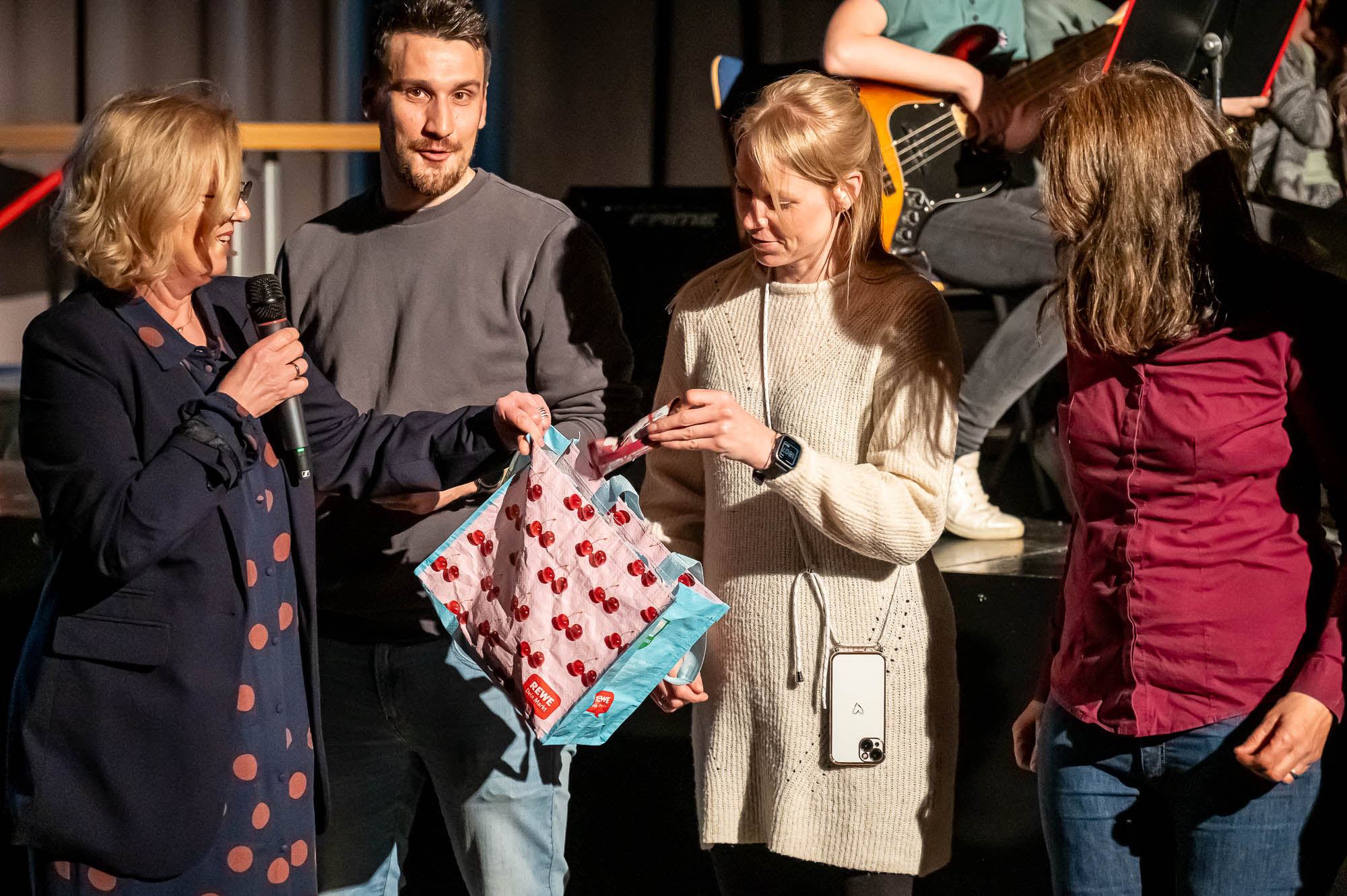 Auch Astrid Hettesheimer und Schulleiter Johannes Heintges waren begeistert: „Ihr wart die Stars des Abends“, lobte Heintges die Schüler, und wies auch nochmal auf das Engagement der Bläserklasse 9.3. hin. So motivierte er manchen, sich für den Heimweg noch mit Obst einzudecken: „Ihr dürft auch gerne etwas mehr bezahlen als im Supermarkt“, so der Schulleiter, der sich tief betroffen zeigte, dass der Wohnhausbrand am 21. März elf aktuelle und sogar 16 ehemalige Schüler getroffen hat. „Alle Schülerinnen und Schüler der GSKi sind eine große Familie“, so Heintges. Und die hat mit den Fünftklässlern großen Zuwachs bekommen: „Das war der erste Schwerpunktabend für Euch, und Ihr seid voll bei uns angekommen“, resümierte der Schulleiter die Veranstaltung.