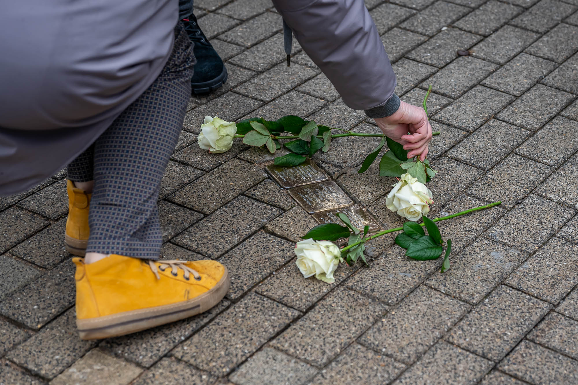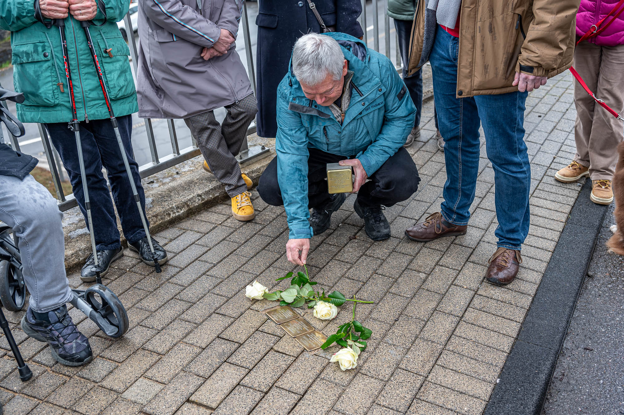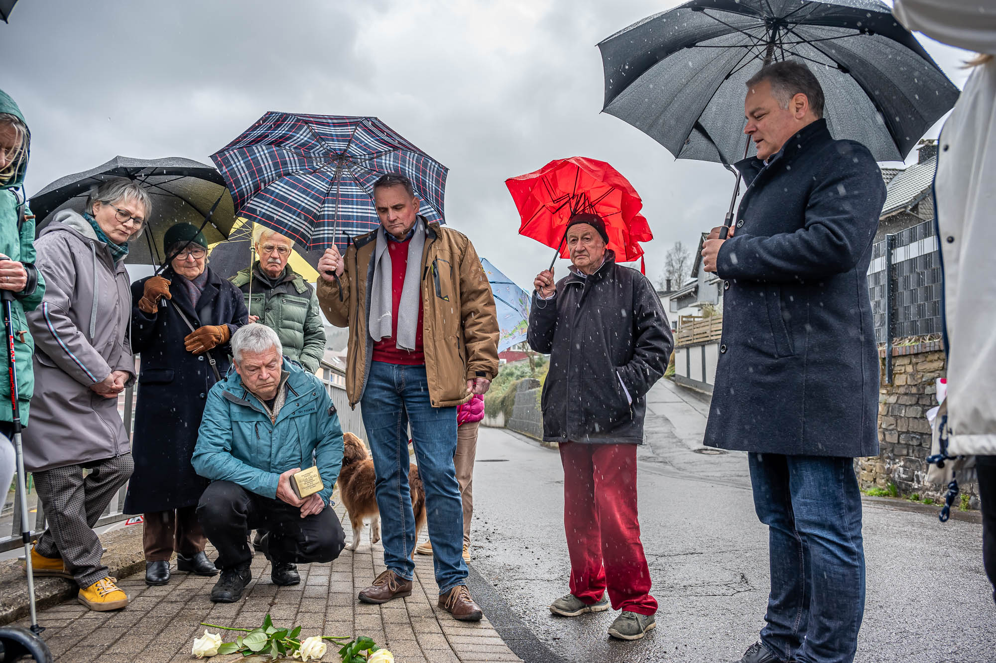 So konnten am vergangenen Mittwoch, 27. März, alle drei Stolpersteine wieder eingesetzt werden. Fast an derselben Stelle, nun aber wesentlich diebstahlsicherer, wie Bürgermeister Olaf Stelse im Rahmen einer kleinen Gedenkveranstaltung am Dienstag, 2. April, erklärte. Dazu hatten Christina und Dietmar Först von der Initiative “Stolpersteine Meinerzhagen” geladen, die im Jahre 2017 auch die Mahnmale für Erich Heß, seine Mutter Bertha Rachel und ihren Mann Heinrich Rachel einsetzen ließ. Der gestohlene Stolperstein war der, der an Bertha Rachel erinnert. Die Tat machte im Februar fassungslos, und konnte nun eher zufällig aufgeklärt werden.