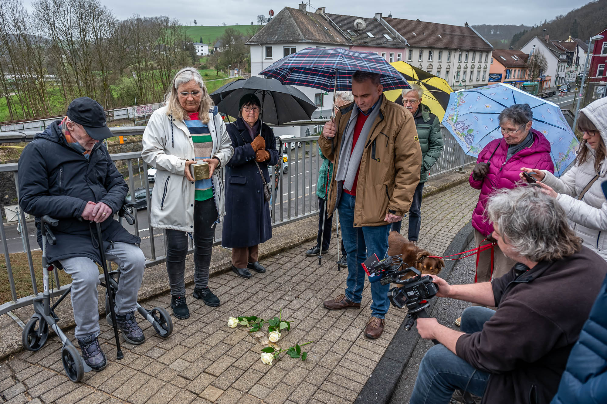 Daher war es auch kein Problem, den Ersatz zu finanzieren: “Wir haben ganz schnell ausreichende Spenden von Privatleuten zusammenbekommen”, war von Christina Först zu erfahren. Dass die von der Stadt Kierspe ausgelobte Belohnung für Hinweise zur Wiederbeschaffung des gestohlenen Stolpersteins nicht ausbezahlt werden braucht, dürfte auch nicht weiter ins Gewicht fallen, hat allerdings einen bitterem Beigeschmack: “Vermutlich müssen wir das Geld noch im Laufe des Jahres im Zusammenhang mit anderen Straftaten ausgeben”, befürchtet Bürgermeister Stelse.