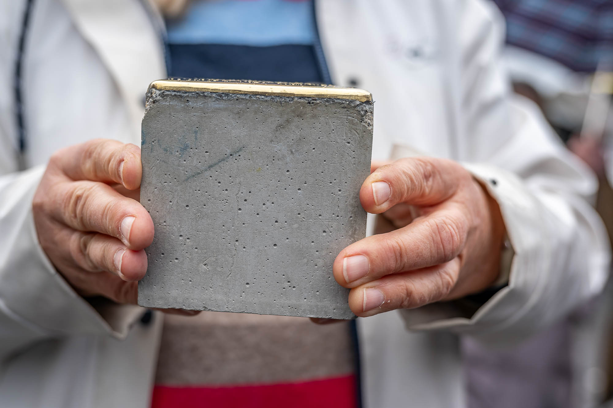 Darüber ist man aber keineswegs unglücklich, denn der neue Gedenkstein soll nun als Anschauungsobjekt beispielsweise in Schulen dienen, während der Originale wieder eingesetzt worden ist. Im Rahmen der kleinen Andacht nutzte Christina Först den neuen Stein, um einigen Vorurteilen zu begegnen: “Der Stein kostet gerade einmal 120 Euro, und zwar inklusive Beschriftung und Verlegung”, klärt Först auf. Und dabei spiele der Marktwert nur eine völlig untergeordnete Rolle. Diebstahl lohne daher überhaupt nicht. Wie beim neuen Exemplar zu sehen ist, besteht der Stein im wesentlichen aus Beton, der Messinganteil besteht nur aus einer dünnen Platte.