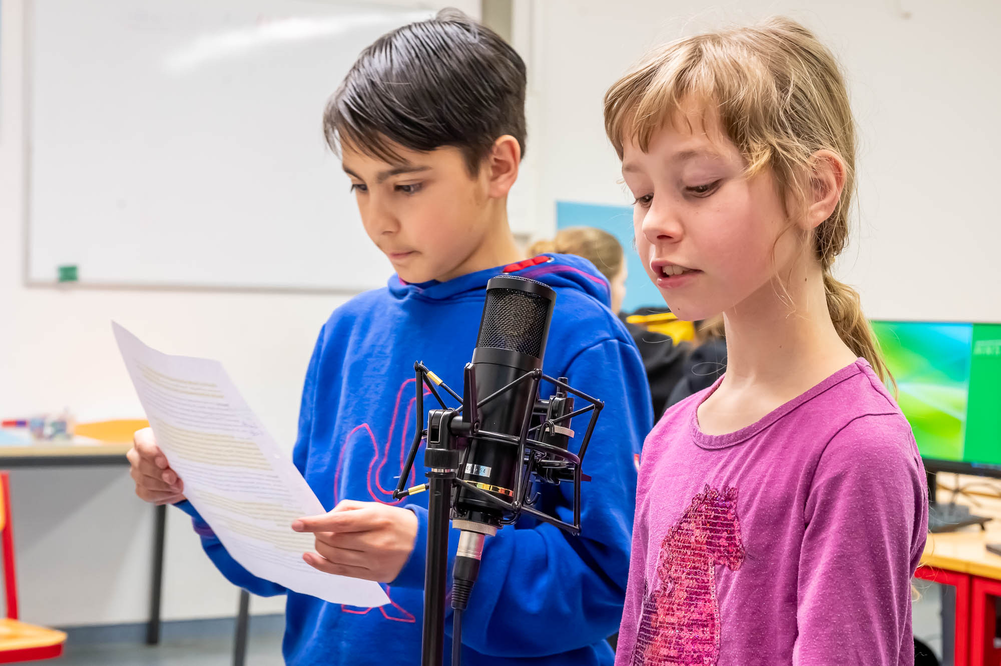 Nachwuchs-Journalisten am Mikrofon. © Markus Klümper