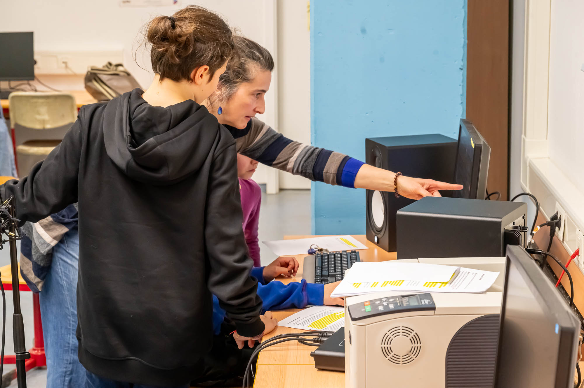 In dem Computerraum wird gewuselt wie in echten Redaktionen: Texte werden eingesprochen, Berichte geschnitten. An anderen Arbeitsplätzen stecken Schüler zum “Brainstorming” die Köpfe zusammen. Das Team wirkt wie eine eingeschworene Gemeinschaft, doch GSKi-Schüler, die nun auf den Geschmack kommen, sind sehr erwünscht. Zu tun ist schließlich genug: Ein Logo ist genauso in Arbeit, wie ein Jingle. Dazu wurde bereits mal eine KI bemüht, trotzdem hat die Schulradio AG die Schulband damit beauftragt. Demnächst sollen die Podcasts sogar auf Spotify veröffentlicht werden. Themenvorschläge für spannende Reportagen dürften in der Schulradio-Redaktion daher sehr willkommen sein.
