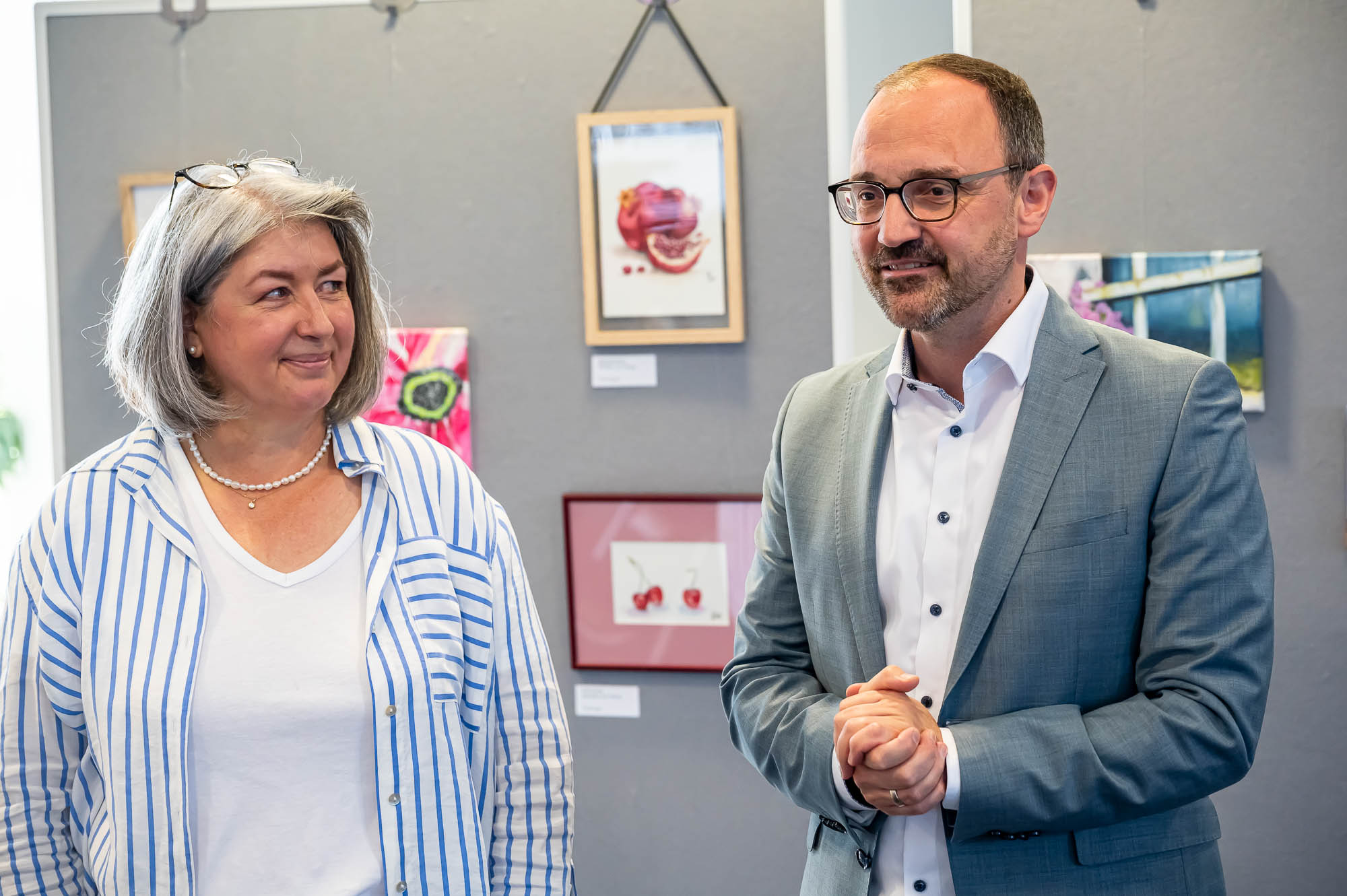 Dass zum Jubiläum nun eine Ausstellung in der Sparkasse realisiert wird, freut alle Beteiligten: “Gerne stellen wir die Räumlichkeiten dafür zur Verfügung”, erklärte Gastgeber Torsten Rath. Nicht alle der Schöpfer der 37 Bilder waren bei der Vernissage anwesend. Auch wollten viele nicht namentlich genannt werden, weshalb die Bilder zwar signiert sind, aber die Hinweisschilder mit den Beschreibungen nur den Wohnort der jeweiligen Künstler verraten. Die Gemälde selbst, die in vielen gängigen Maltechniken entstanden sind, beeindruckten die Gäste und sorgten für manchen Gesprächsstoff.
