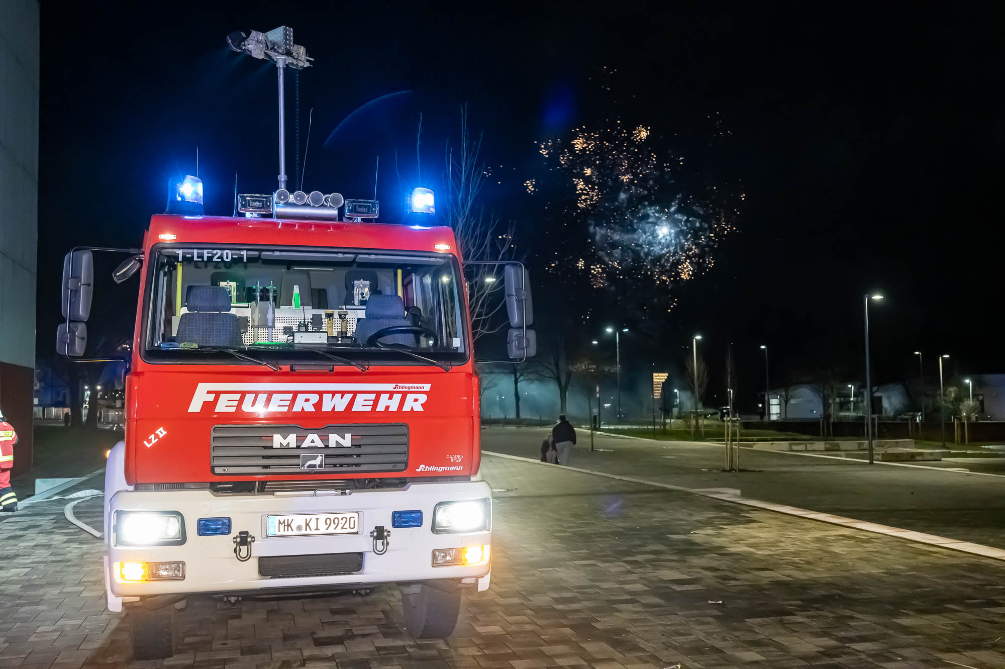 KIERSPE (mk) Um 0:35 Uhr war es vorbei mit der ruhigen Silvesternacht. Den Feuerwehren im Volmetal blieben bis dahin sogar die durch Feuerwerk immer wieder mal verursachten Kleinbrände von Mülleimern oder Hecken erspart. Der Löschzug 1 musste in voller Zugstärke zur Gesamtschule ausrücken, denn hier hatten unbekannte Täter einen Unterrichtsraum mit Molotow-Cocktails attackiert. Die Scheibe des Raumes im Erdgeschoss war schon zerbrochen, aber zu einem ernsthaften Brand kam es glücklicherweise nicht. Doch die Brandrückstände an der zerborstenen Glasscheibe zeigen eindeutig: Hier wurde mit Feuer hantiert. Warum es über das kaputte Fenster hinaus zu keinen nennenswerten Schäden kam, ist unklar.