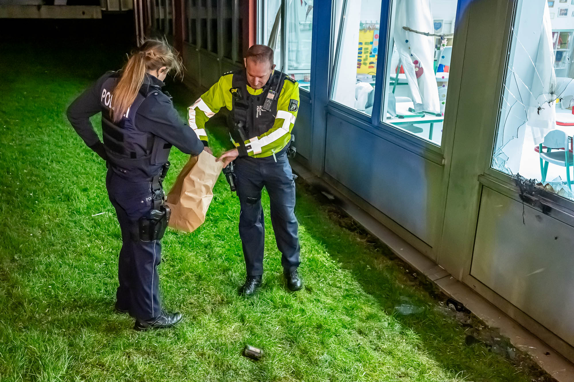 An der kriminellen Energie der Täter ändert das Ergebnis aber wenig: Nach Aussagen von Zeugen haben sich vier oder fünf Personen am Schulgebäude zu schaffen gemacht. Weder Polizei noch Feuerwehr zweifeln daran, dass hier ein Fall von versuchter, vorsätzlicher Brandstiftung vorliegt. Zuvor sind in unmittelbarer Nähe mehrere Container umgeworfen worden, mutmaßlich von denselben Tätern. In einem Papiercontainer hatte es offensichtlich bereits gebrannt, in unmittelbarer Nähe fand die Polizei weitere Molotow-Cocktails, die aber nicht verwendet worden waren.