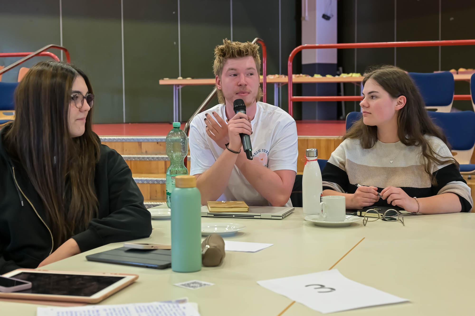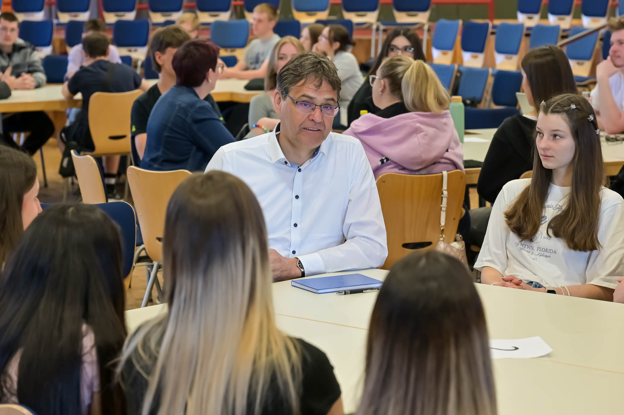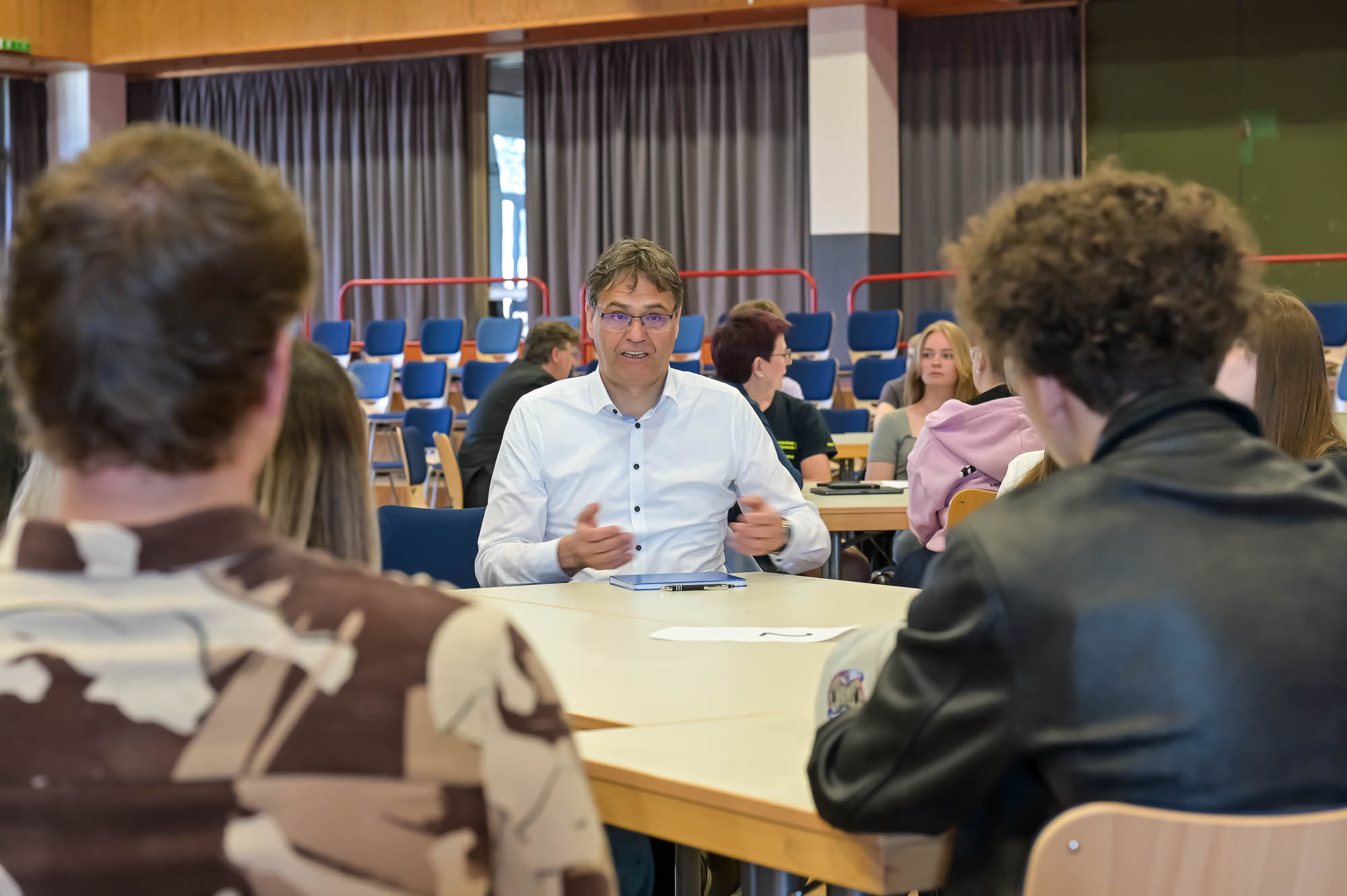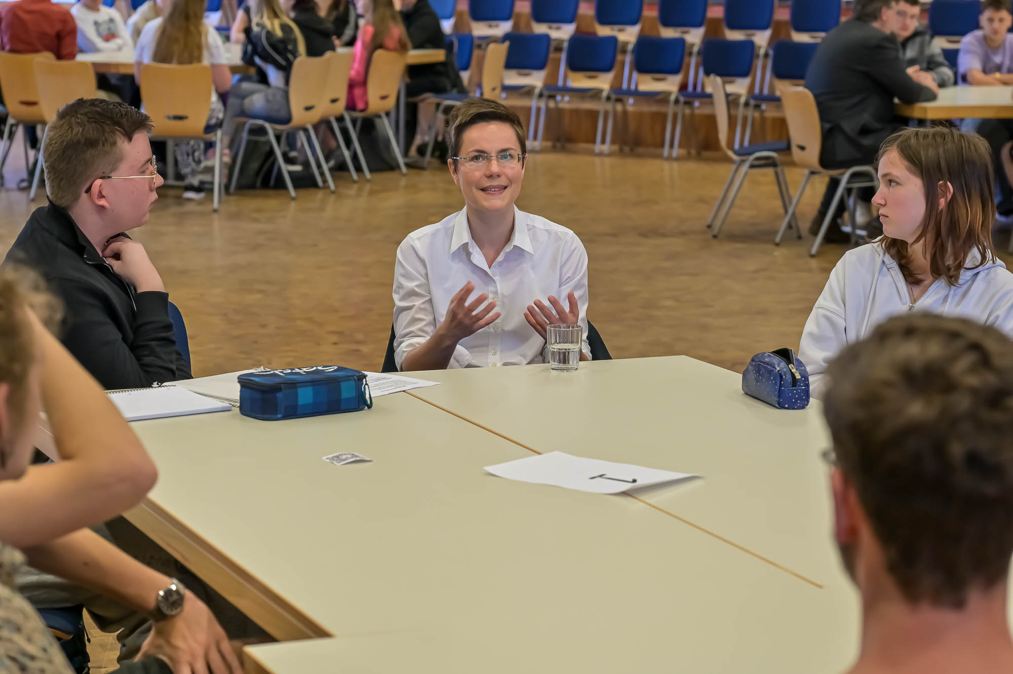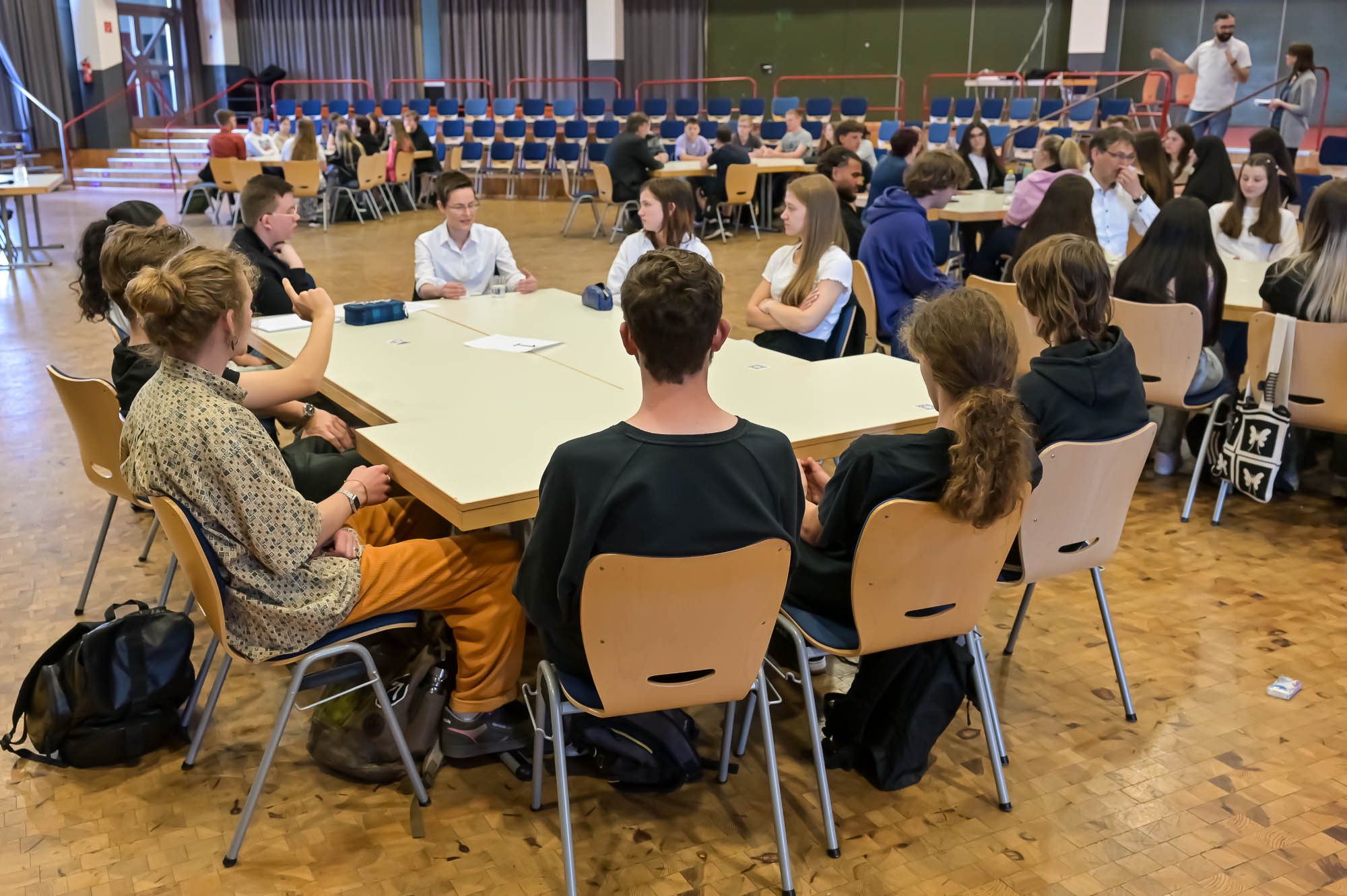 Auch die Schülerinnen und Schüler wurden im Prinzip ausgewählt: Damit die Gesprächsgruppen nicht zu groß werden, konnten maximal etwa 60 Gesamtschüler teilnehmen. Bewerben konnten sich die Jahrgänge 10 bis 12, was zum frisch herabgesetzten Mindestalter zur Wahlberechtigung von 16 Jahren passte. Letztlich wurde aber wohl niemand benachteiligt: Die Zahl der ernsthaften Interessenten und die freien Plätze hätten sich in etwa die Waage gehalten, versicherte Lehrer Dieter Wermekes.