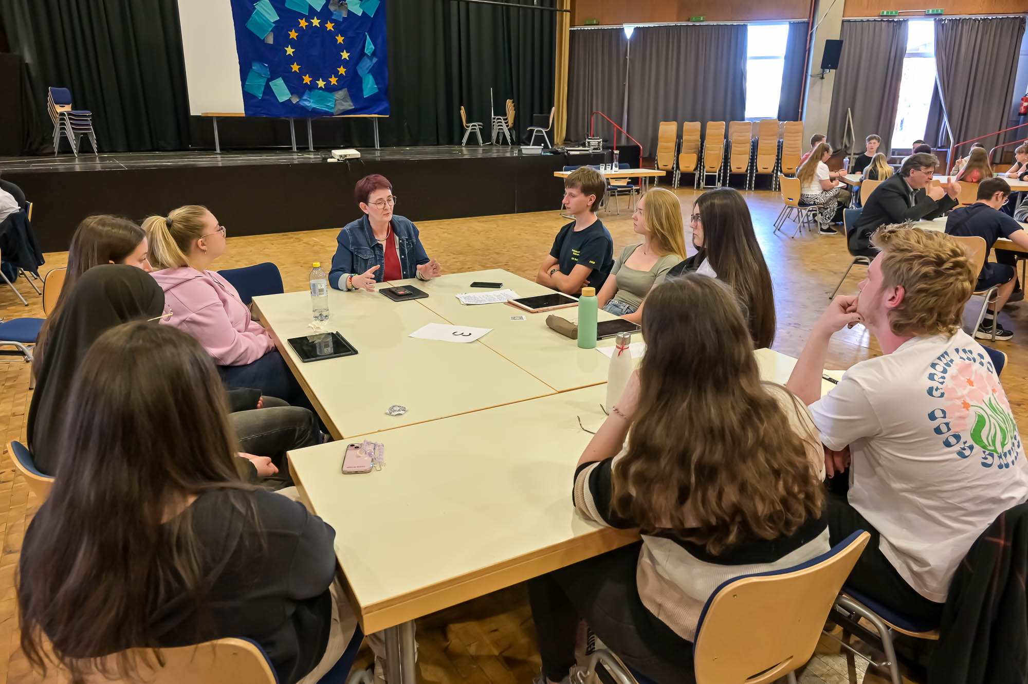 Aber auch so gab es für die Teilnehmer auf allen Seiten eine Menge Impulse und Denkanstöße, und für die Lehrer die Bestätigung, dass das “Speeddating” mit den jeweils rund 20-minütigen Gesprächsrunden genau den erwünschten Effekt erzielt hätten. Gerade in der Zeit, wo der europäische Gedanke, der Zusammenhalt und der Frieden keineswegs mehr selbstverständlich sind, ist diese Art von Meinungsaustausch und politischer Bildung wichtiger denn je. In diesem Fall wohl mit großem Erfolg.