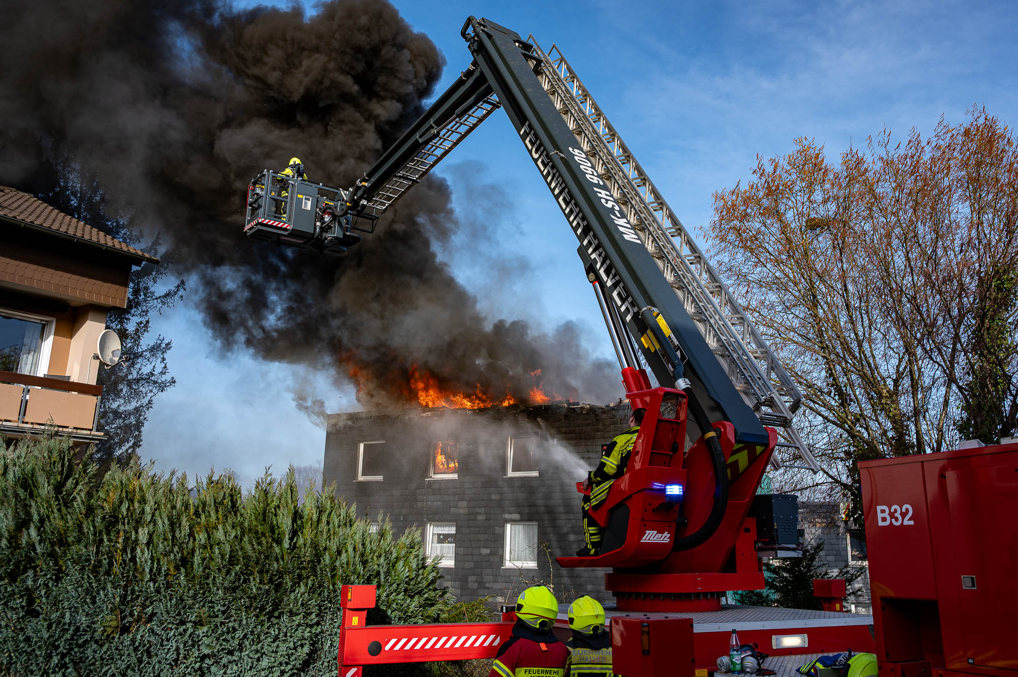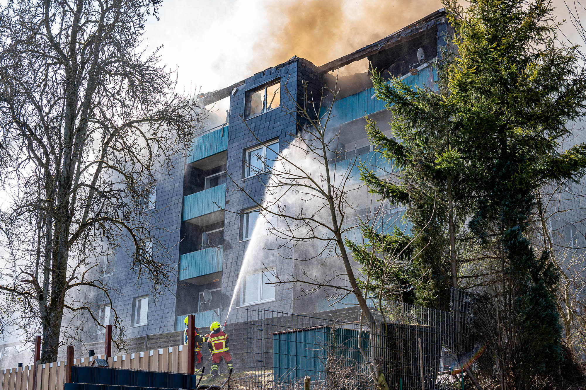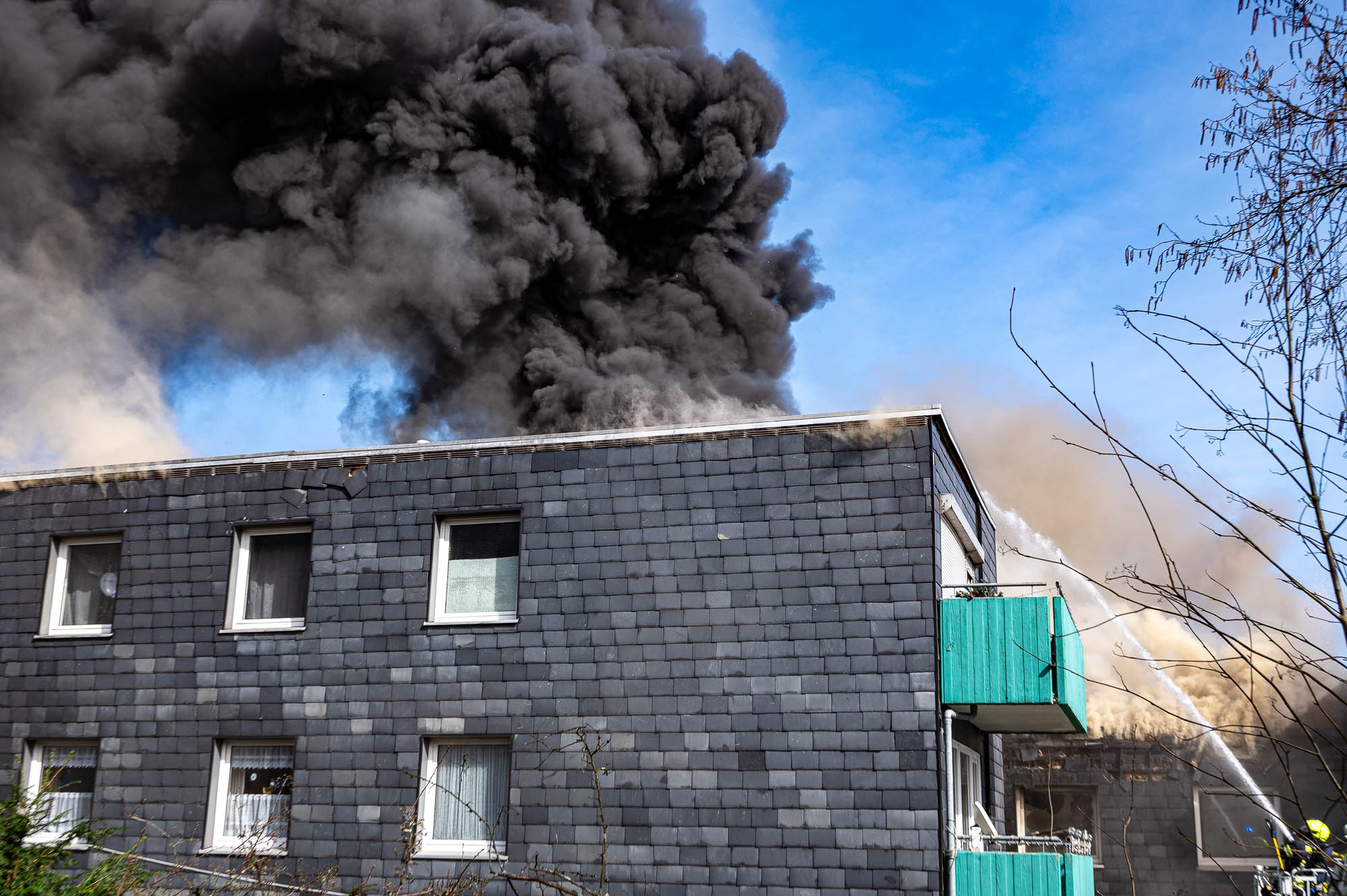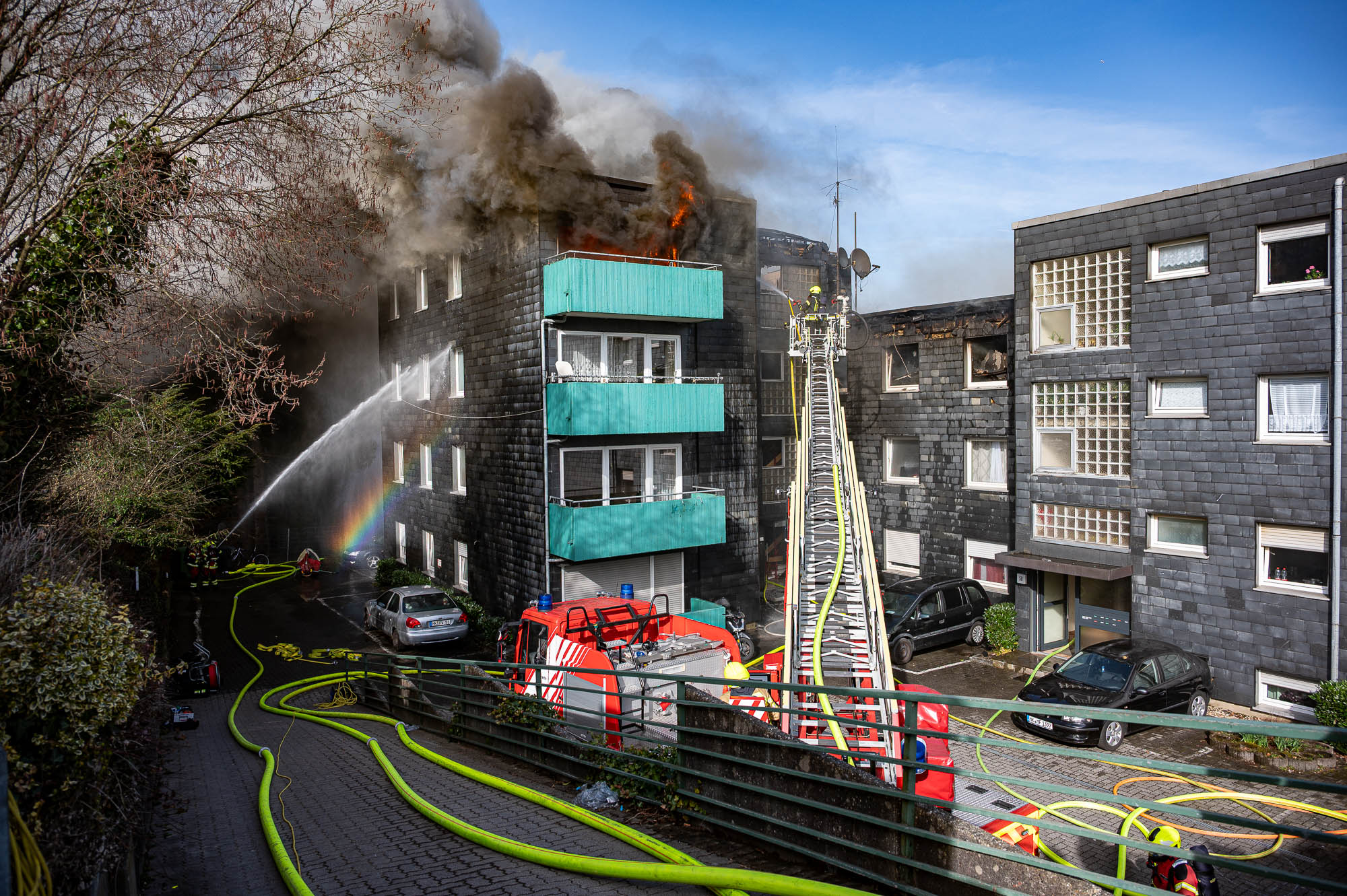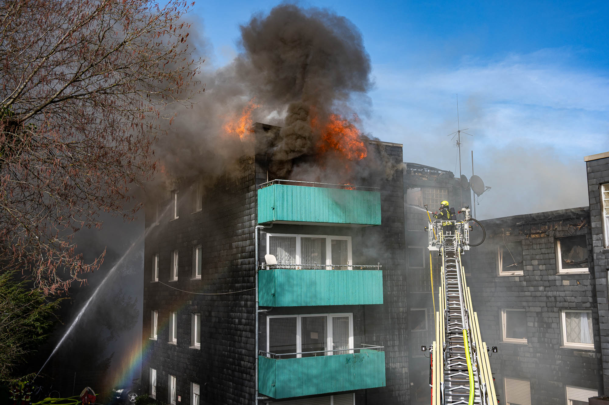 Das Feuer fraß sich vom Balkon in einen Dachgeschosswohnung, breitete sich von dort immer weiter aus. Prekär war wieder einmal die Flachdachkonstruktion, die die Feuerwehrleute vor große Herausforderungen stellte. Die Nachlöscharbeiten werden sich wohl noch mindestens bis in die Nacht erstrecken. Derweil wird in der Sporthalle am Felderhof ein Feldbettenlager errichtet, um den Betroffenen erstmal ein Dach über dem Kopf zu beschaffen. Viele stehen vor dem absoluten Nichts, nicht wenige fanden aber bereits im privaten Umfeld Unterschlupf. Das DRK Plettenberg hat die Versorgung der Einsatzkräfte übernommen.