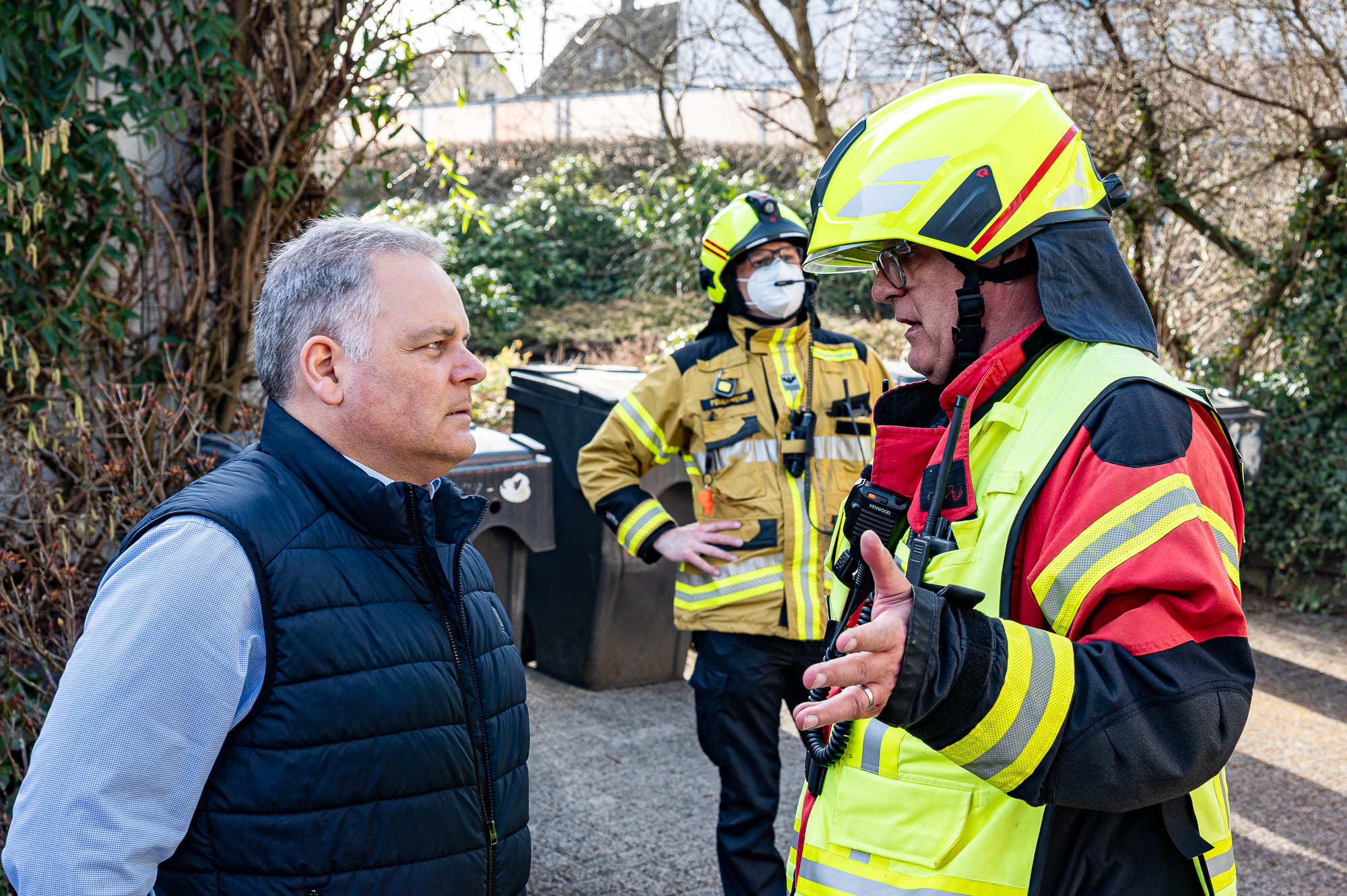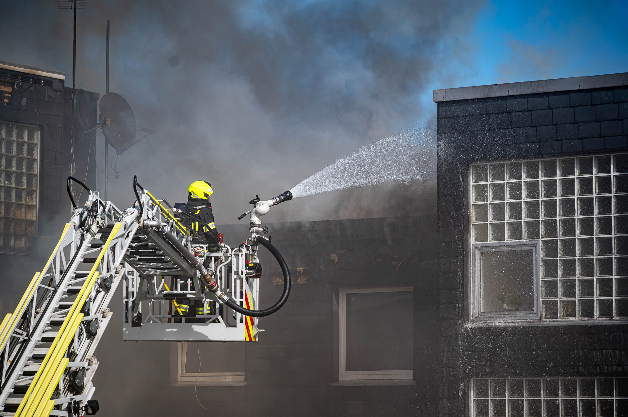 Für die Feuerwehr entwickelte sich schnell eine Mammutaufgabe. Im Laufe des Nachmittags zündete das Feuer auf der Dachetage mehrfach durch und breitete sich nochmal rasant aus. Die Flammen konnten schnell wieder eingedämmt werden, aber die Einsatzkräfte stellen sich auf umfangreiche Nachlöscharbeiten ein. Bürgermeister Olaf Stelse und ein Mitarbeiterstab des Ordnungsamtes waren vor Ort, um sich um die zahlreichen betroffenen Menschen zu kümmern. Der Schock über das Ausmaß des Unglücks war ihnen anzusehen.