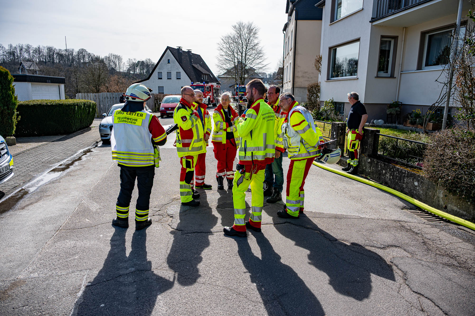 Als die Feuerwehr mit den ersten Kräften Am Nocken eintraf, standen zahlreiche Hausbewohner bereits im sicheren Freien. 40 Personen hat die Feuerwehr nach Angaben von Pressesprecher Christian Schwanke gerettet, auch zahlreiche Tiere. Vier Personen wurden verletzt, darunter auch zwei Feuerwehrleute. Bei allen Betroffenen lagen aber nur leichte Verletzungen, wie der Verdacht auf einem leichte Rauchgasvergiftung. Vorsichtshalber wurde recht früh auch mit dem Alarmstichwort “ManV5” umfangreiche medizinische Versorgung an der Einsatzstelle sichergestellt. Vor Ort waren mehrere Rettungswagen, Notärzte und leitende Köpfe aus dem Rettungswesen. Auch Kreisbrandmeister Michael Kling verschaffte sich einen Überblick an der Einsatzstelle.