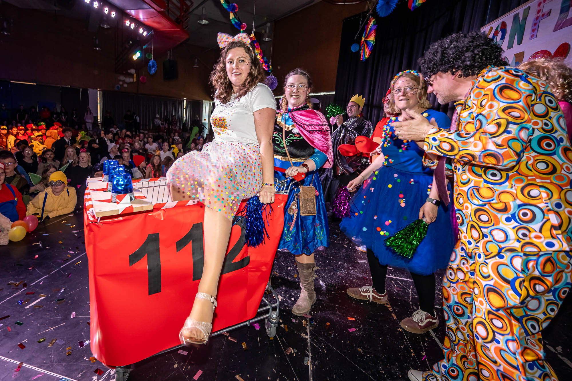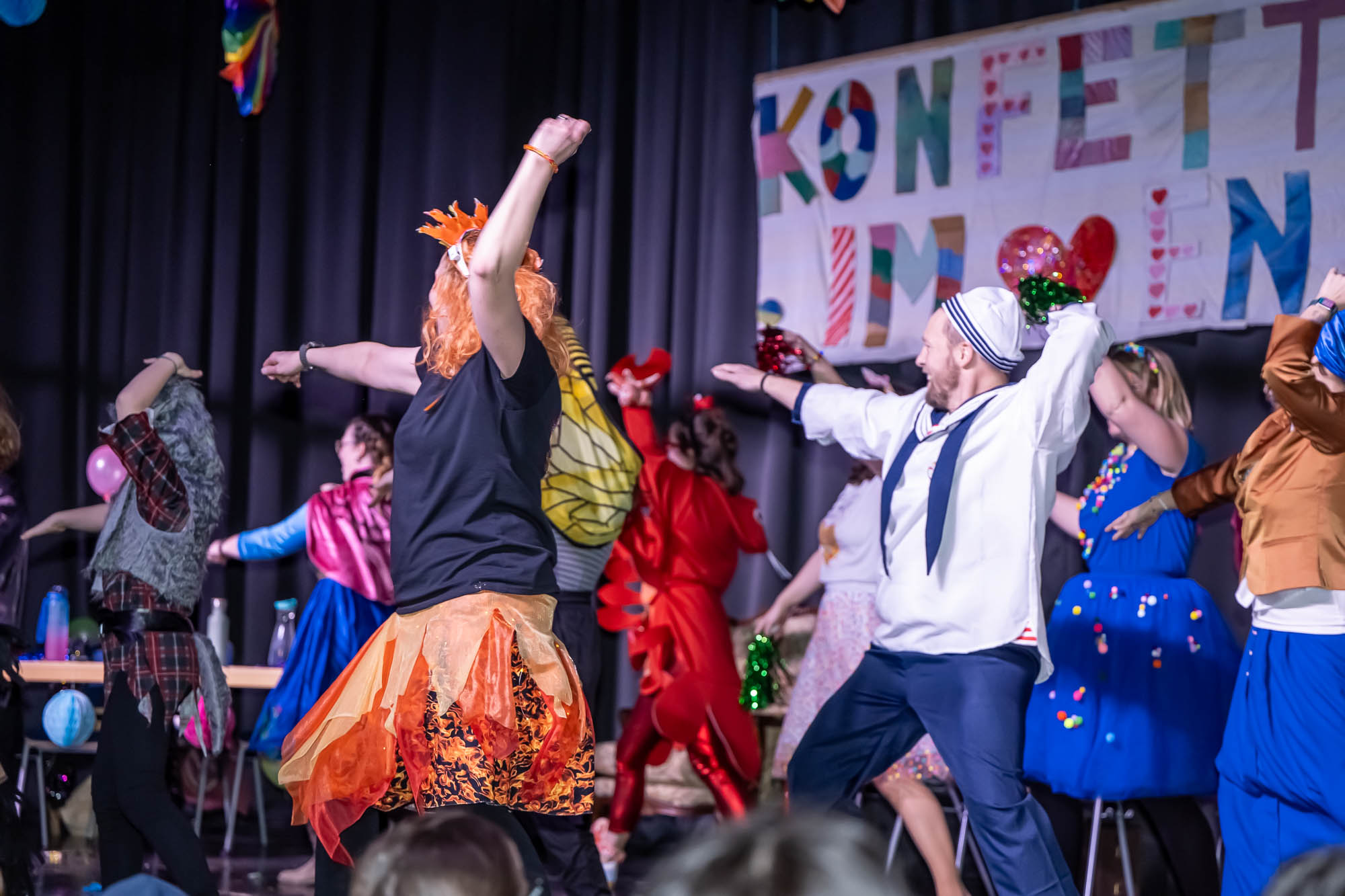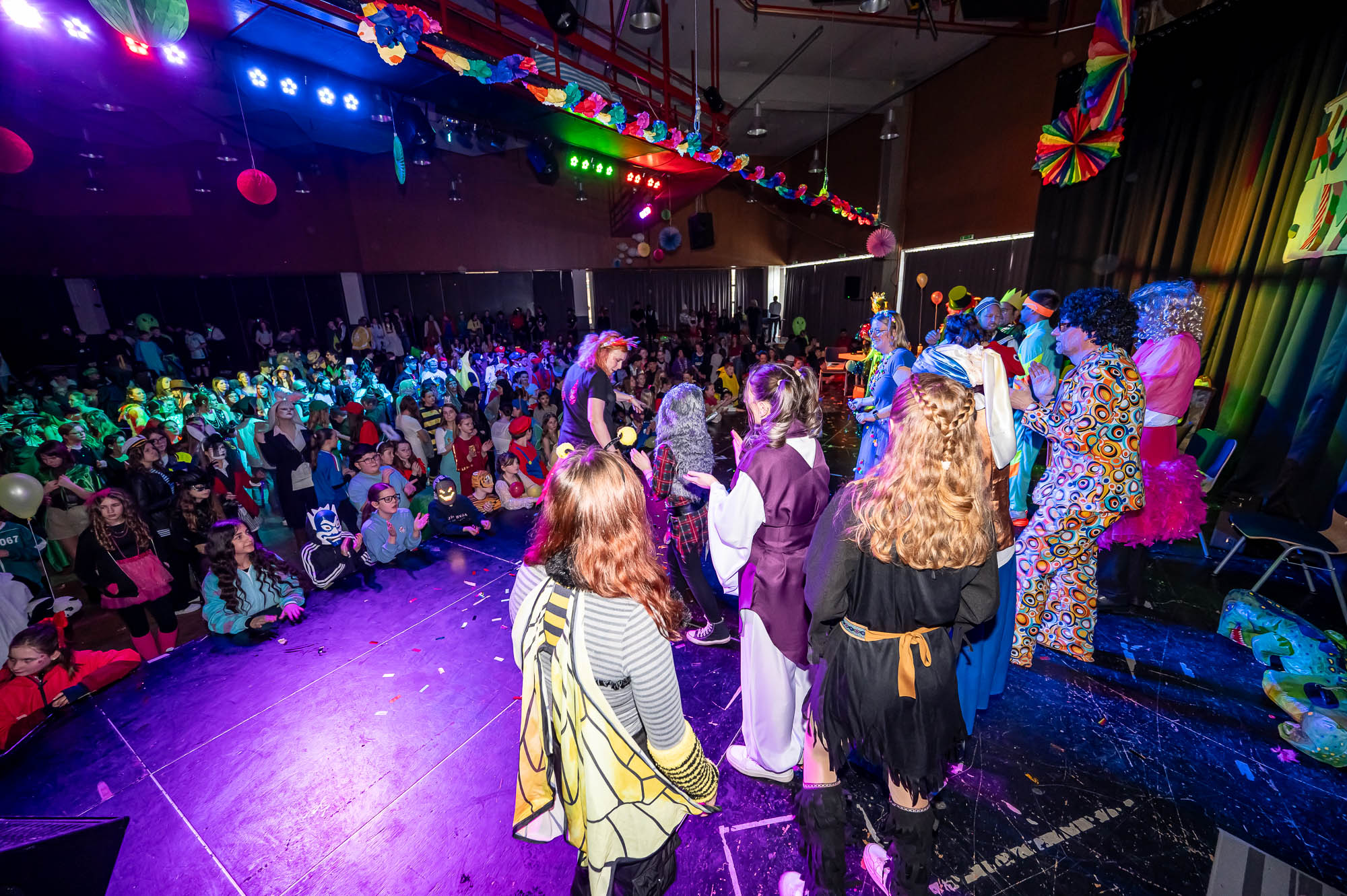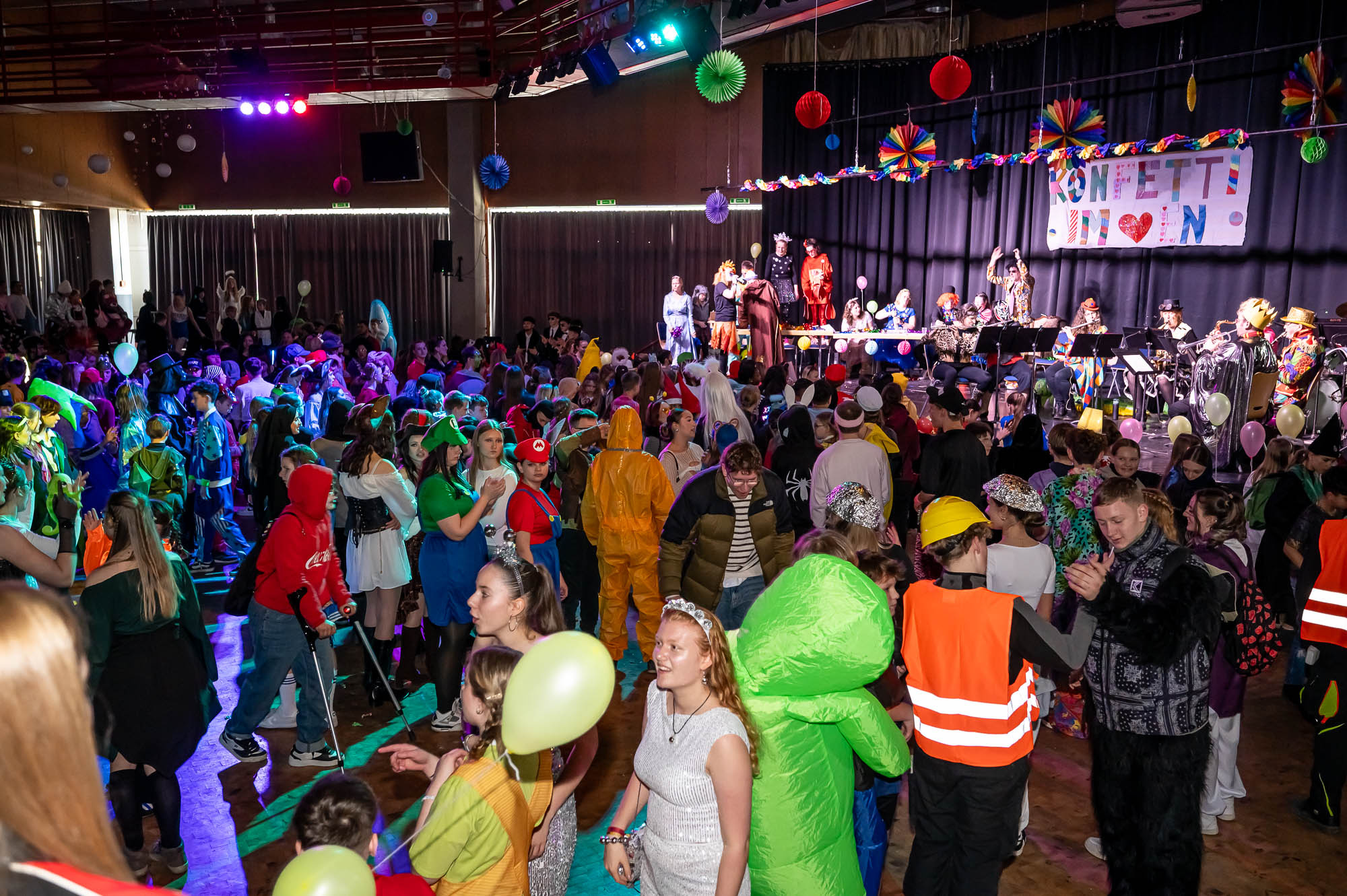 Bisher zählte das märkische Sauerland zu den weißen Flecken auf der Landkarte der Karnevalisten. Mit dieser Kostüm-Fete dürfte die Gesamtschule auch in diesem Genre für Weltoffenheit gesorgt haben. Die Schülerinnen und Schüler hatten jedenfalls dermaßen viel Gaudi, dass da vielleicht mancher seine nachhaltige Begeisterung für die Fastnacht entwickelt hat. Die Organisatoren haben jedenfalls alle Register gezogen, sogar eine Tanzgruppe wurde auf die Bühne geholt, kiloweise Kamelle flogen in die feiernde Menge. Es ist eindeutig: An der Gesamtschule haben Schüler wie Lehrer “Konfetti” im Herzen und tragen dazu bei, die Welt auch in diesen unbequemen Zeiten der Tristesse zu entreissen. Leider begann am frühen Nachmittag schon der “Aschermittwoch”, aber ausserhalb der Schule gibt es ja noch genug Möglichkeiten, kostümiert weiterzufeiern!