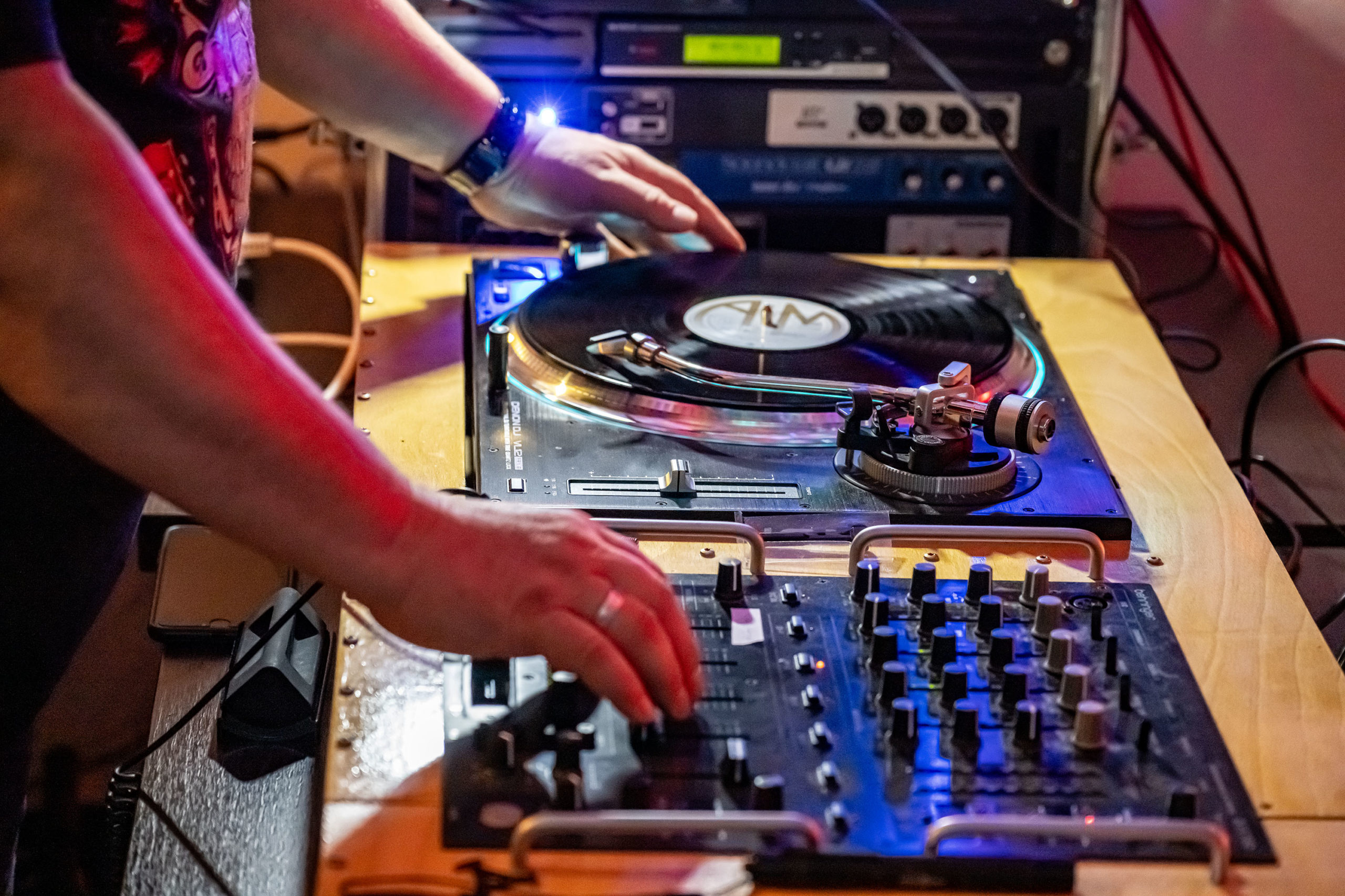 Obgleich moderne DJ-Technik den „Arbeitsplätzen“ mit den schwarzen Scheiben aus gutem Grund nachempfunden ist, war der Charme des Analogen spürbar. Dazu trugen natürlich auch die kleinen Knackser bei, wenn der Abtaster mal wieder über ein Staubkorn unter dem Kiel holperte.