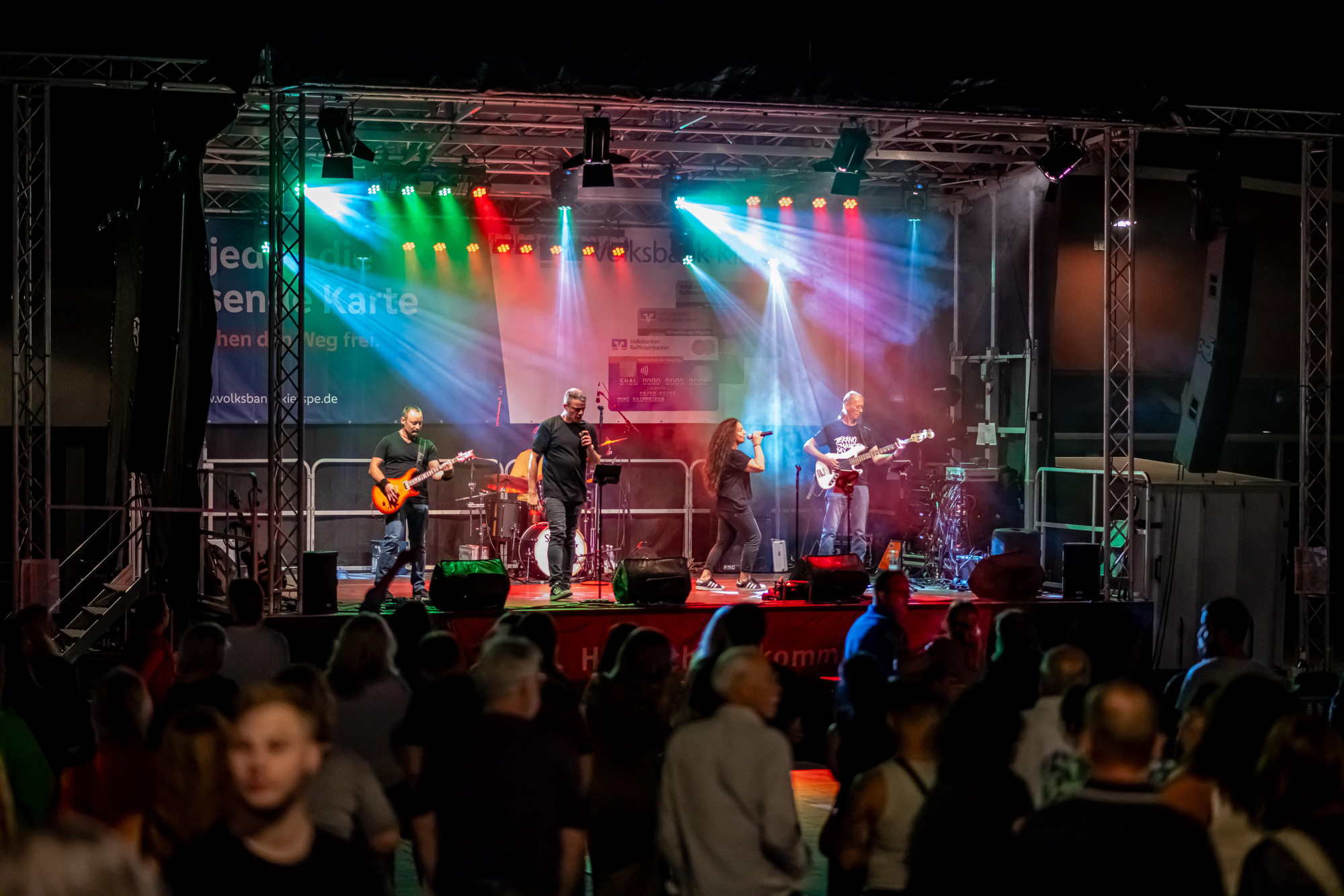 Update Dienstag, 10.September: Das 20. Kiersper Stadtfest ist nun Geschichte — aber eine Erfolgsgeschichte! An zwei Tagen war auf dem Forum vor der Gesamtschule eine Menge los, das große Programm wurde von den Menschen (nicht nur) aus Kierspe angenommen. Bereits bei der Eröffnung am frühen Samstagnachmittag füllte sich der Platz, als Bürgermeister Olaf Stelse seine kurze Begrüßungsrede hielt. Das offensichtlich gute Konzept des Stadtfestes kam bei dem herrlichen Sommerwetter mal richtig zur Geltung: Das Bühnenprogramm war ellenlang und bot eine Menge Unterhaltung mit zahlreichen Liveacts: Kinder- und Jugendtanzgruppen, die mit ihren Choreografien verzückten, Verlosungen, ein unterhaltsames Quiz und Musik verschiedenster Genres. Besonders am Samstagabend war die natürlich partytauglich, passend zur Stimmung auf der Tanzfläche und an den Getränketheken.