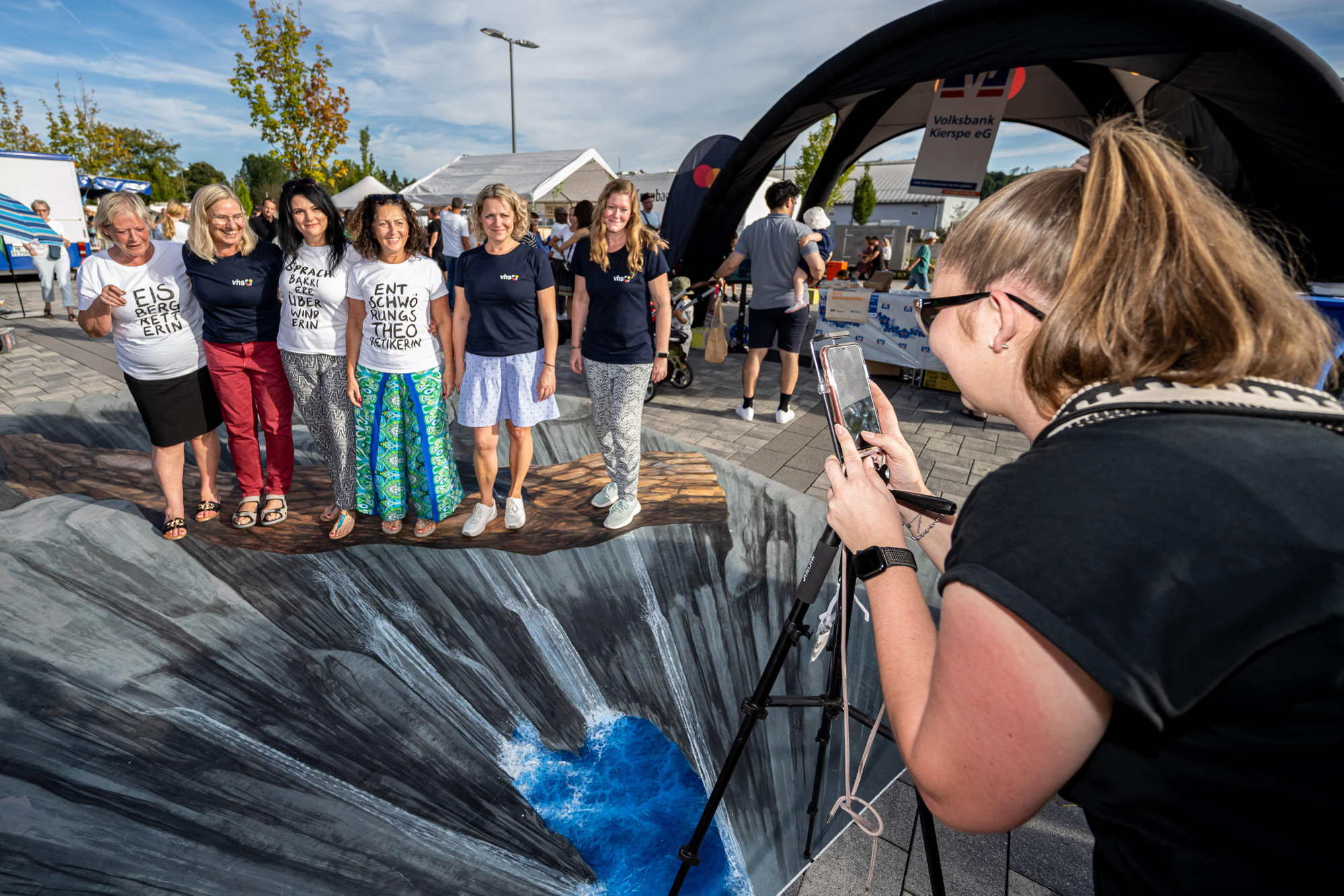 Das Rahmenprogramm war unerschöpflich, auch abseits der Bühne: Sei es eine Spritztour auf einem Segway bei den Kiersper Stadtwerken oder die Fotoaktion des Stadtmarketingvereins, bei der ein Bodengemälde in die Illusion einer Schluchtenwanderung entführte. Traditionell beteiligten sich zahlreiche heimische Institutionen und Vereine am Stadtfest. Auch die kulinarischen Angebote verwöhnten: Burger mal nicht als Junk-Food, sondern als Feinschmecker-Delikatesse waren sehr beliebt, auch auf Fischbrötchten hatten die Besucher Appetit. Getränke flossen in Strömen, und die große Anzahl an Bierwagen wurden auch benötigt.