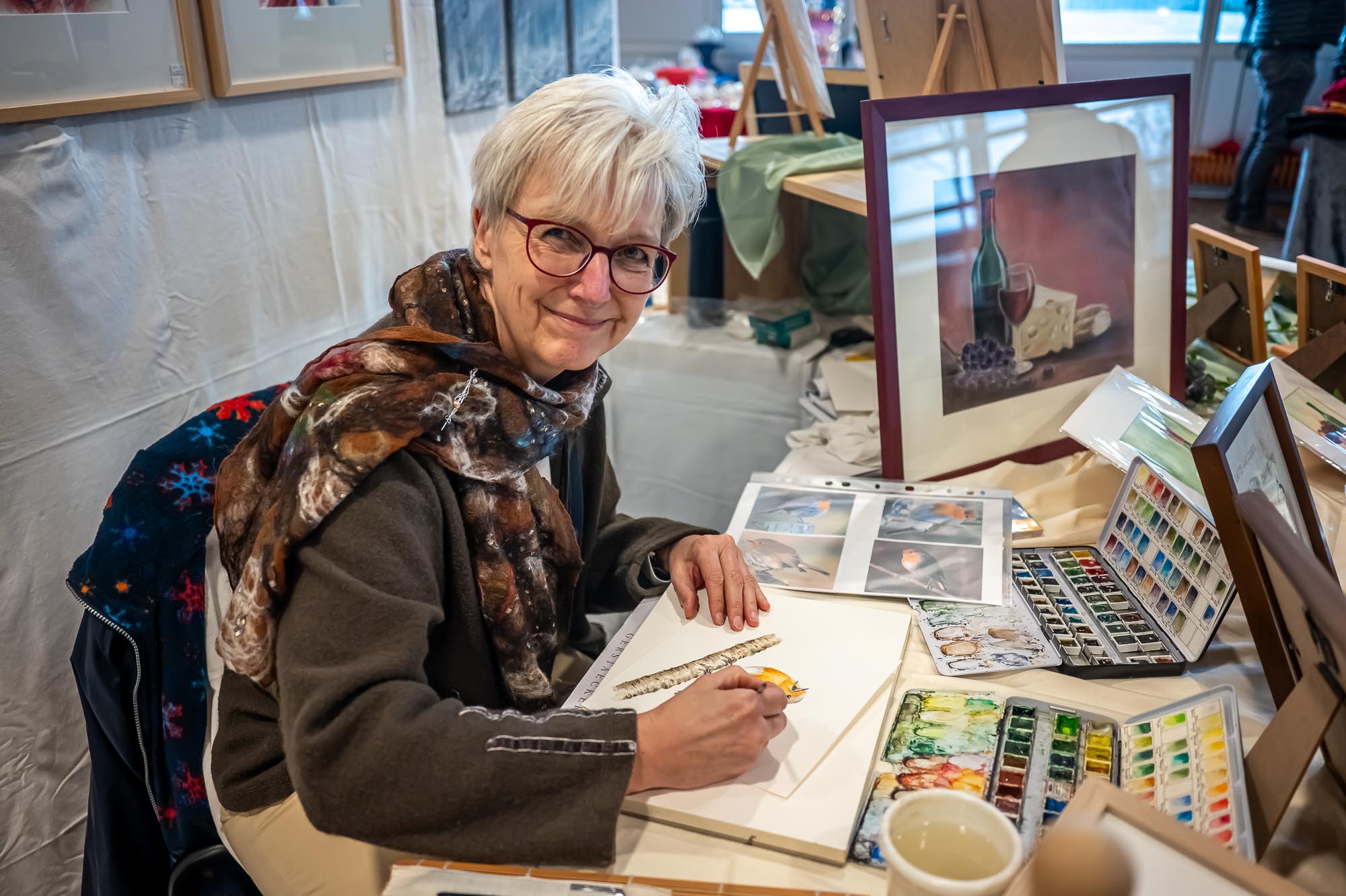 Auch bei den Bildern, die Irene Anweiler malt, geht es nicht ohne viel Liebe im Detail. Trotzdem können sich die Künstler von ihren Werken trennen, zumal es schon eine Wertschätzung ist, wenn Menschen Geld dafür bezahlen. Und „billig“ waren die Exponate ja nicht, bezahlbar jedoch schon.