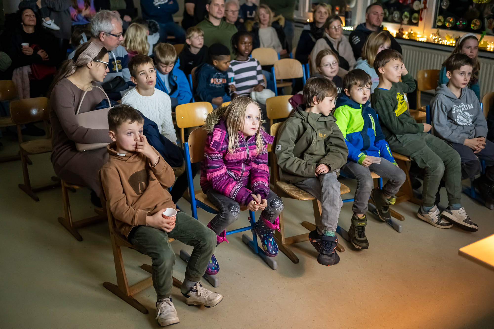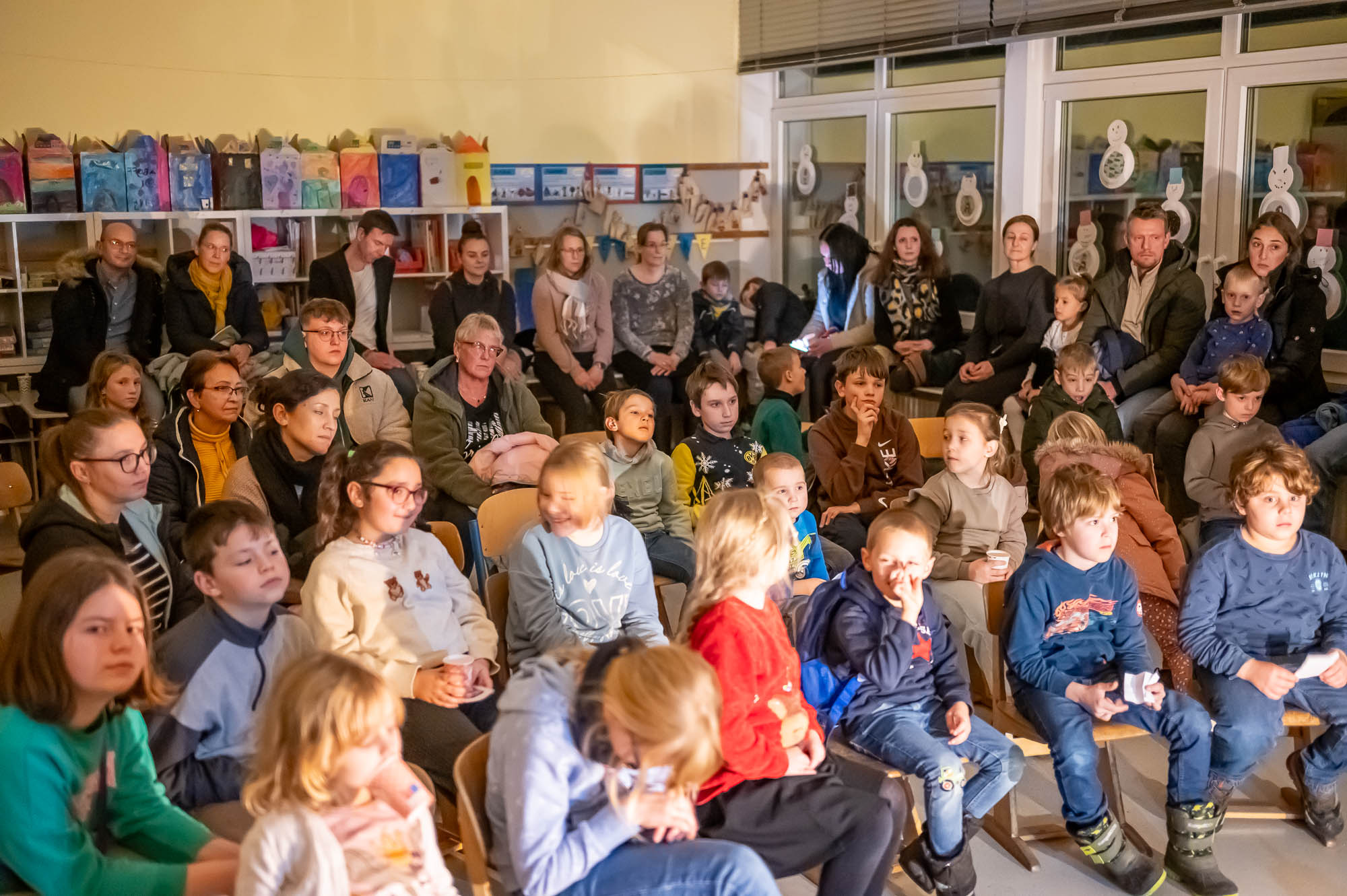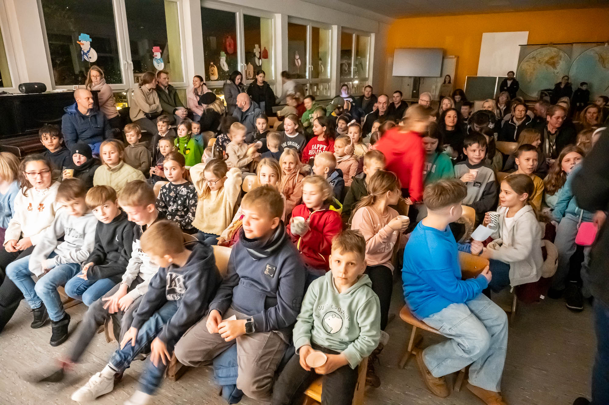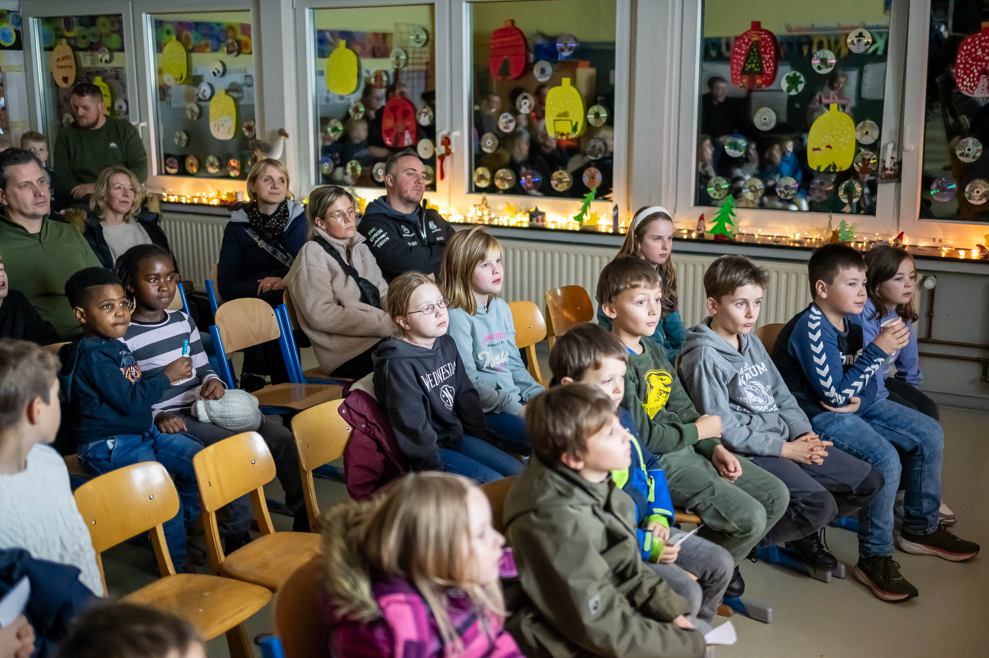 Die die kleinen und großen Besucher ergab sich aber eine schwierige Entscheidung. Nicht die zwischen Kinderpunsch oder Weihnachtskeksen, denn es gab beides. Aber gleich vier Geschichten lockten mit bunten Plakaten in die Kinos, und starteten dort zur selben Zeit. Wie im richtigen Kino musste man eine Karte ergattern. Das führte dazu, dass alle vier Klassenräume ziemlich voll besetzt waren. Die Storys, die Lehrer wie Lesekinder ihrem gebannt lauschendem Publikum vortrugen, hatten natürlich alle etwas Weihnachtliches: “Pettersson kriegt Weihnachtsbesuch”, Spekulatius”, “Pippi feiert Weihnachten” und “Als die Knibbelelfen streikten” passten wunderbar in die Adventszeit, und die Klassenzimmer (Verzeihung: LESEKINOS) waren weihnachtlich geschmückt. Für alle, die sich nur schwer für eine Vorstellung entscheiden konnten, bleibt ein Trost: Alle waren toll. Und wer nicht genug bekam, kommt einfach nächstes Jahr wieder, dann ist allerdings wieder die Schanhollenschule als Gastgeber an der Reihe.
