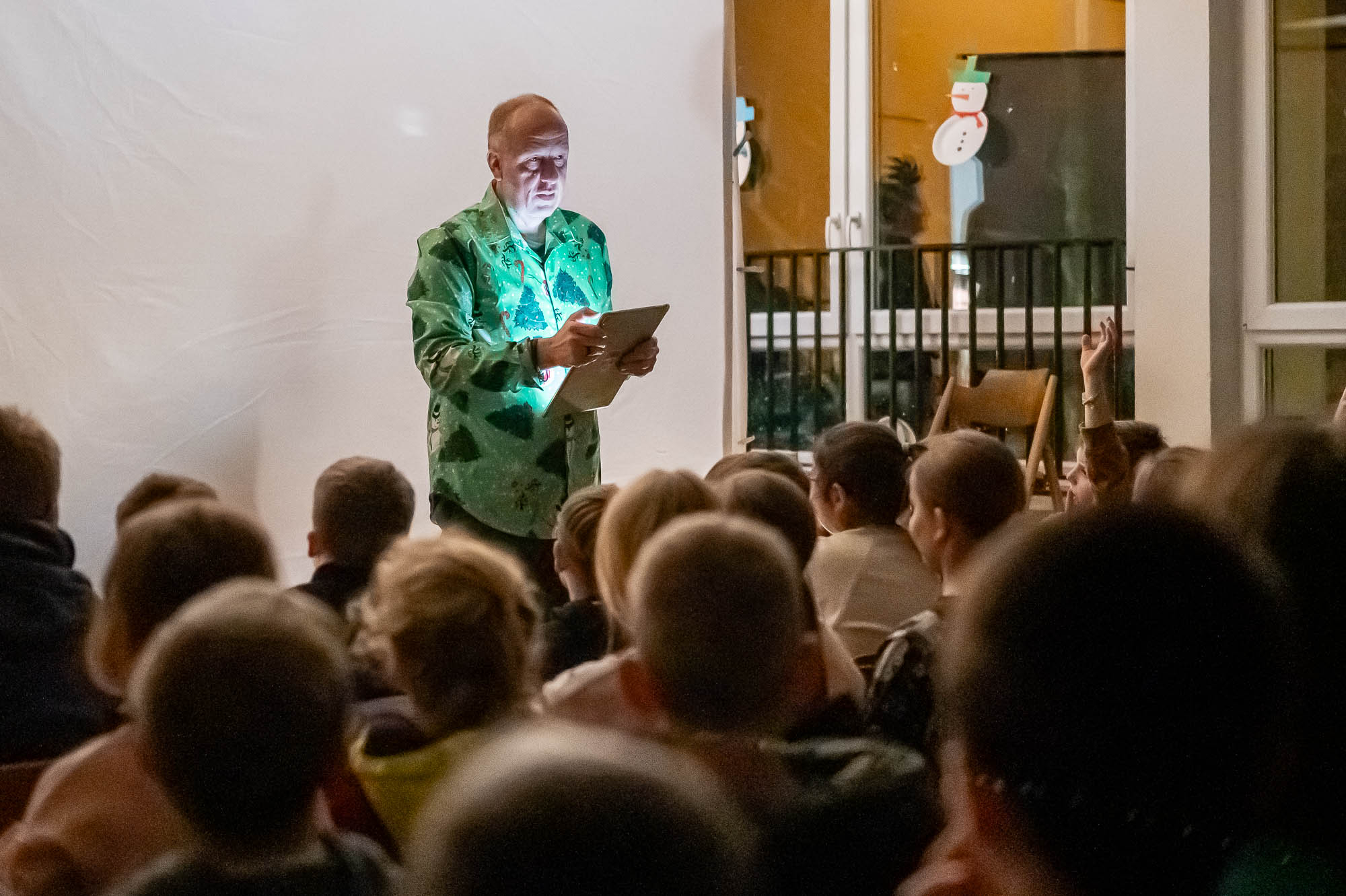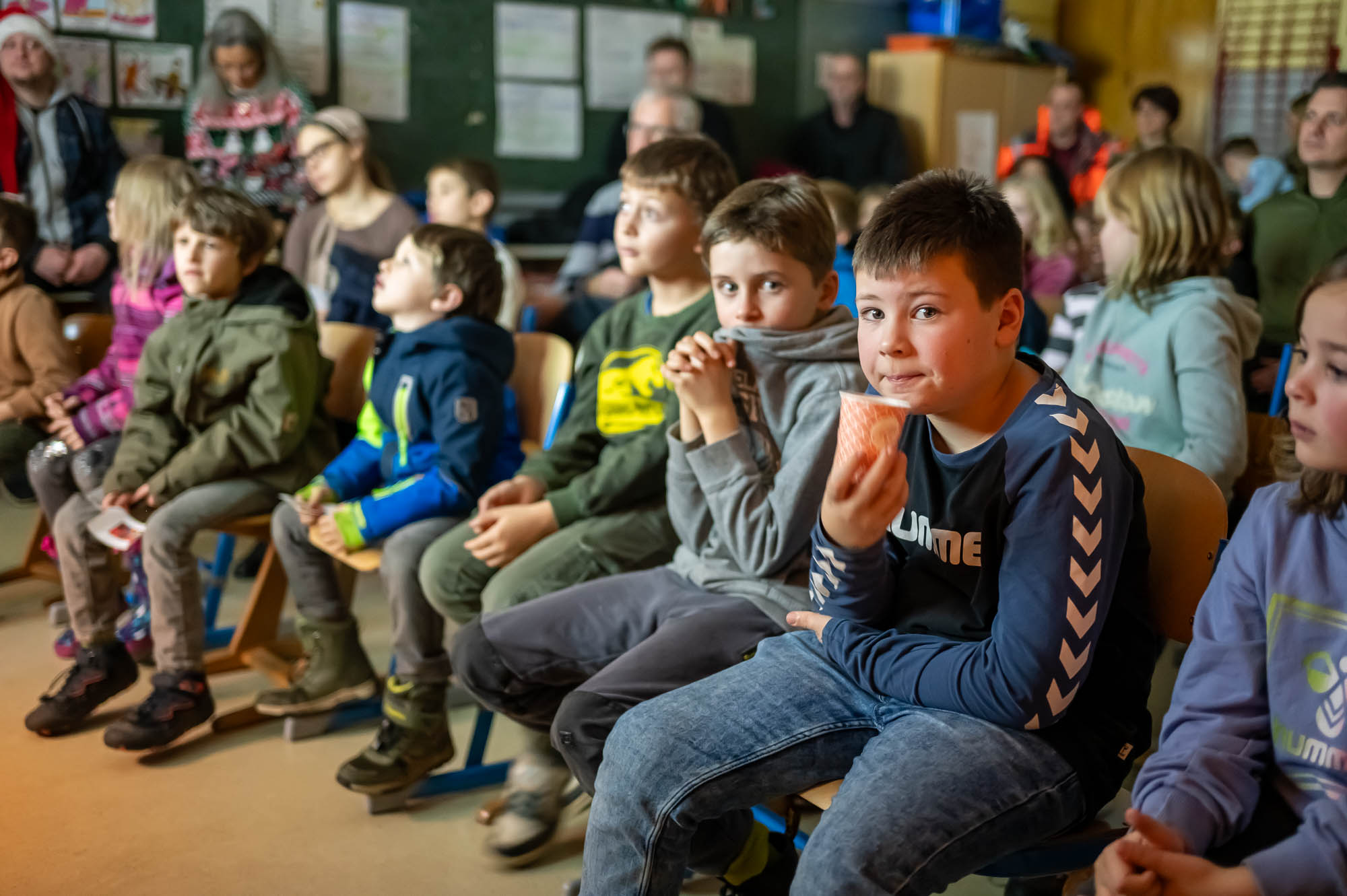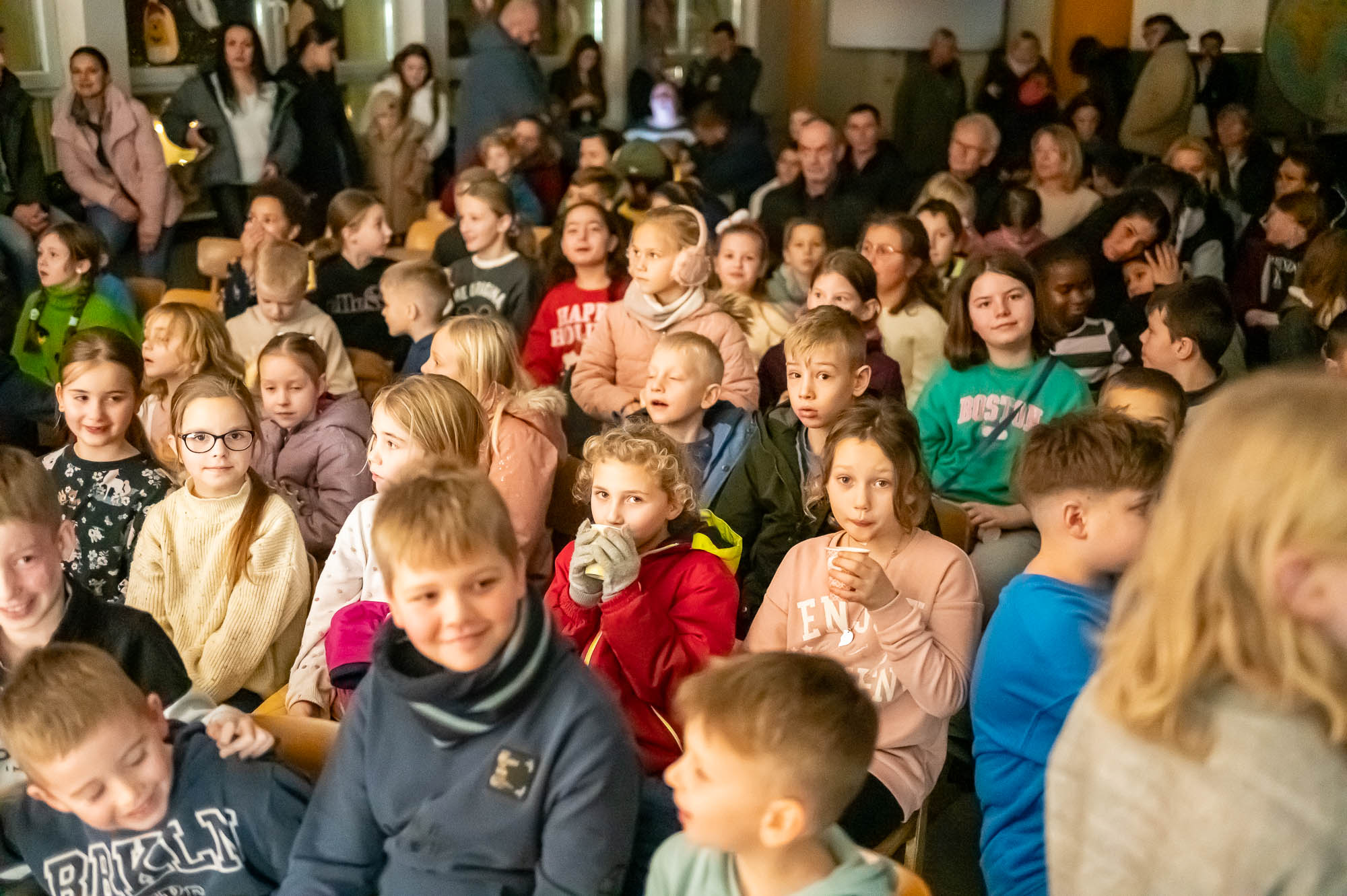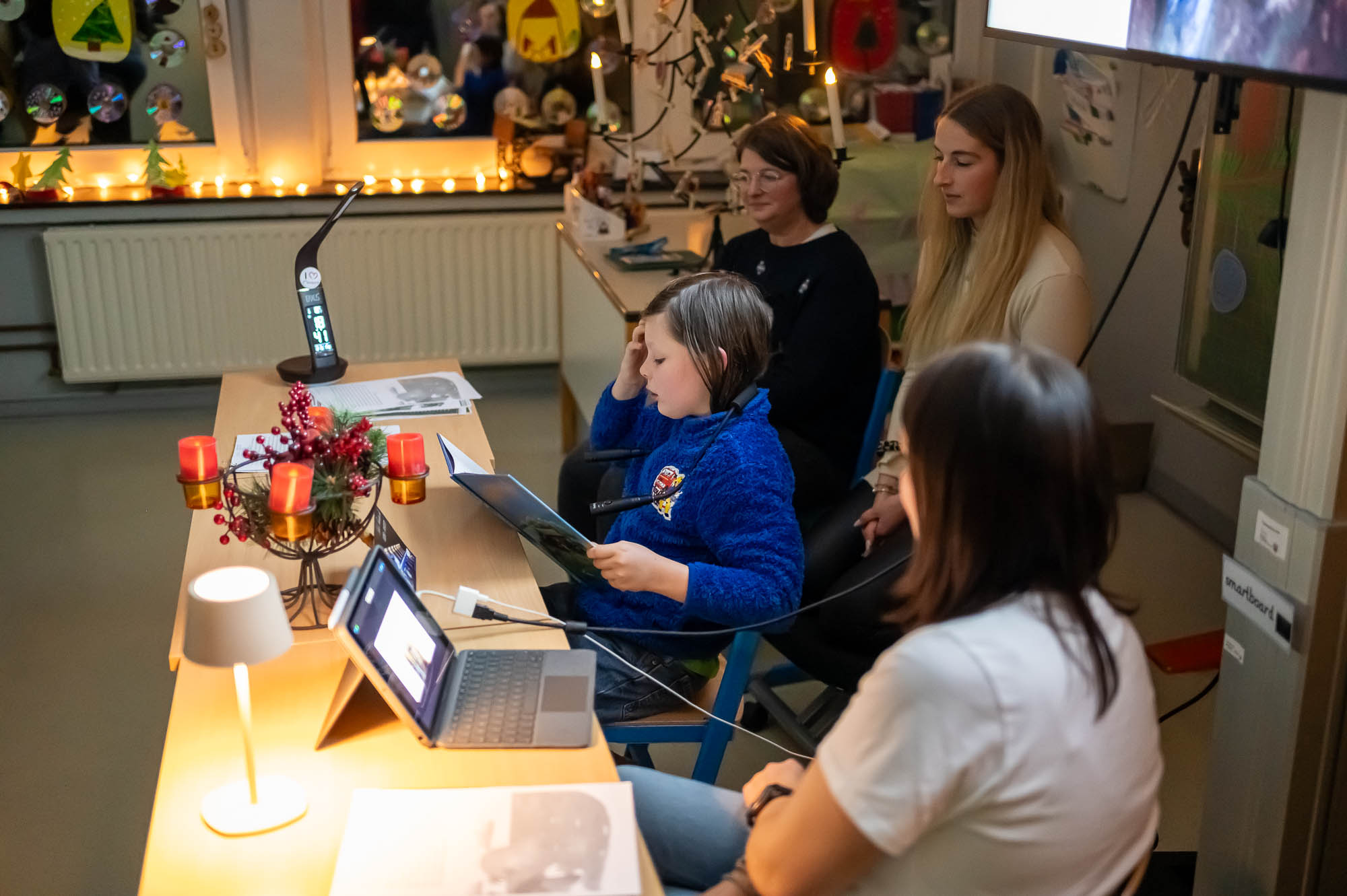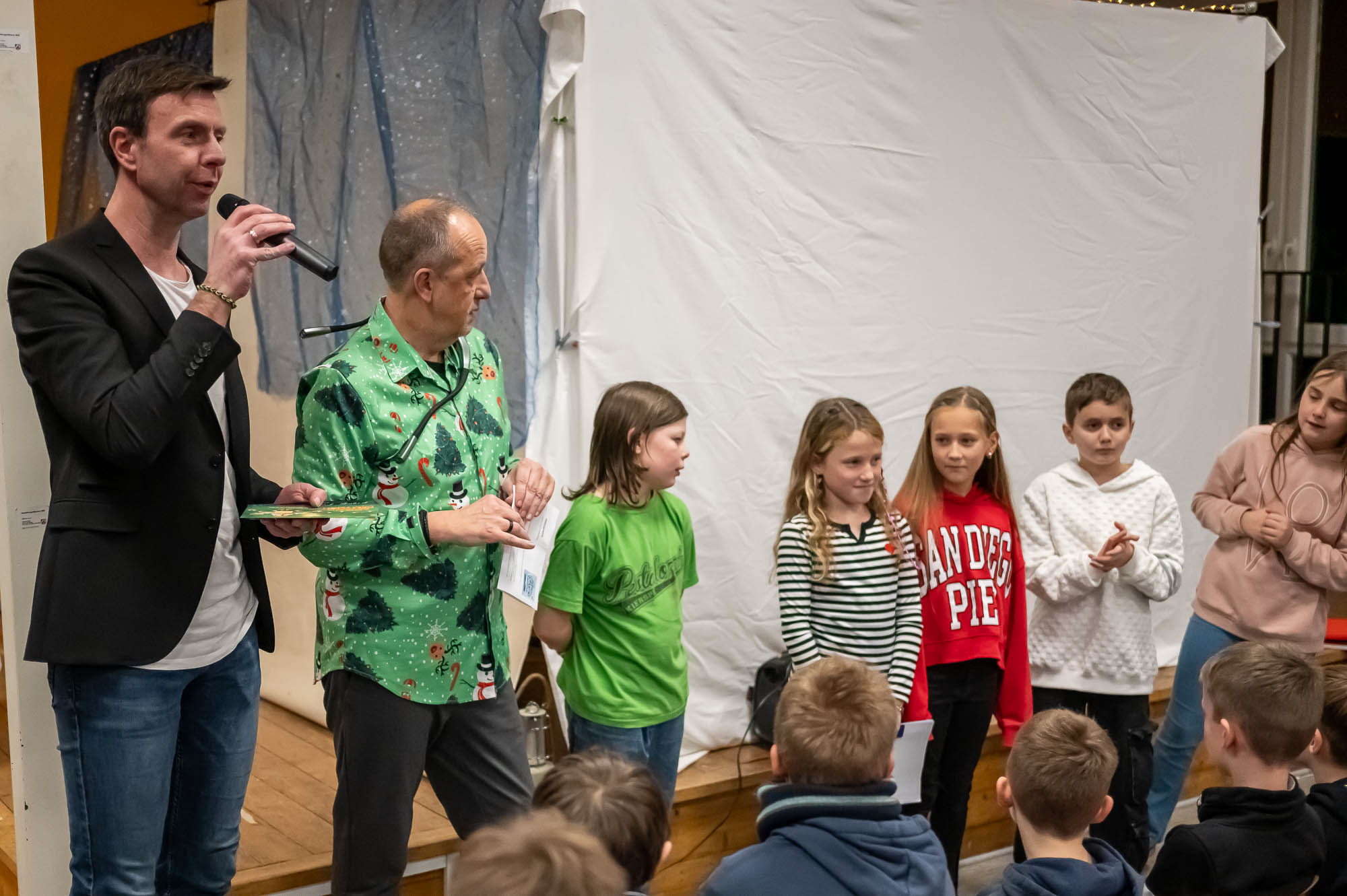 Bevor es dann die eigentlichen Lesekinos ging, für die vier Klassenräume der 3. und 4. Jahrgänge gemütlich geschmückt waren, gab es noch eine Preisverleihung. Schulleiter Block und sein Stellvertreter Arne Freiberg zeichneten die jeweiligen Klassensieger im Lesen der Pestalozzi- sowie der Schanhollenschule aus. Für diese vier Kinder gab es zur Belohnung echte Kinokarten: Haily Getto (4a), Sebastian Schröder (4b), Mayla Ikert (4c) und Paul Majdanuk (4d). Auf diese Schülerinnen und Schüler wartete gleich die nächste Herausforderung: Die Geschichten in den Lesekinos werden in erster Linie von Lehrerinnen und Lehrern vorgelesen, dabei aber von den Lesekindern untergestützt.