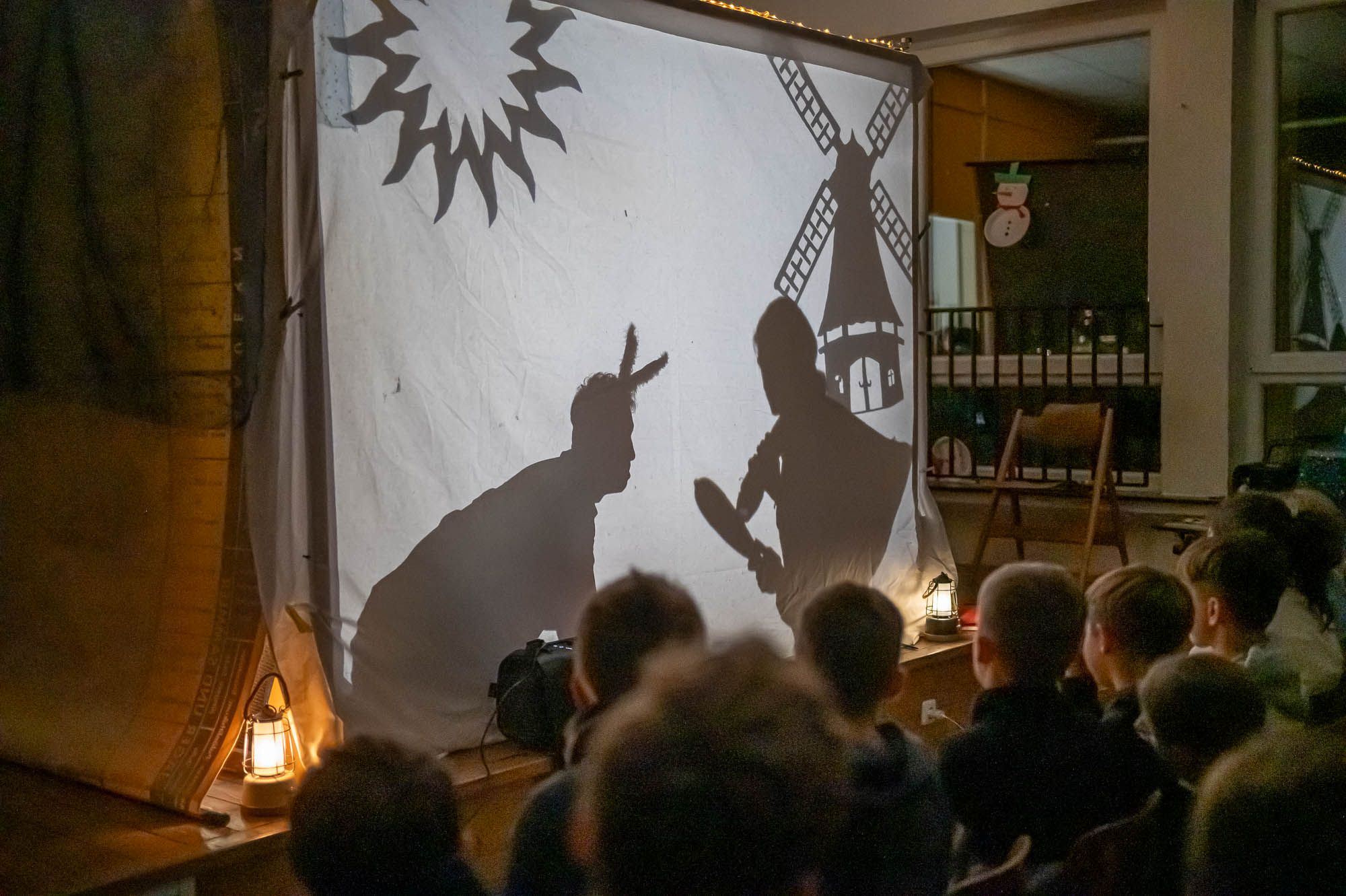 KIERSPE (mk) Der Andrang der Kinder und ihrer Familien war wie gewohnt groß beim Lesekino, dass in diesem Jahr von der Pestalozzi-Grundschule ausgerichtet wurde. Das traf sich gut, denn hier hatte Schulleiter Thomas Block ja bei der Projektwoche im vergangenen April ein Hörspiel aufgenommen. Zehn Kinder seiner Gruppe hatten die bekannten Stadtmusikanten “eingekierspert”, sprich: Die Orte der Handlung in der Rauk-Stadt verortet. Das von den Grundschülern liebevoll aufgenommene Hörspiel wäre viel zu schade, um in der Versenkung zu verschwinden. Jedenfalls kam die Idee auf, eine erneute Vorführung des Hörspiels mit dem Schattentheater zu kombinieren, dass ein fester Bestandteil des Lesekinos ist. So stellten die Lehrer bildlich dar, was parallel vom Band lief.